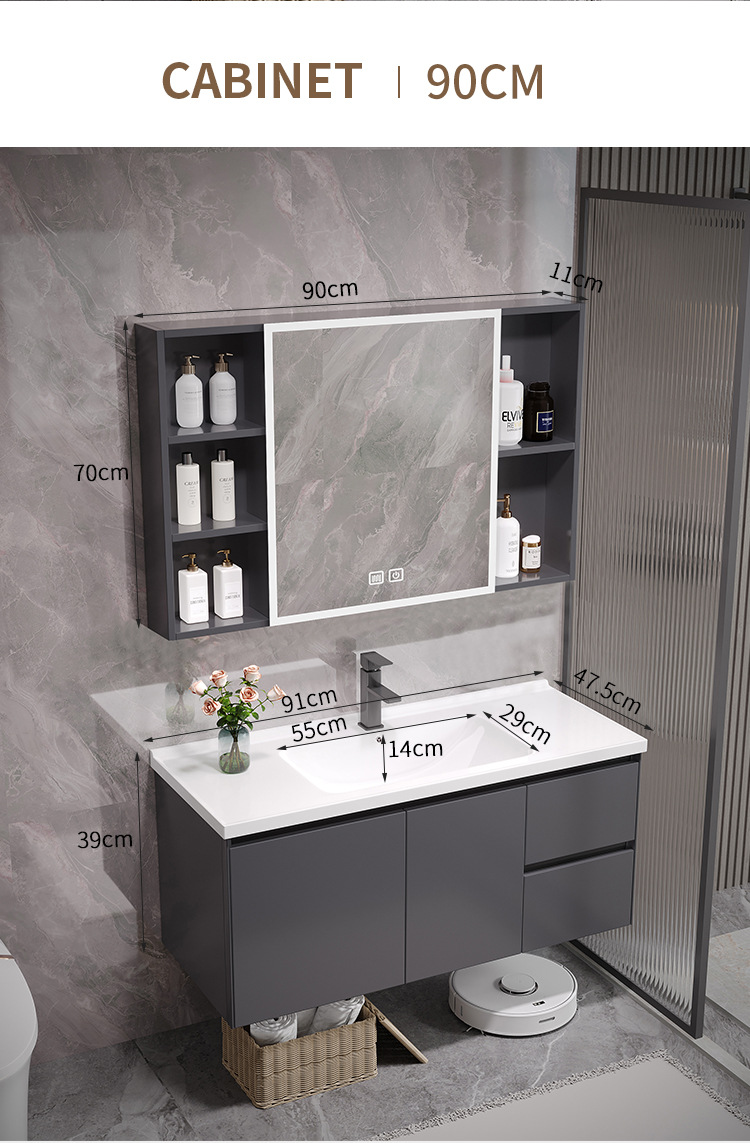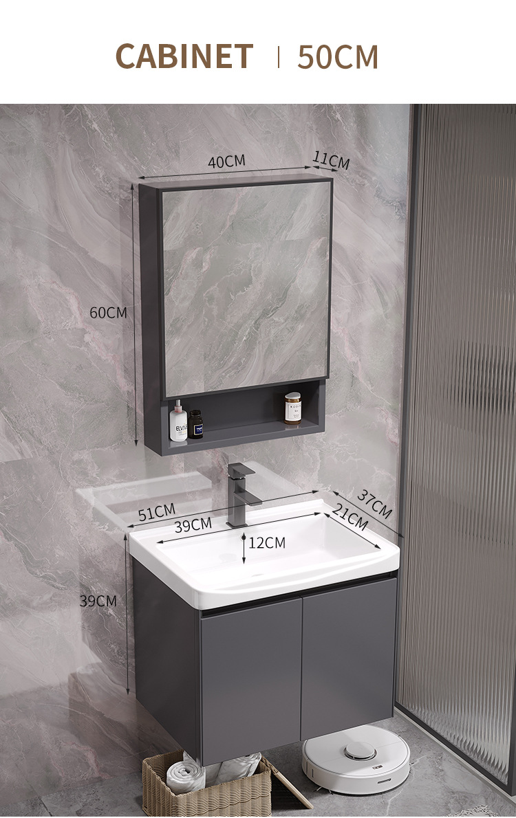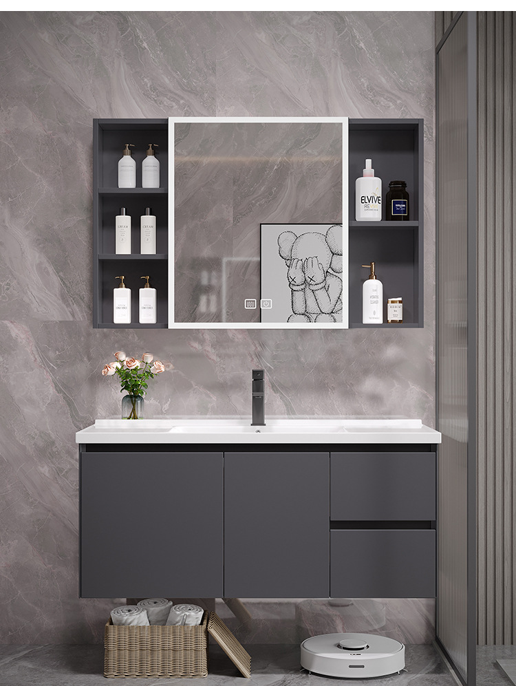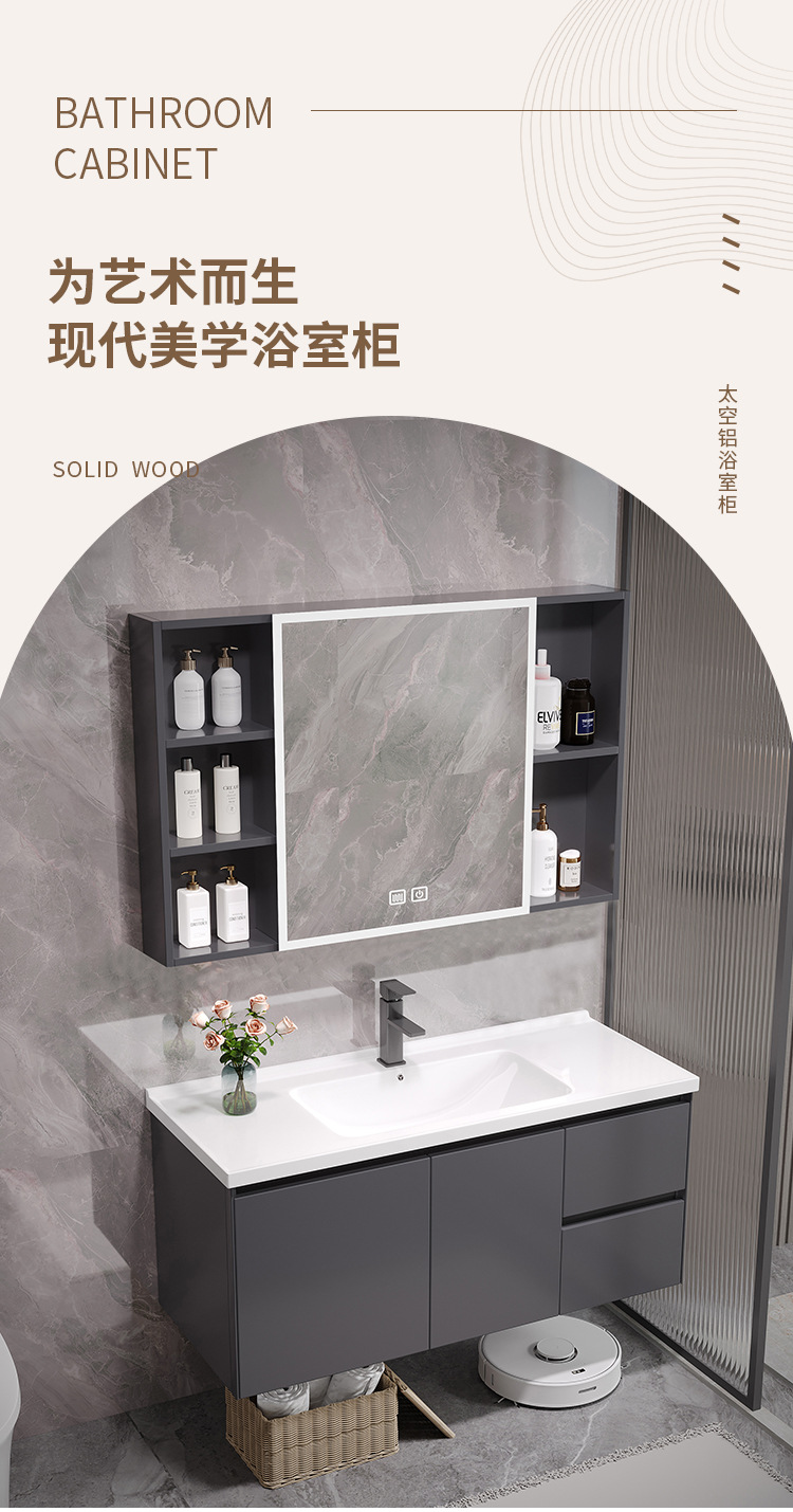 Espacio de aluminio baño gabinete combinación de cerámica integrado montado en la pared lavabo baño lavabo lavado Mesa pequeño apartamento