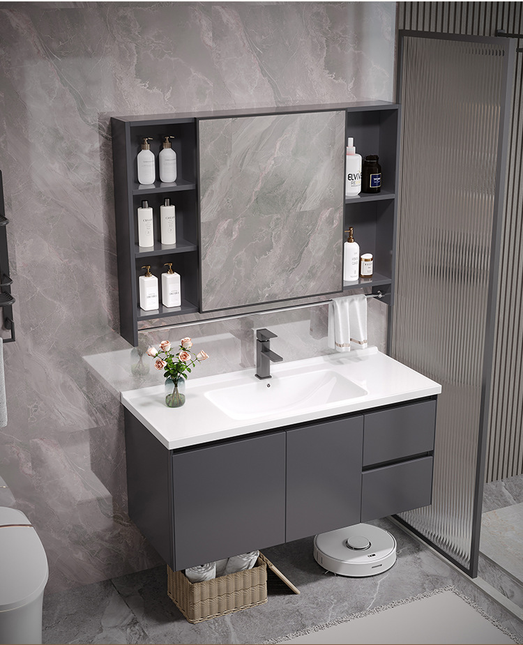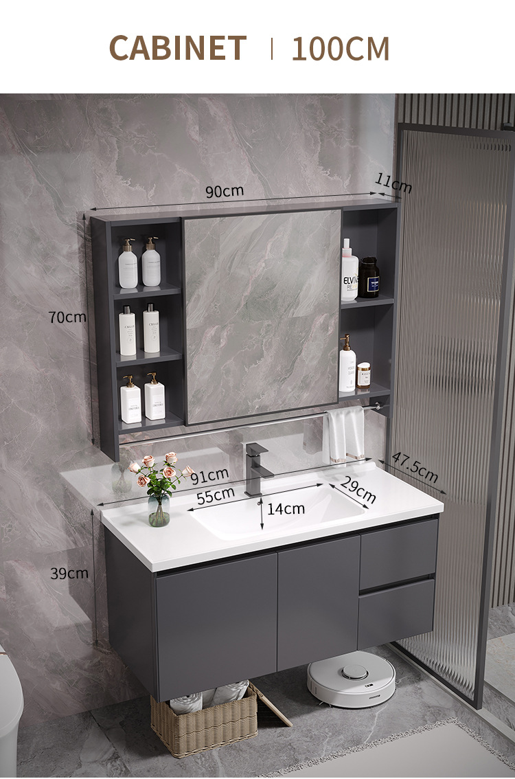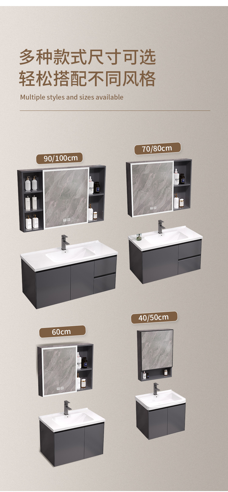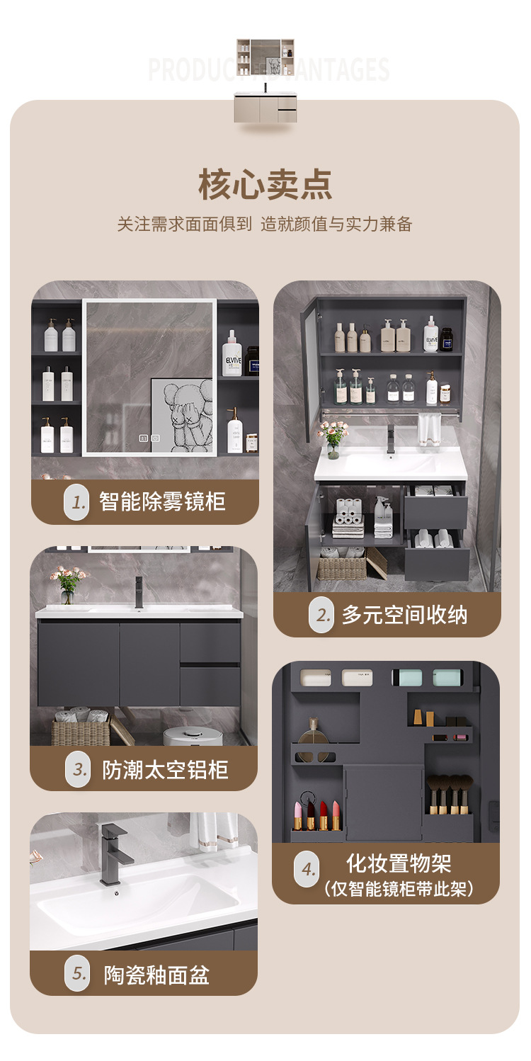Espacio de aluminio baño gabinete combinación de cerámica integrado montado en la pared lavabo baño lavabo lavado Mesa pequeño apartamento