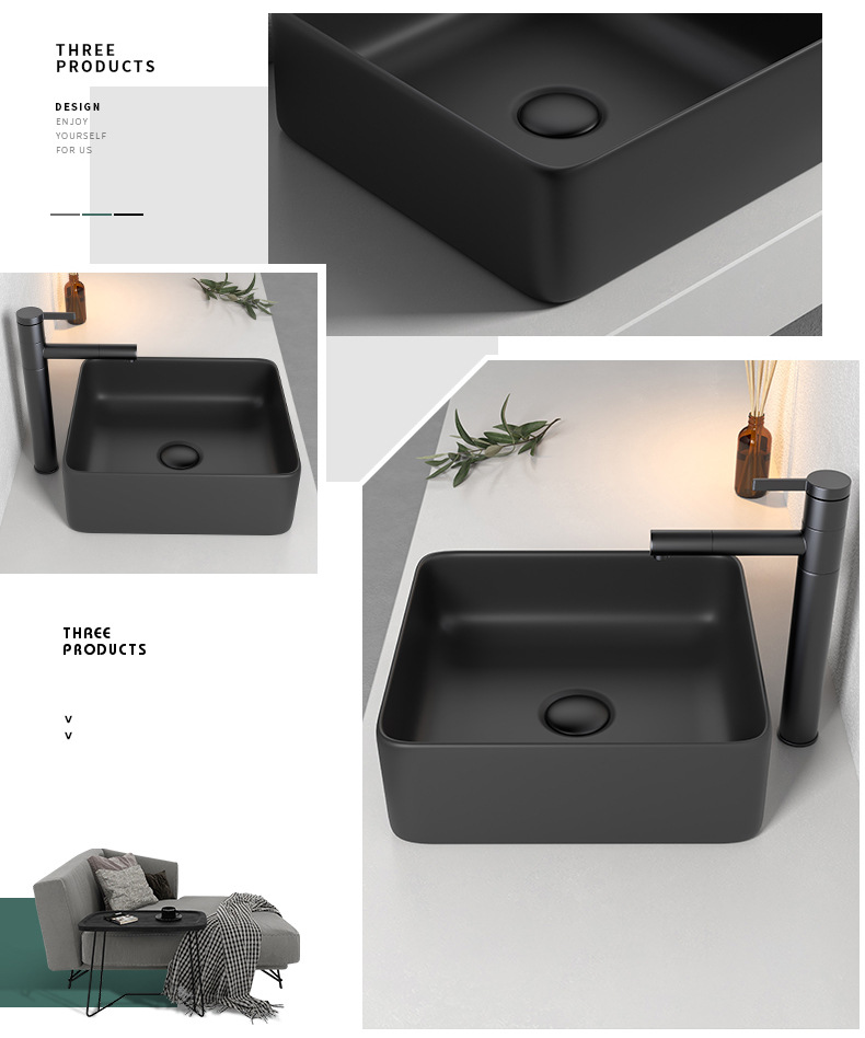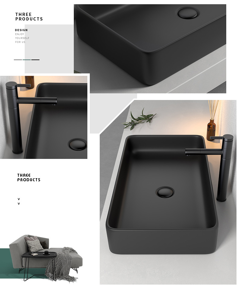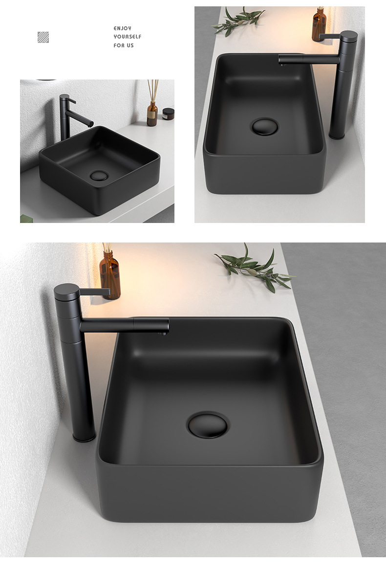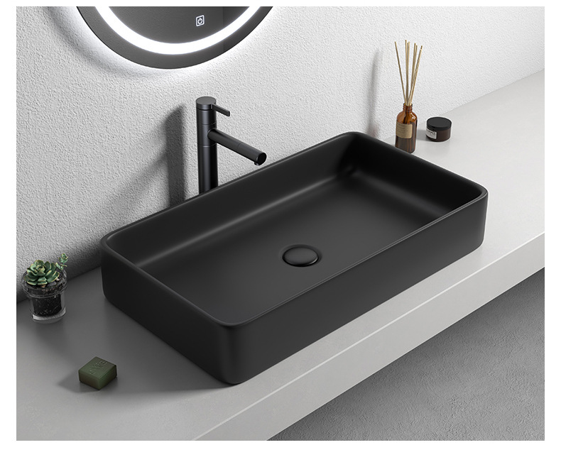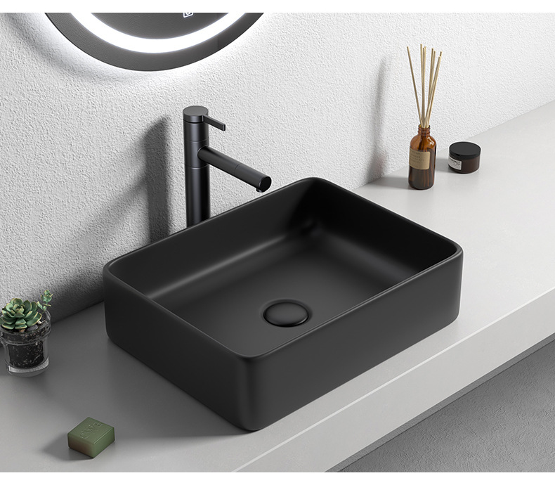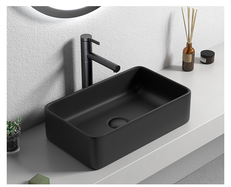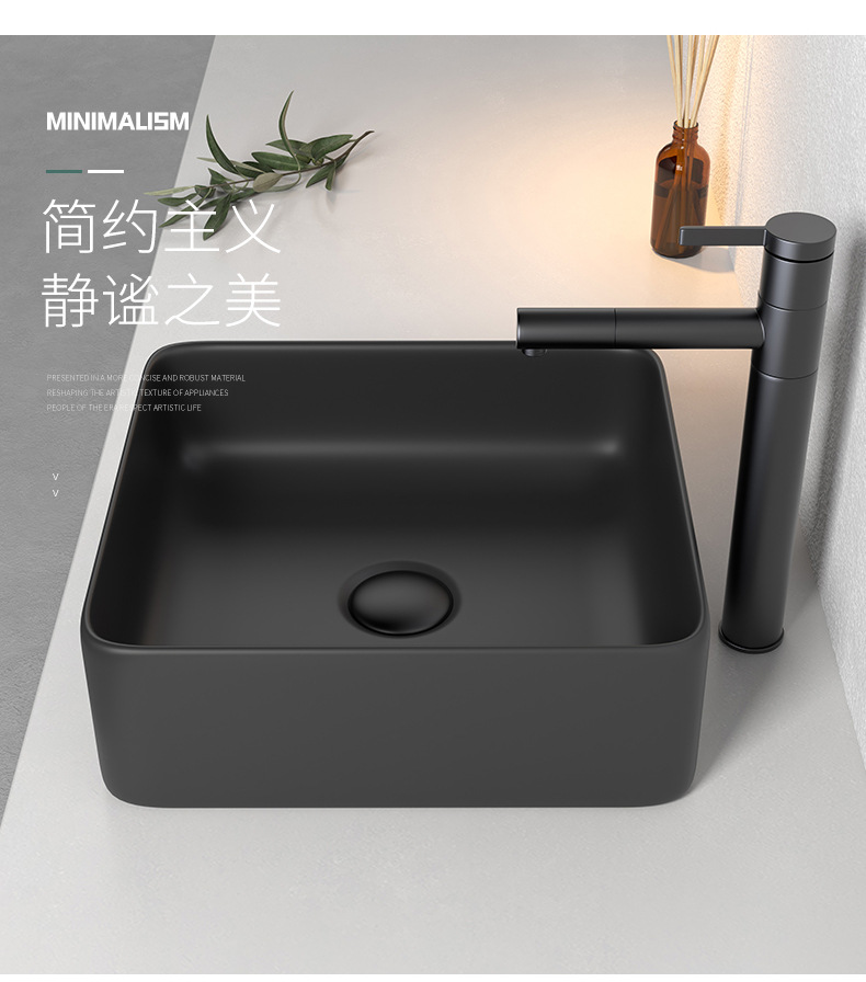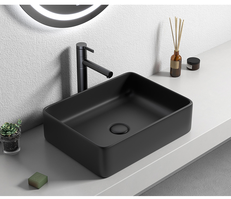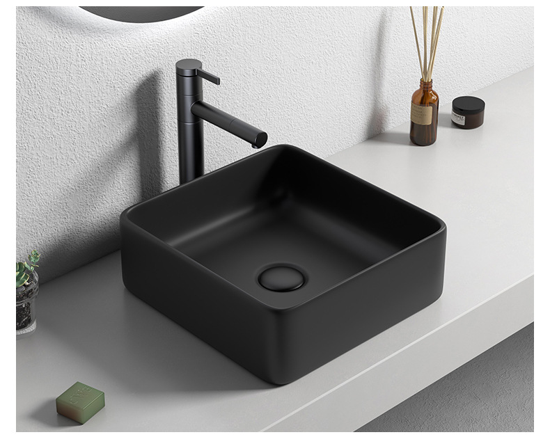 Mesa nórdica cuenca sola cuenca lavabo de cerámica del hogar lavabo cuadrado lavabo baño negro lavabo