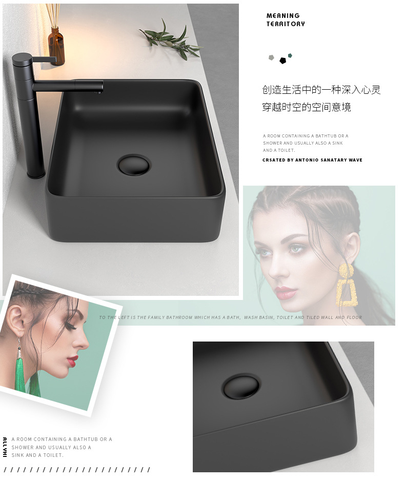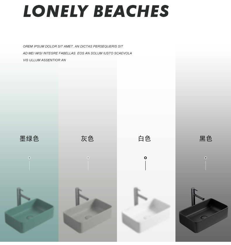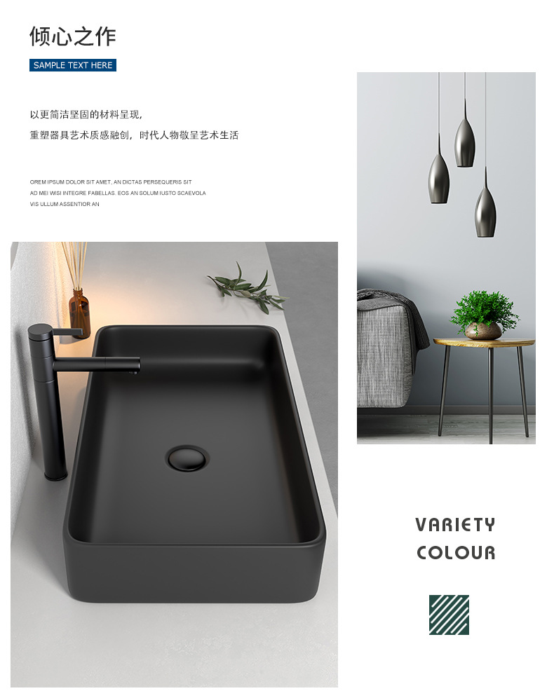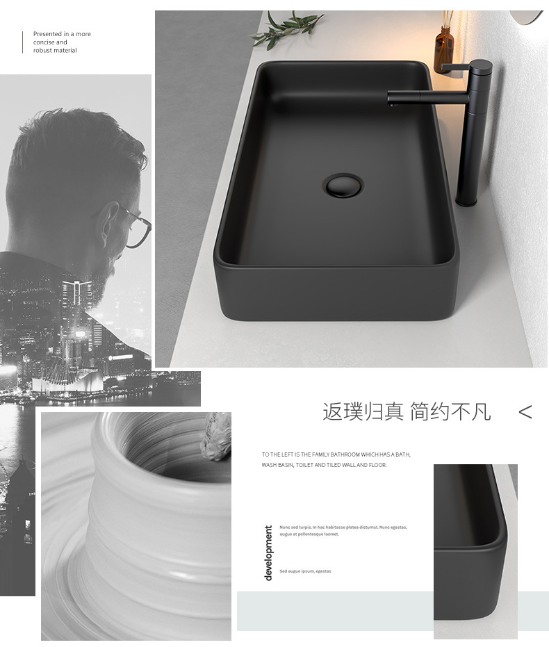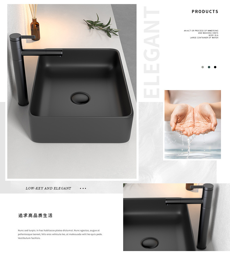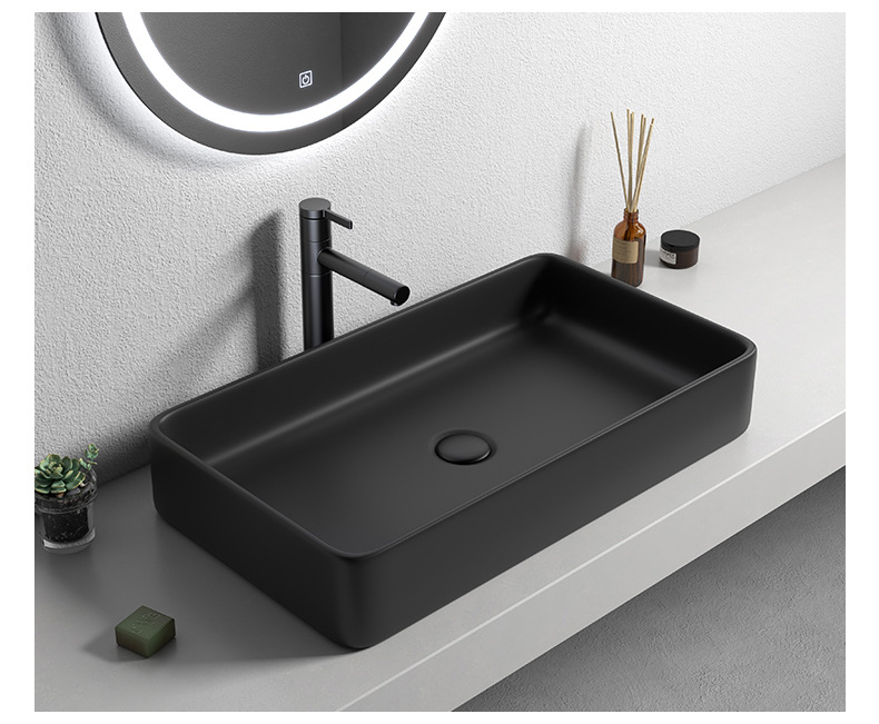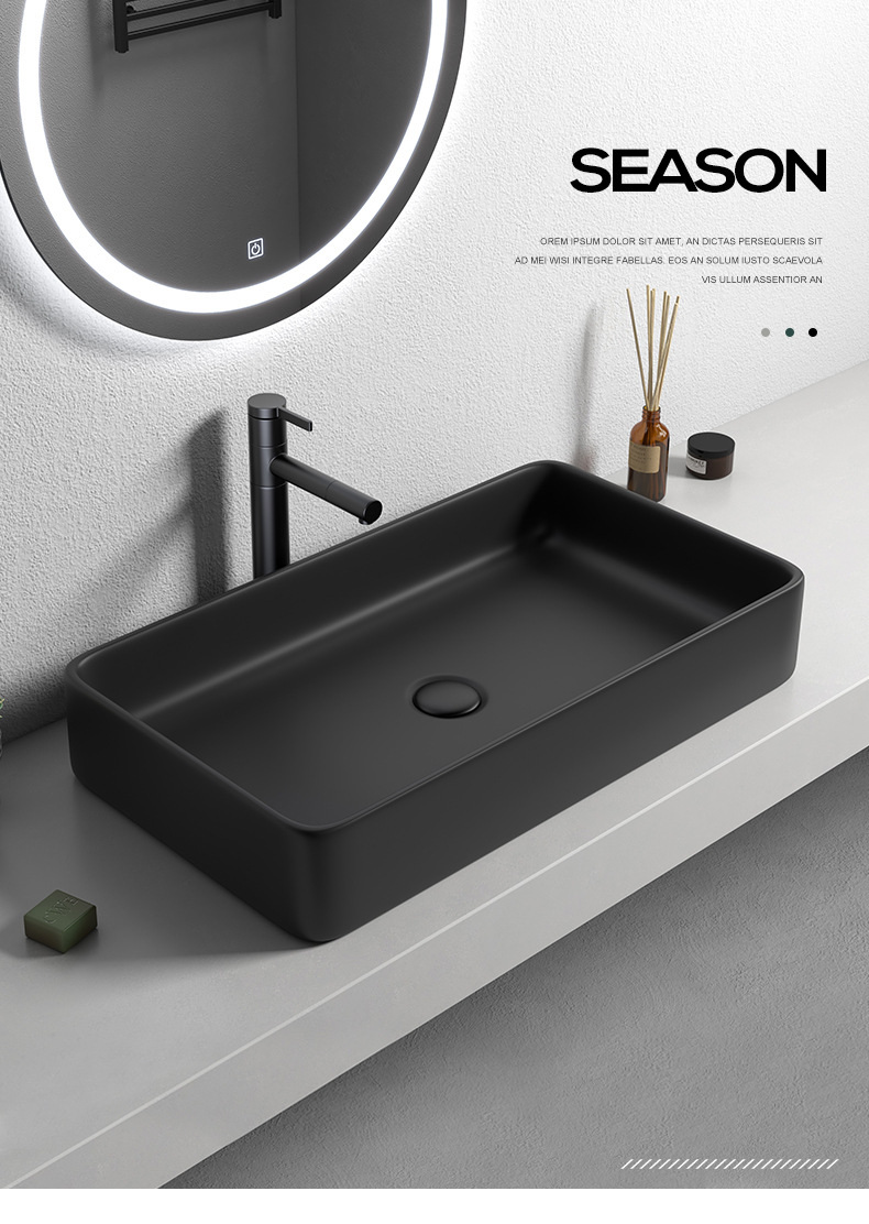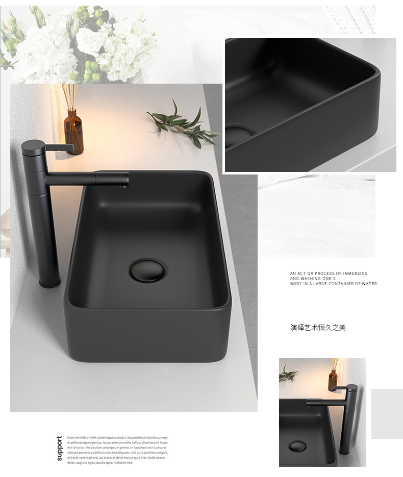 Mesa nórdica cuenca sola cuenca lavabo de cerámica del hogar lavabo cuadrado lavabo baño negro lavabo