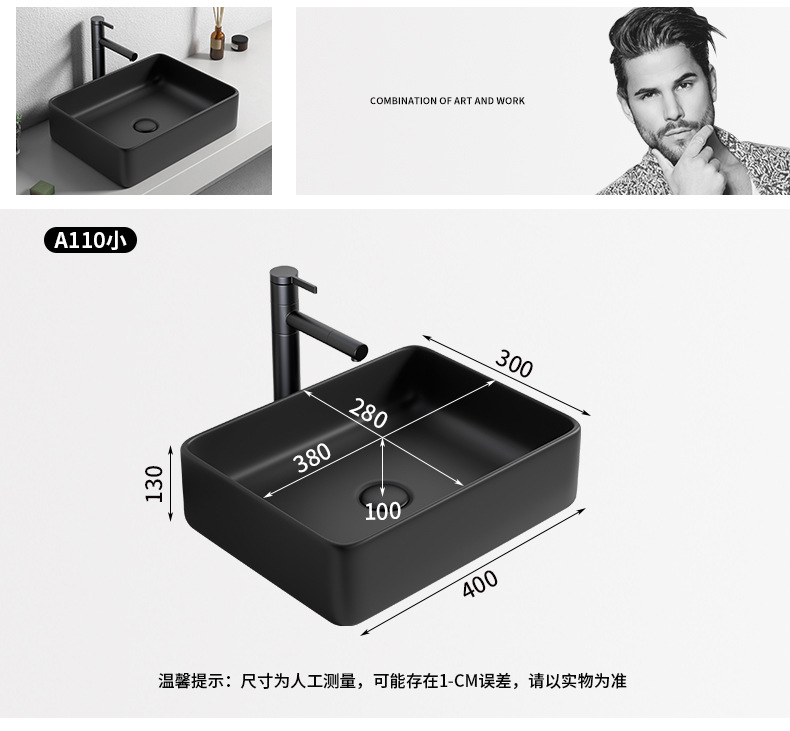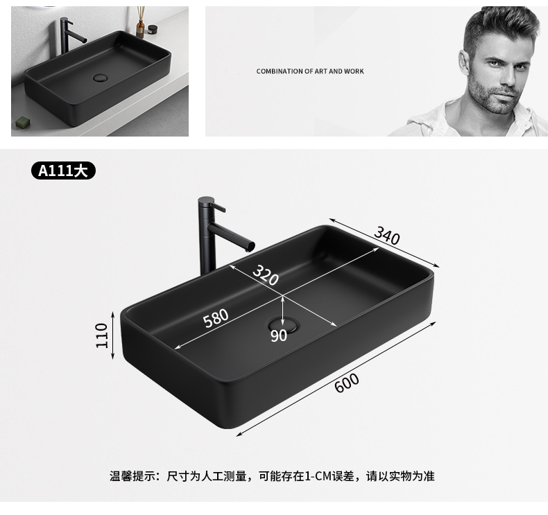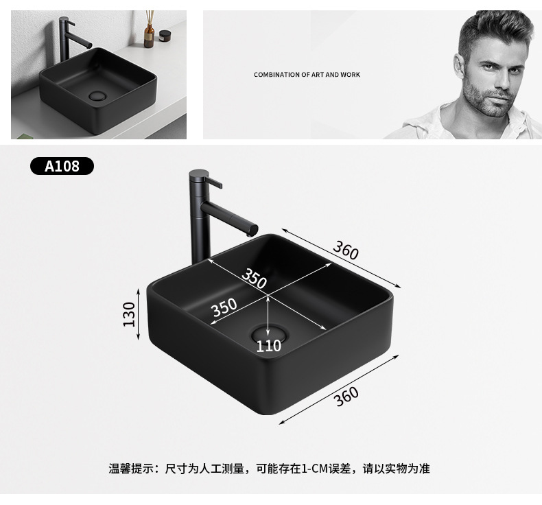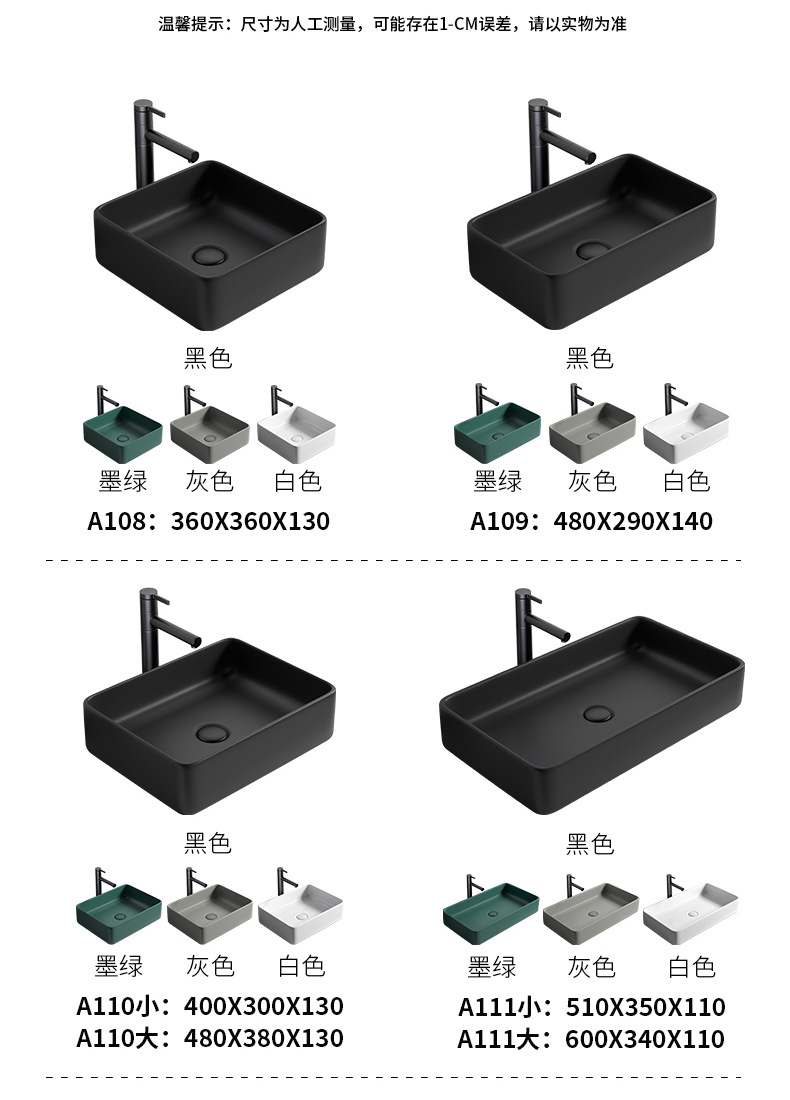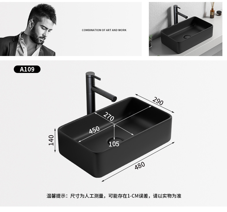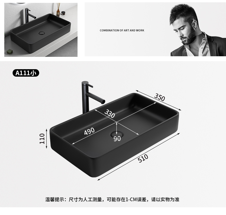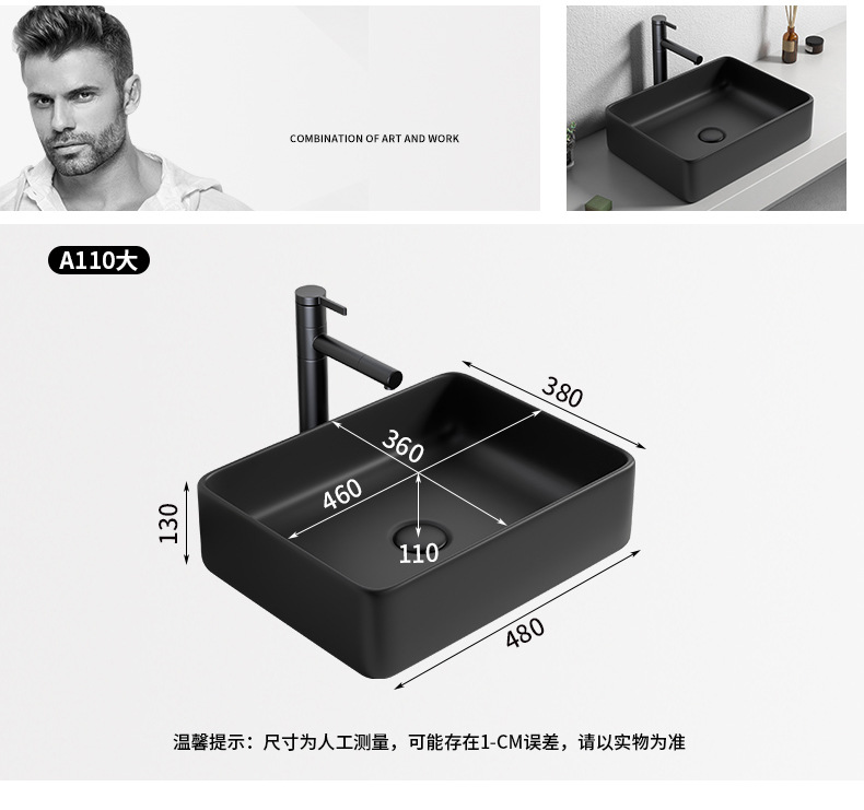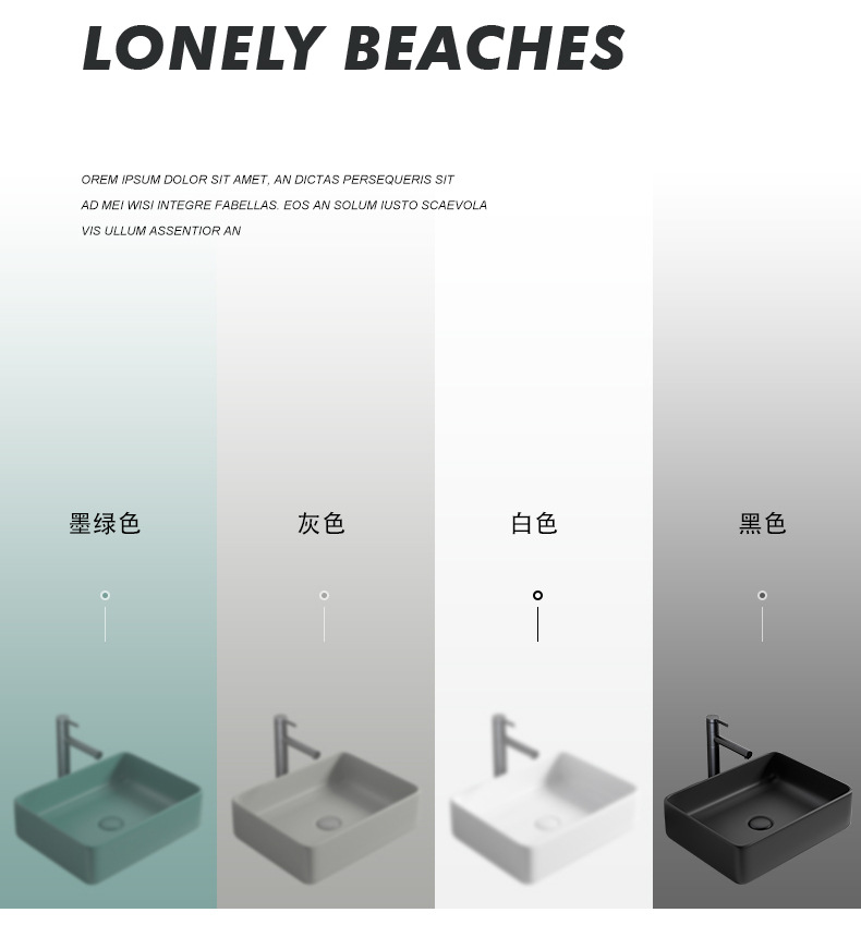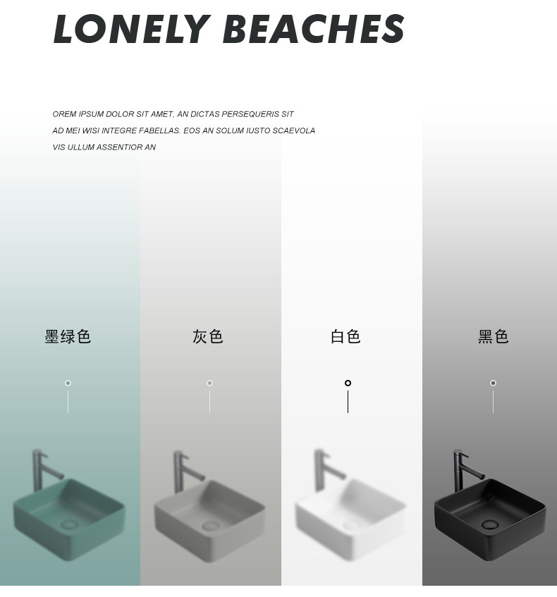 Mesa nórdica cuenca sola cuenca lavabo de cerámica del hogar lavabo cuadrado lavabo baño negro lavabo