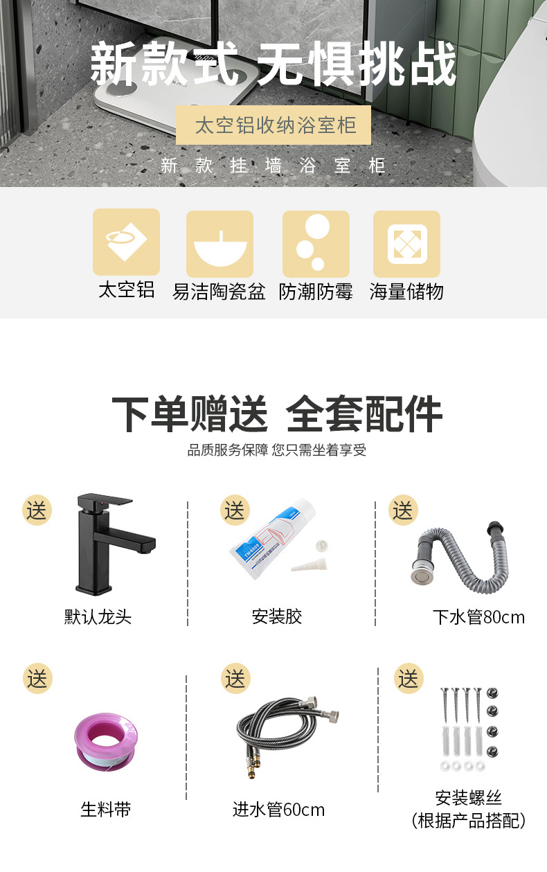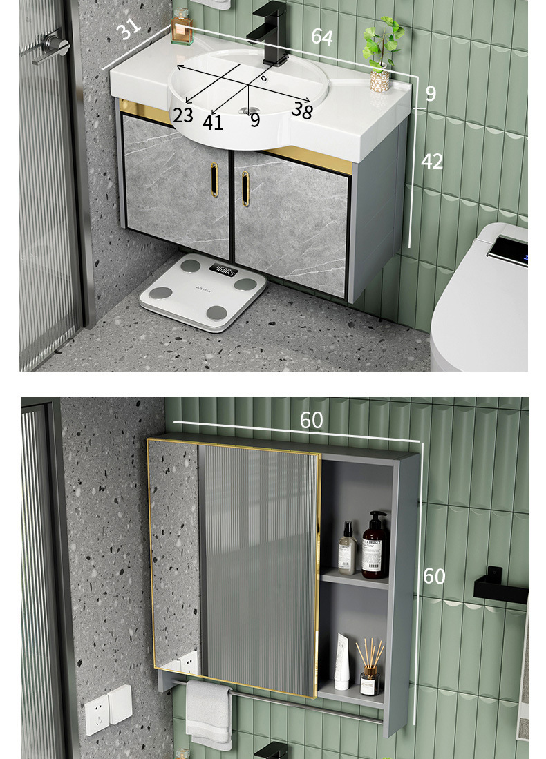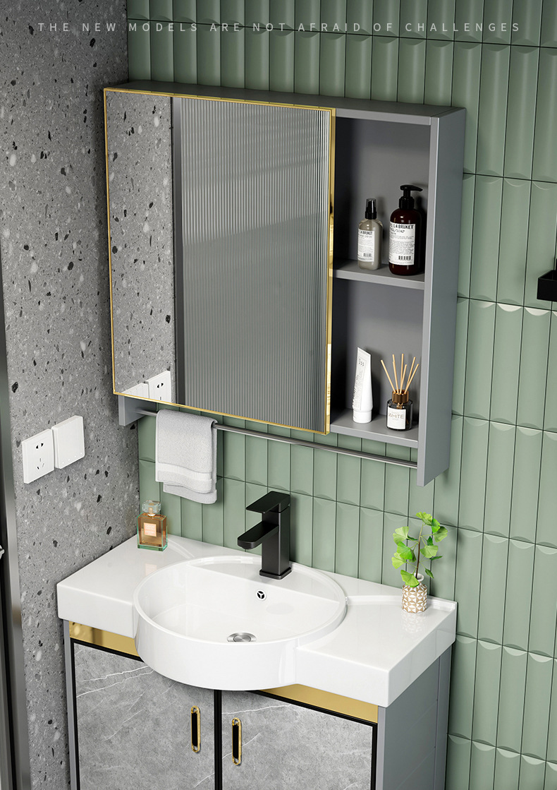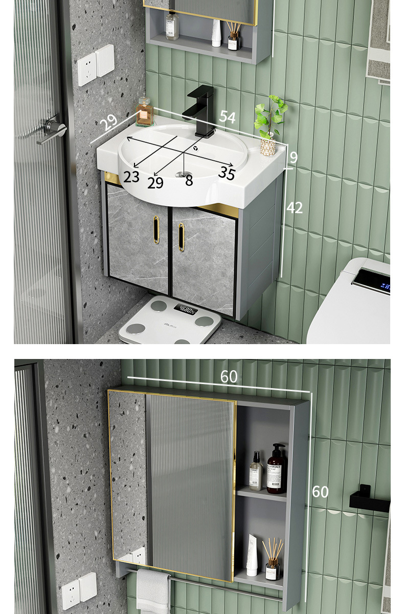 Mueble de baño de aluminio de espacio combinación baño lavabo de pared pequeño apartamento lavabo de cerámica balcón mesa de lavado