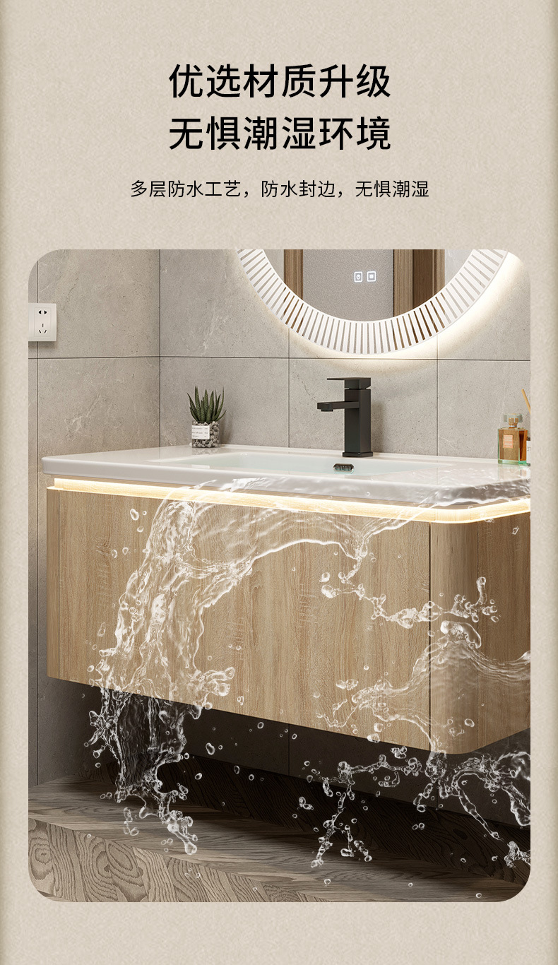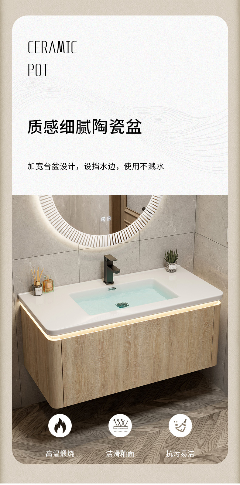 Color de madera cuenca de cerámica integrada esquina redondeada combinación de gabinete de baño lavabo de lavado de manos lavabo de baño piscina