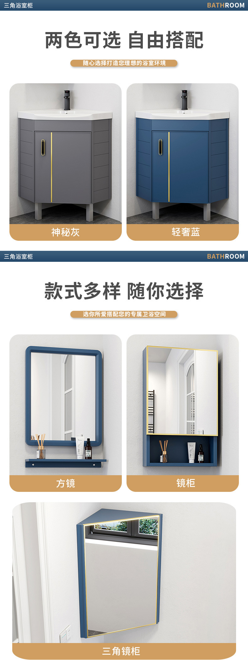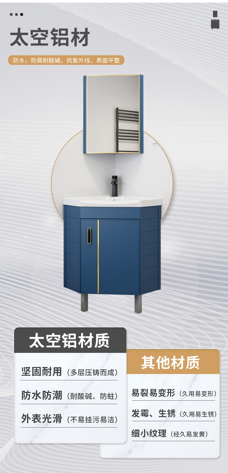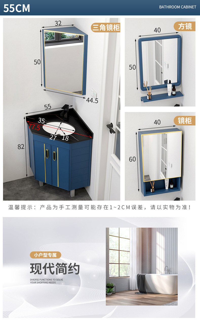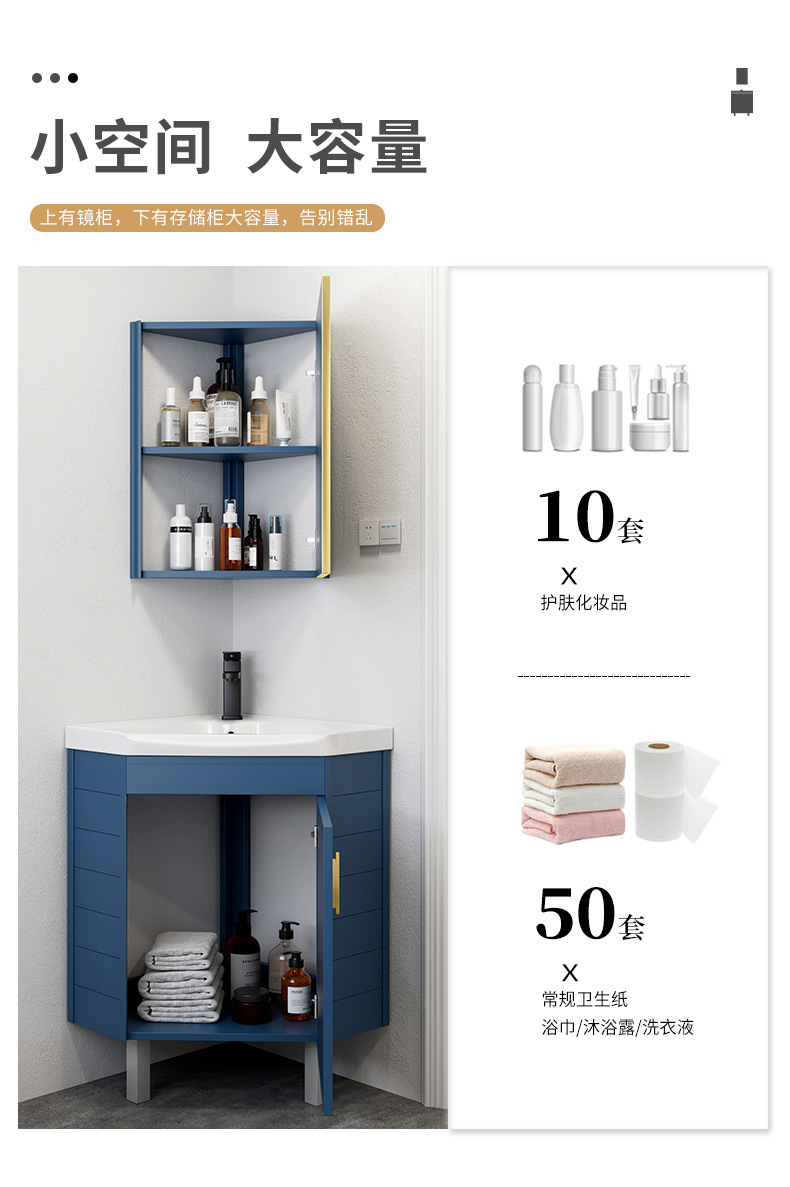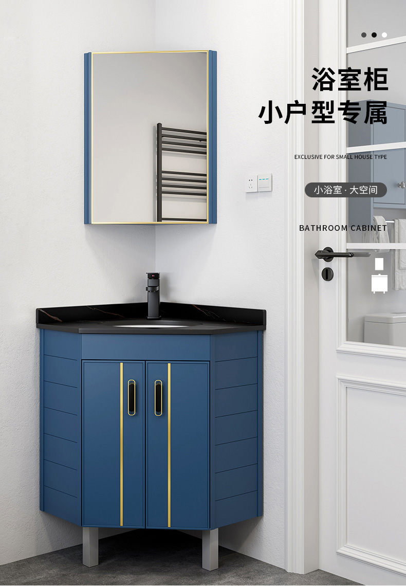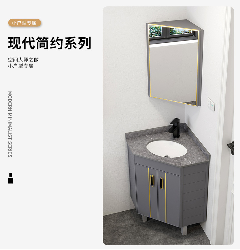 Triángulo de piso de aluminio espacio gabinete de baño combinación baño lavabo esquina lavabo pequeño apartamento mesa de lavado