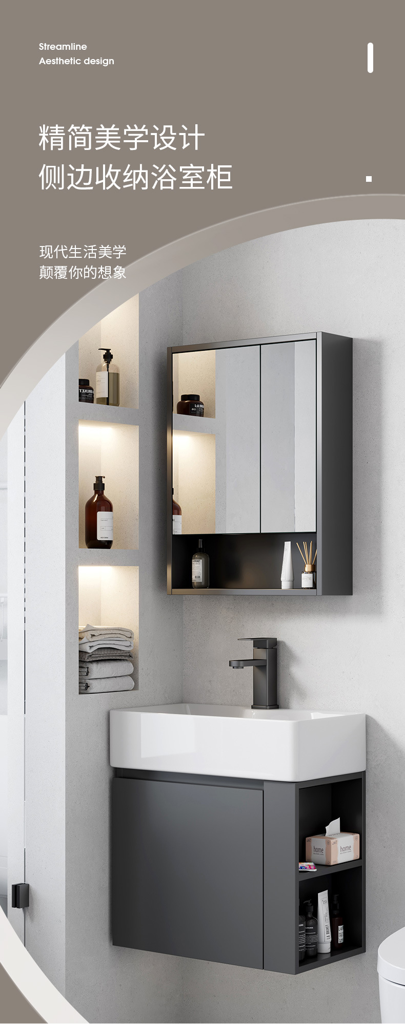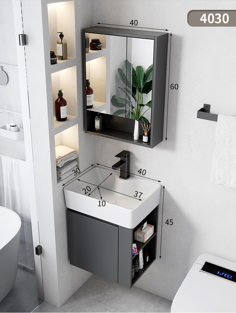 Ultra estrecha longitud 30cm de ancho montado en la pared lavabo gabinete combinación baño pequeño apartamento lavabo de cerámica