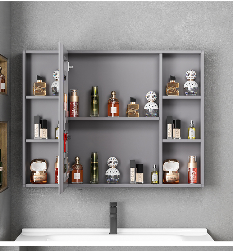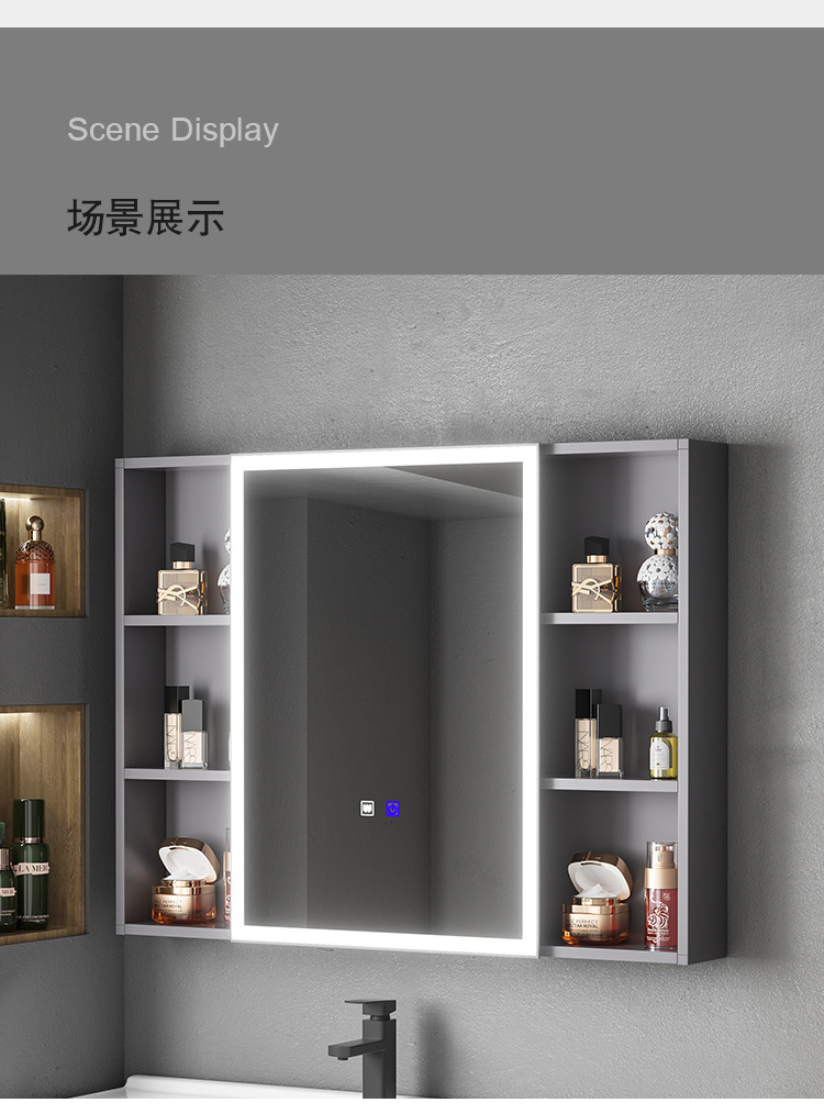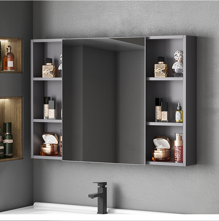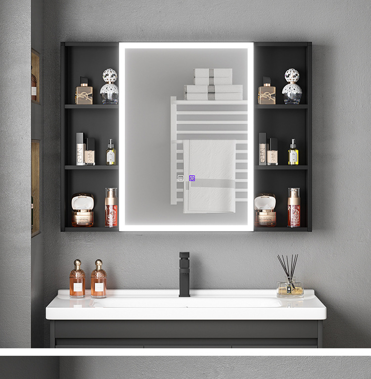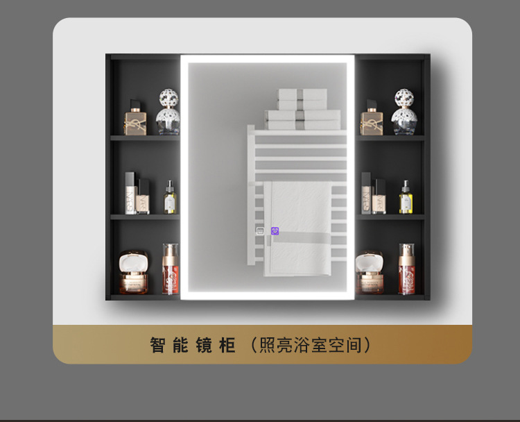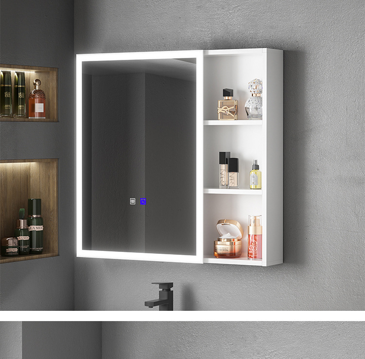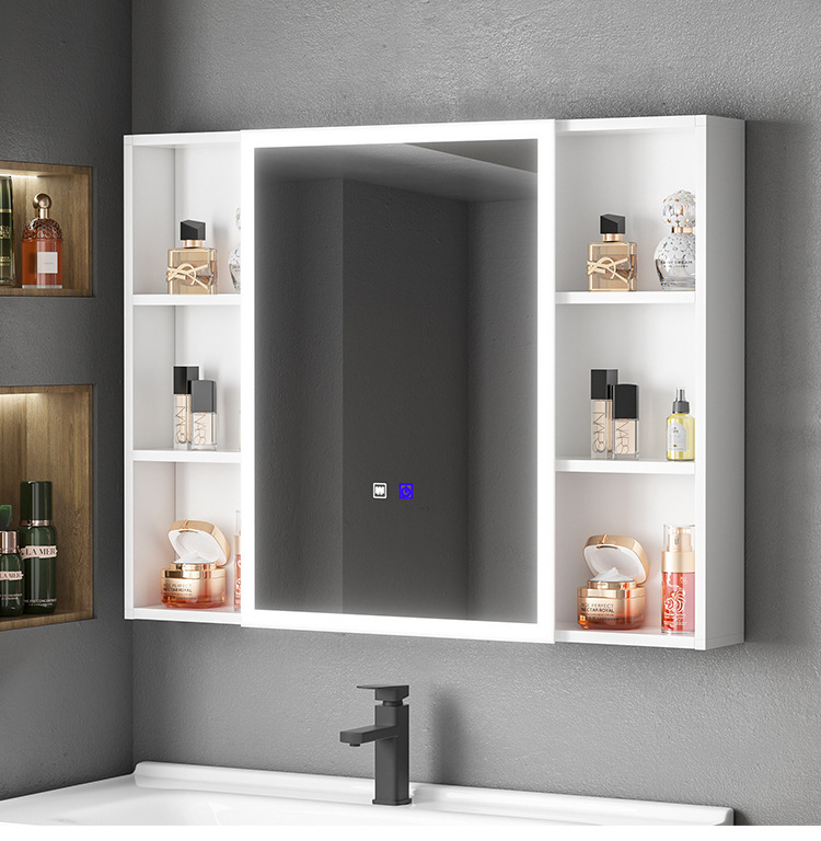 Engrosamiento de aluminio espacio inteligente espejo gabinete montado en la pared de la belleza de almacenamiento rack de baño vestidor espejo de luz desempañar caja de espejo
