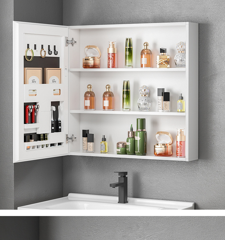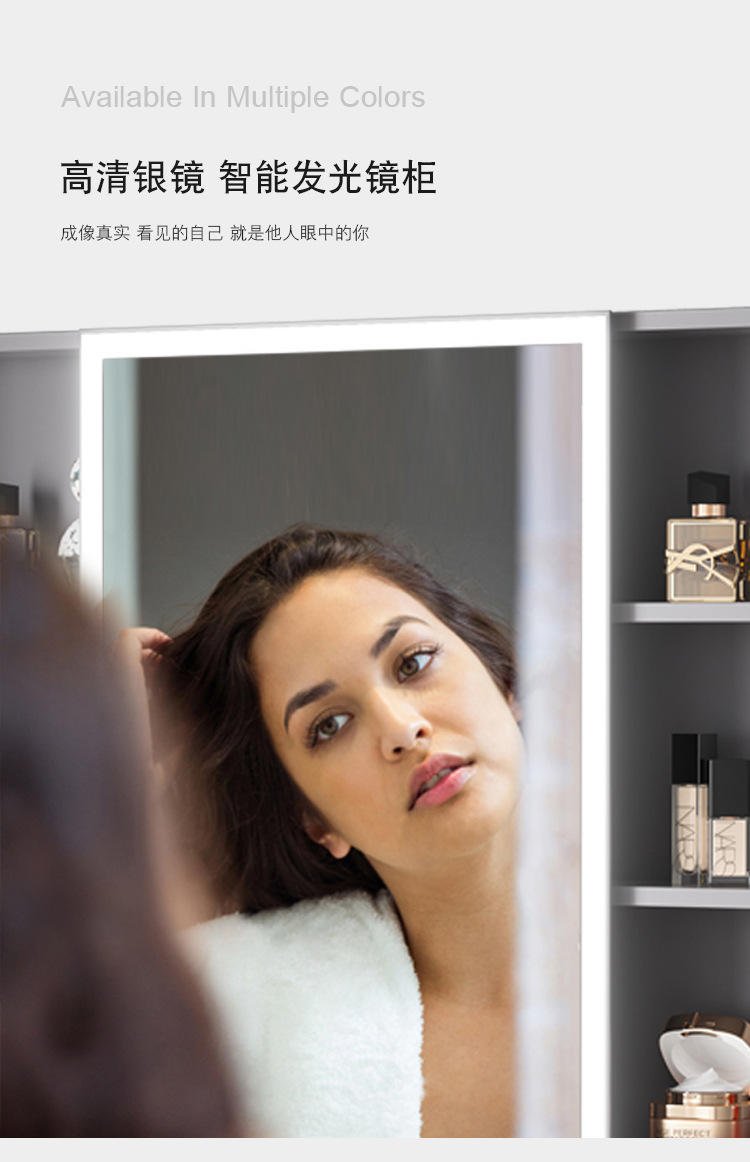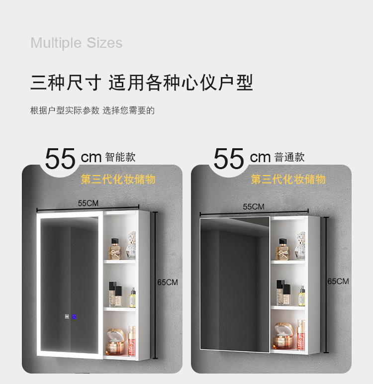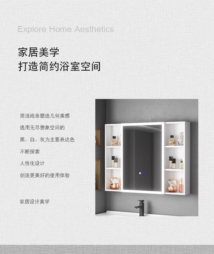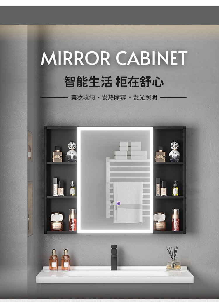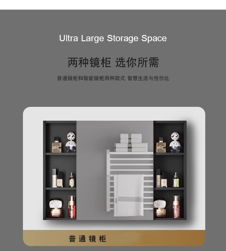 Engrosamiento de aluminio espacio inteligente espejo gabinete montado en la pared de la belleza de almacenamiento rack de baño vestidor espejo de luz desempañar caja de espejo