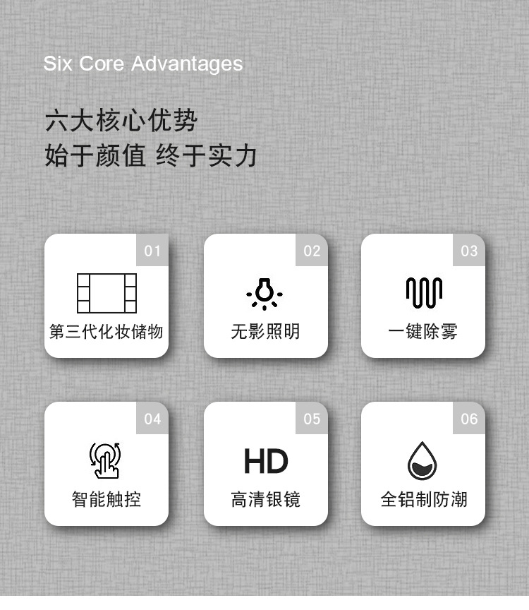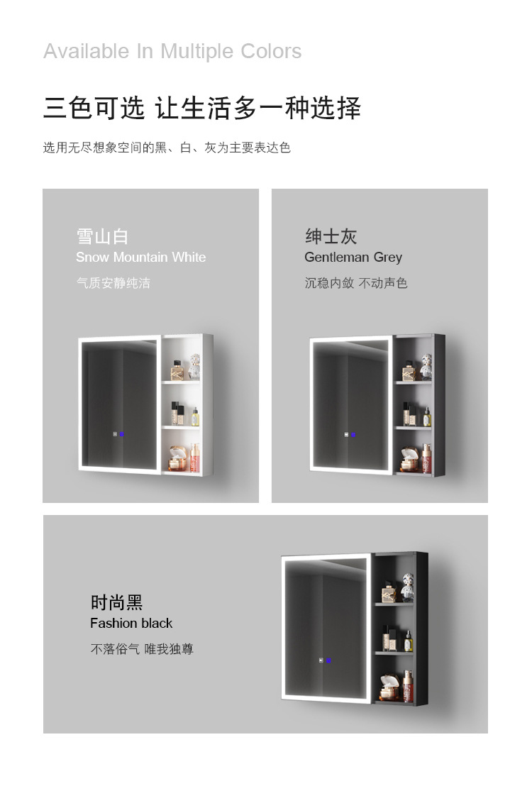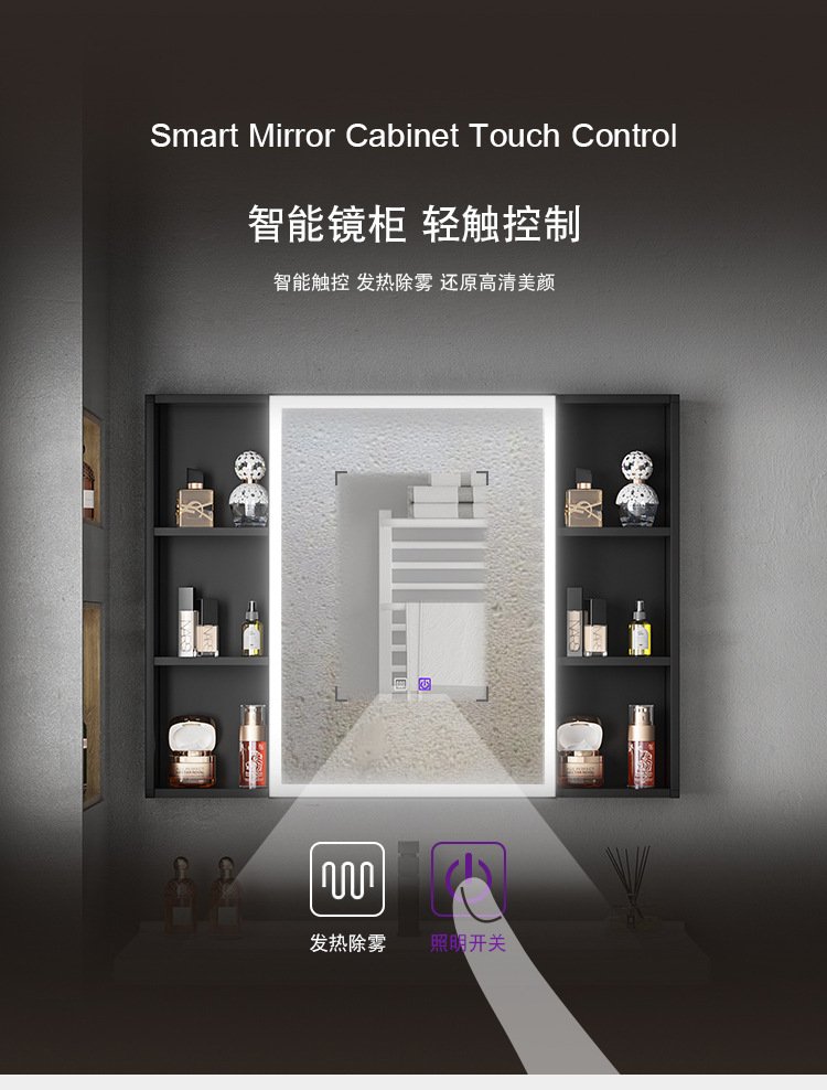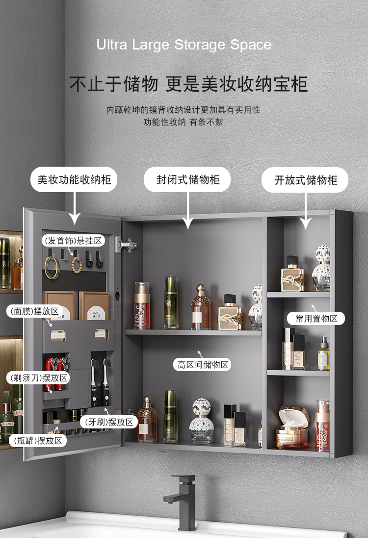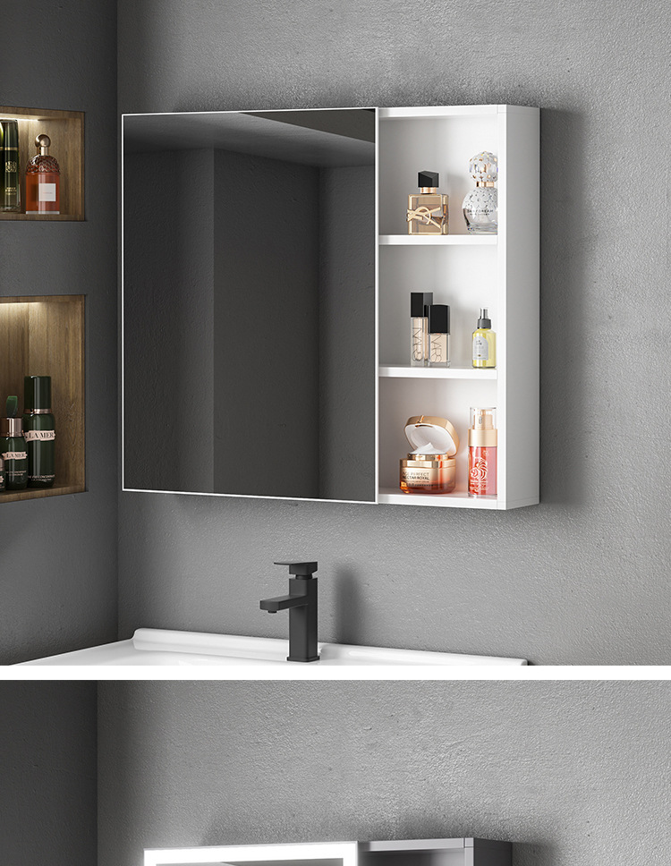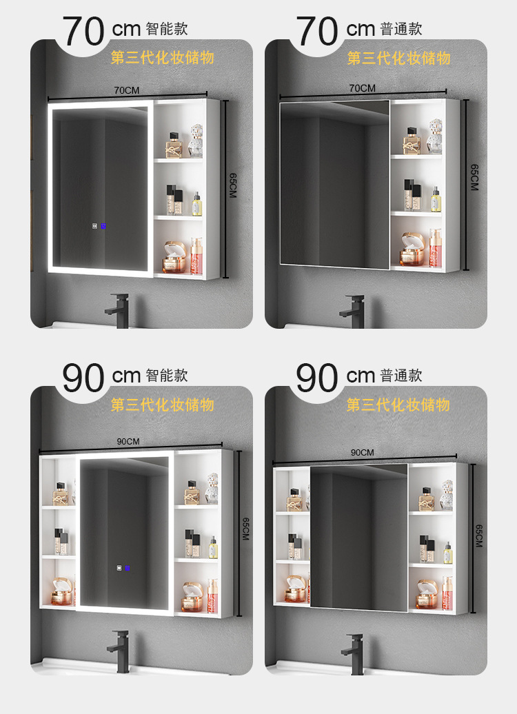 Engrosamiento de aluminio espacio inteligente espejo gabinete montado en la pared de la belleza de almacenamiento rack de baño vestidor espejo de luz desempañar caja de espejo