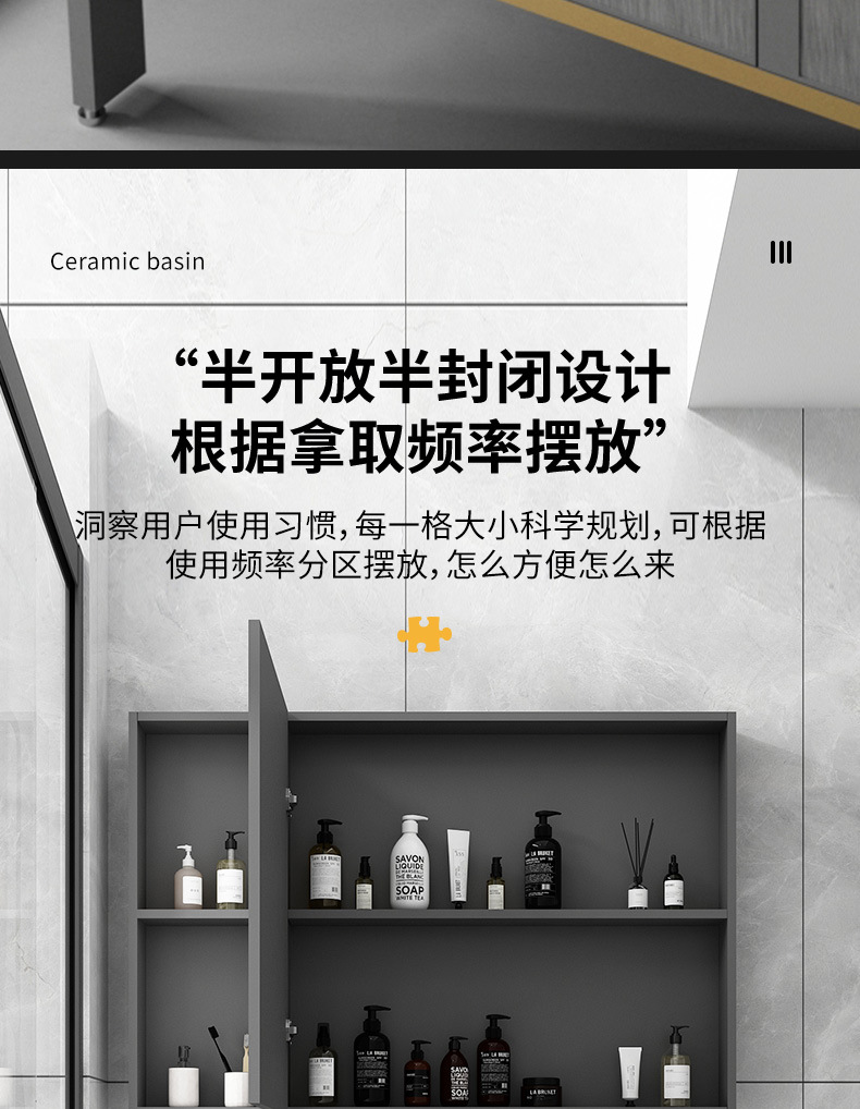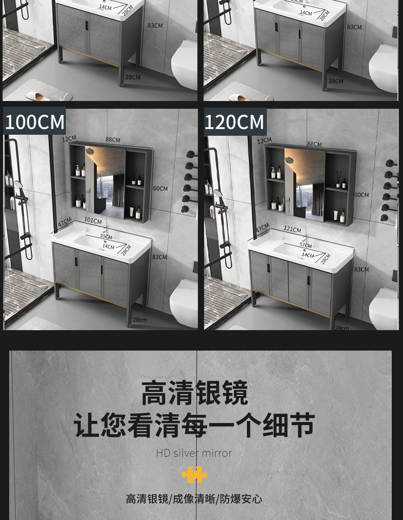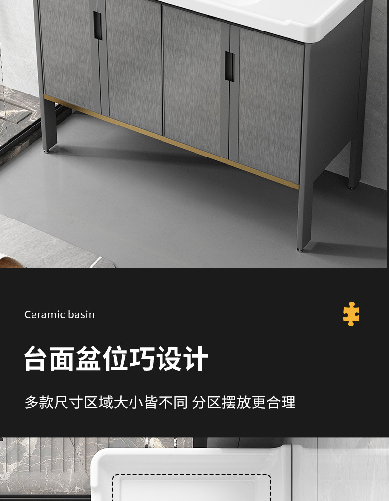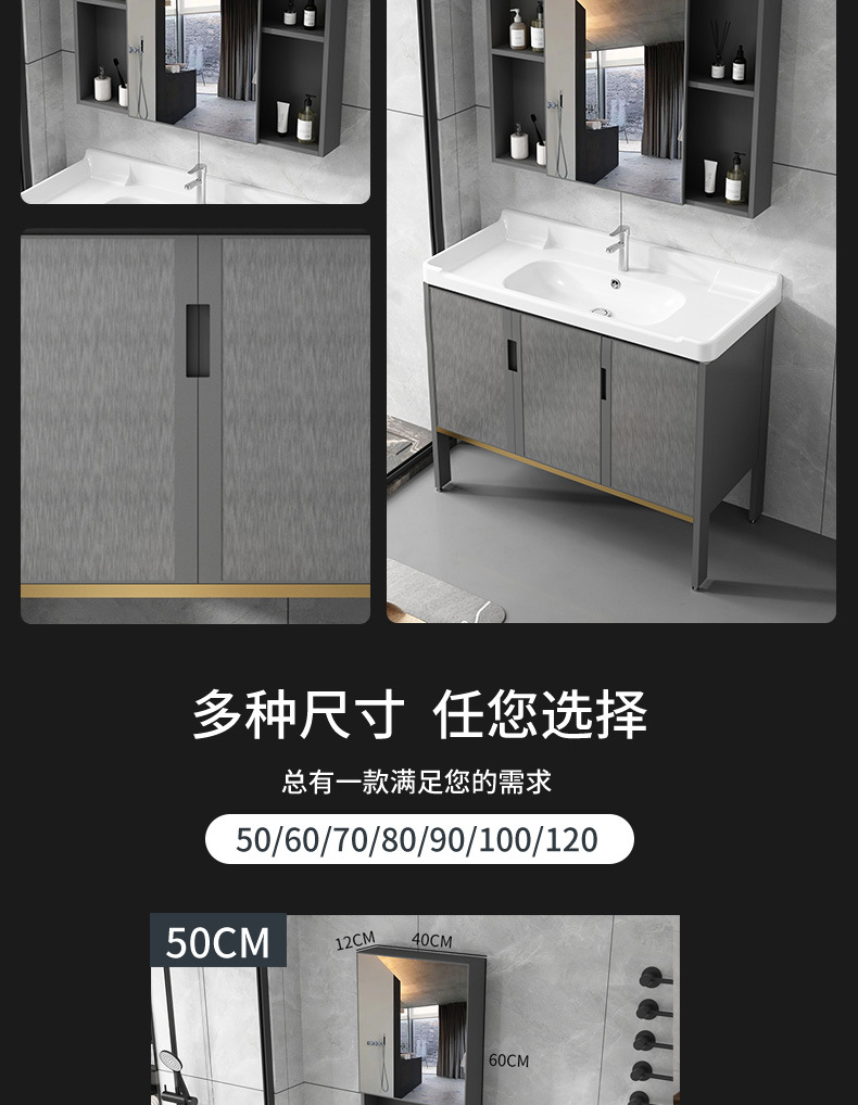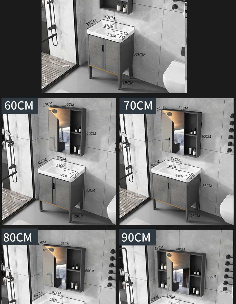 Cuarto de baño de aluminio espacio mostrador lavabo de cerámica moderno minimalista cuarto de baño lavabo gabinete