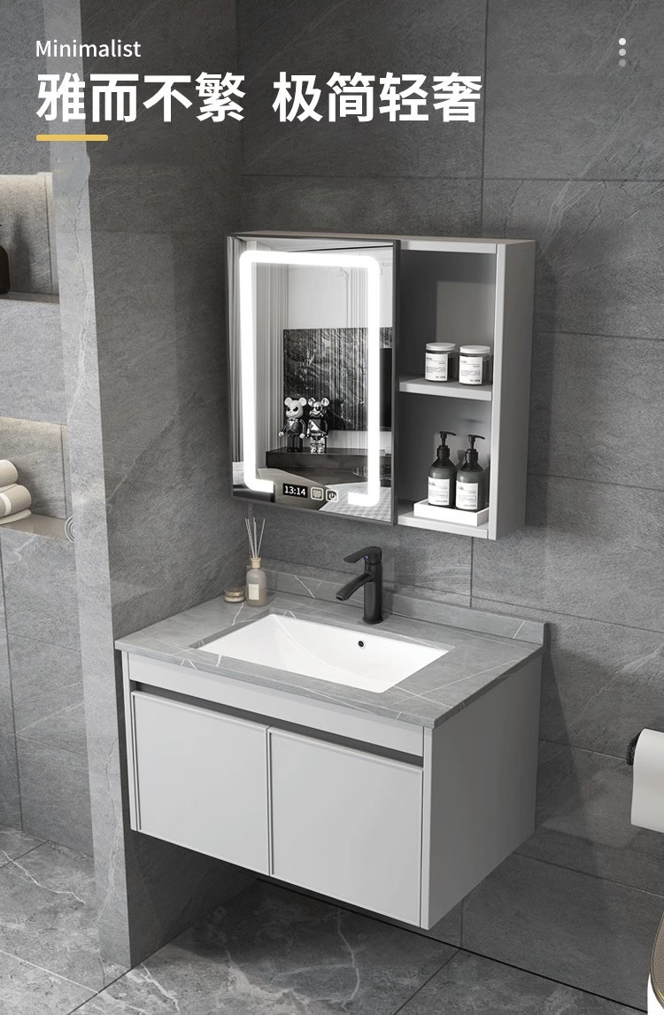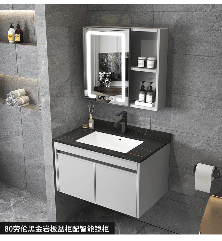 80cm cerámica lavabo gabinete + espejo inteligente luz del Gabinete TIEMPO DE desempañamiento