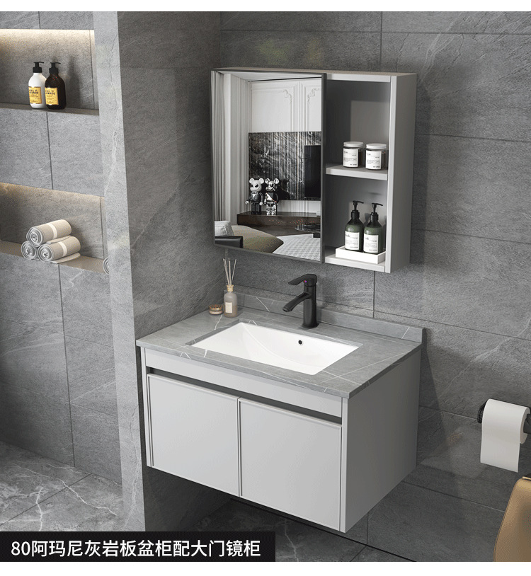 80cm split Placa de piedra caliza cuenca gabinete + espejo ordinario gabinete entrega a domicilio grifo hardware