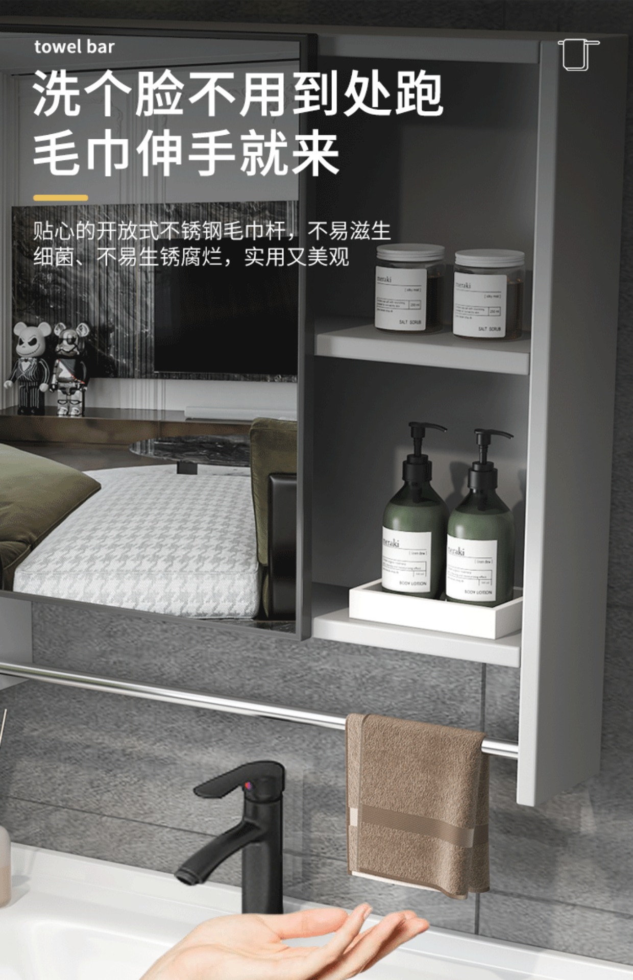 70cm Placa de roca lateral del gabinete del lavabo + barra de la toalla espejo gabinete enviado a casa + grifo hardware