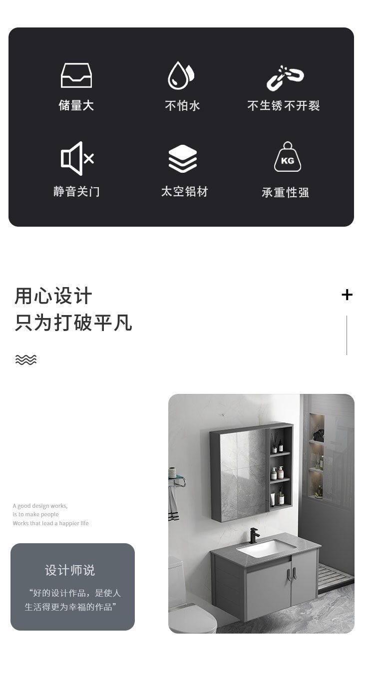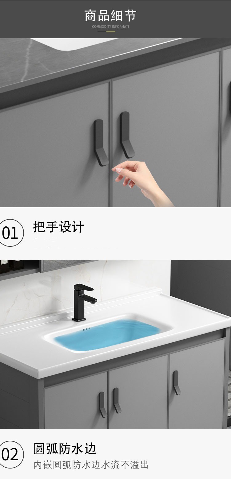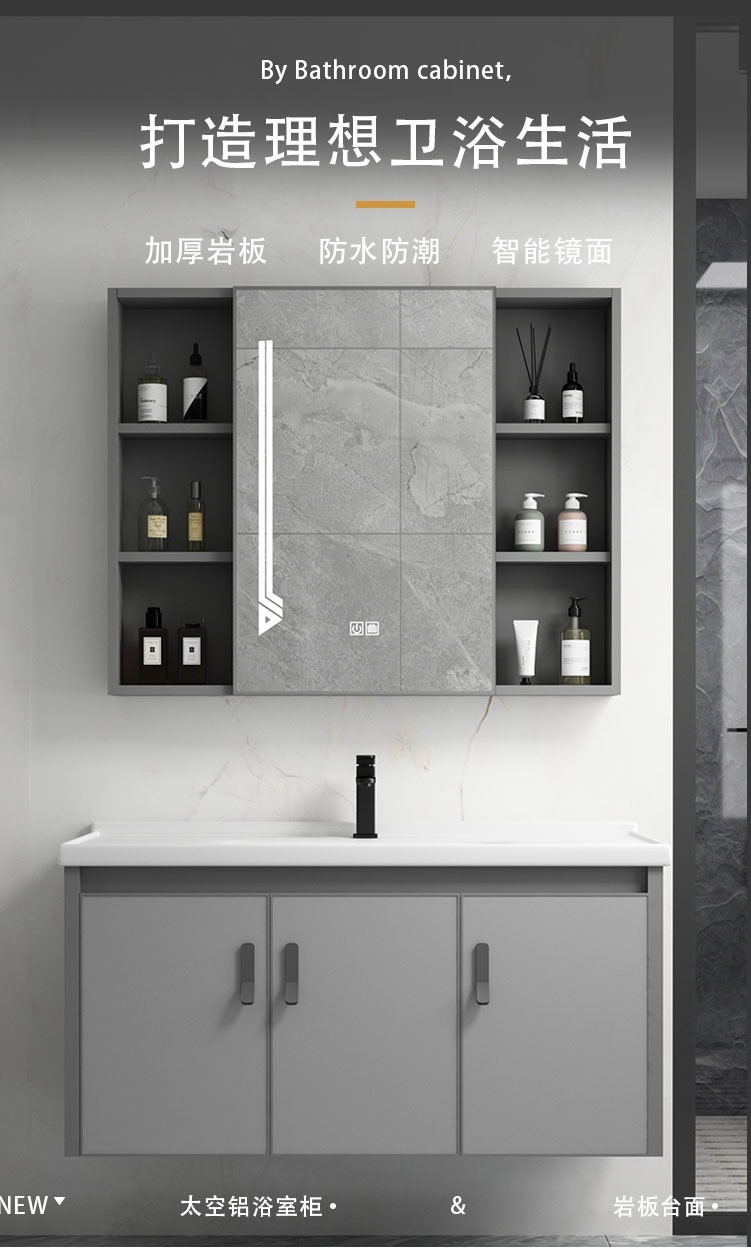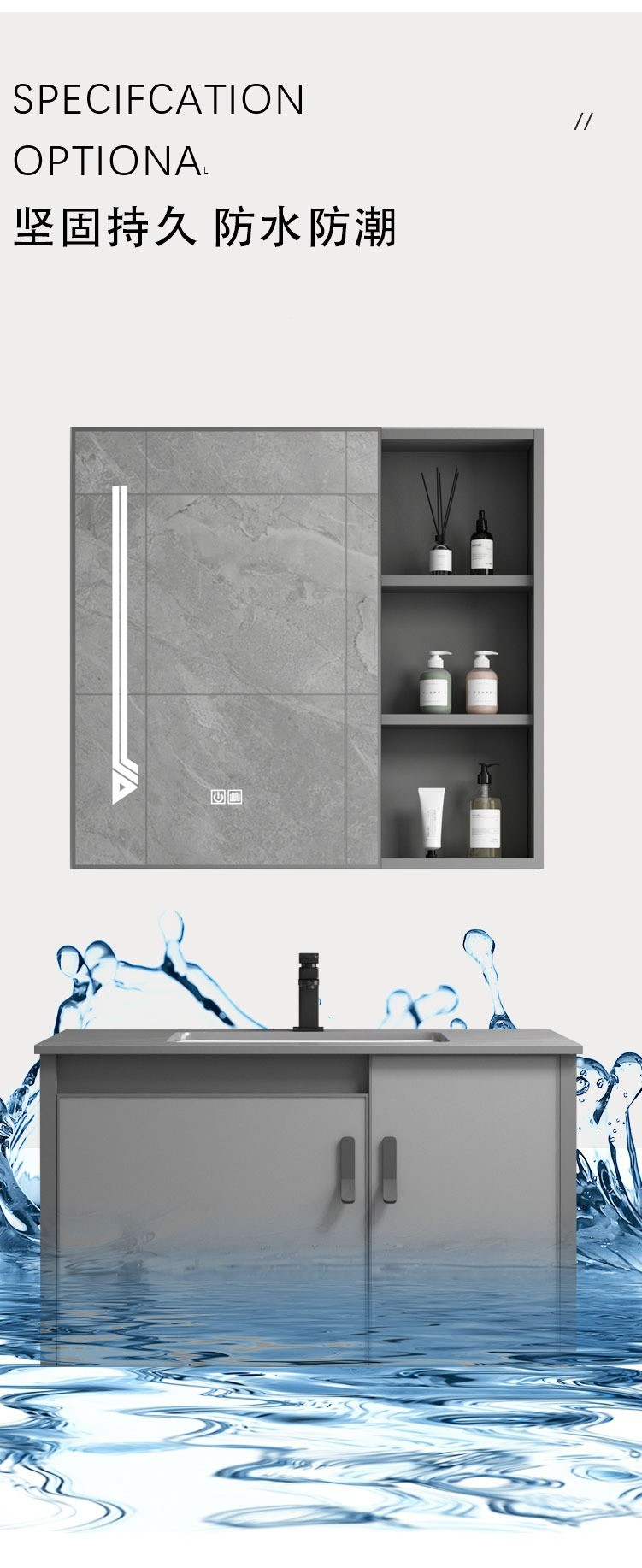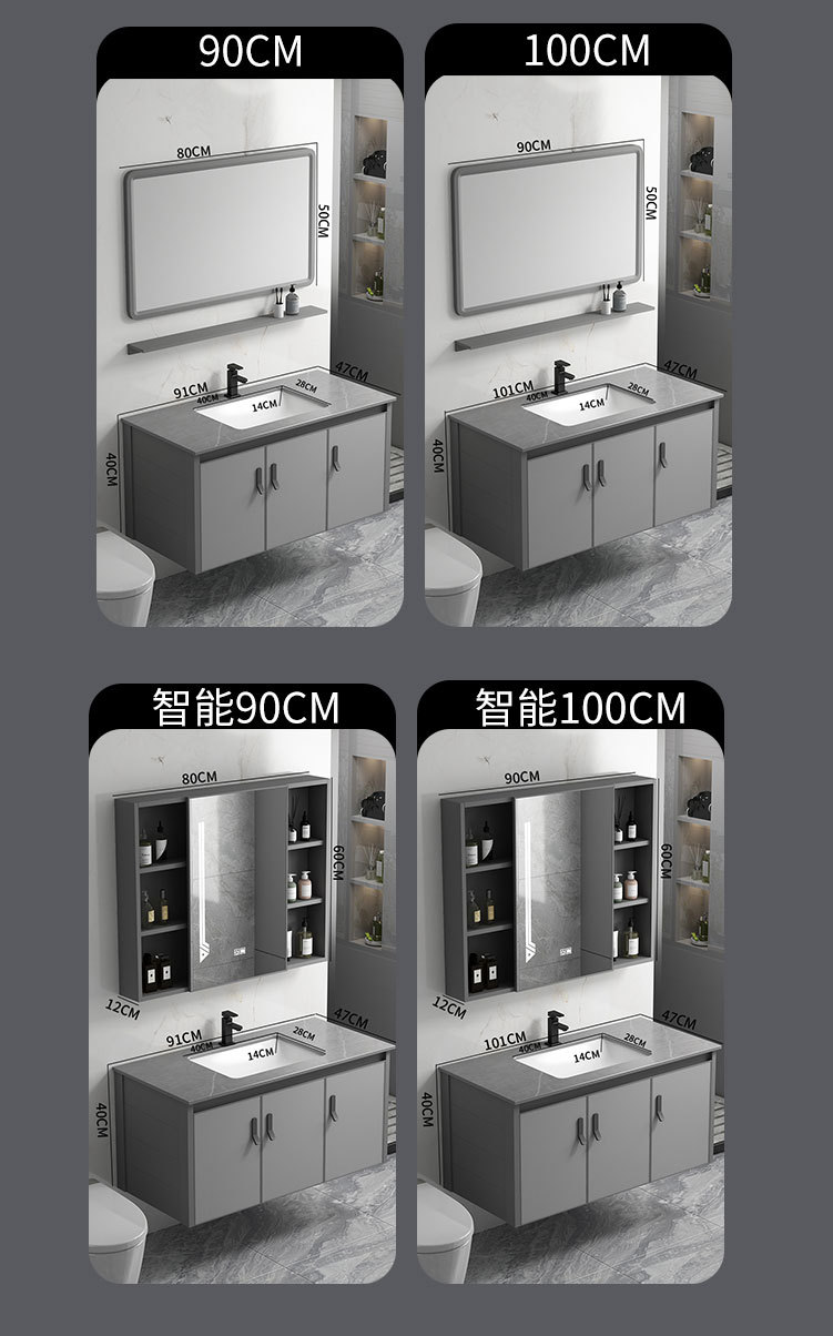 Simple moderno espacio de aluminio gabinete de baño montado en la pared del lavabo gabinete combinación piscina hogar blanco cerámica roca placa cuenca integrada