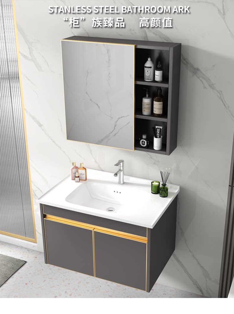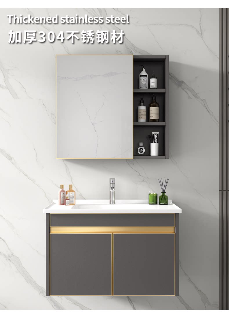 304 gabinete de baño de acero inoxidable combinación estrecho y largo pequeño apartamento lavabo gabinete mesa de lavado lavabo gabinete de luz de lujo simple