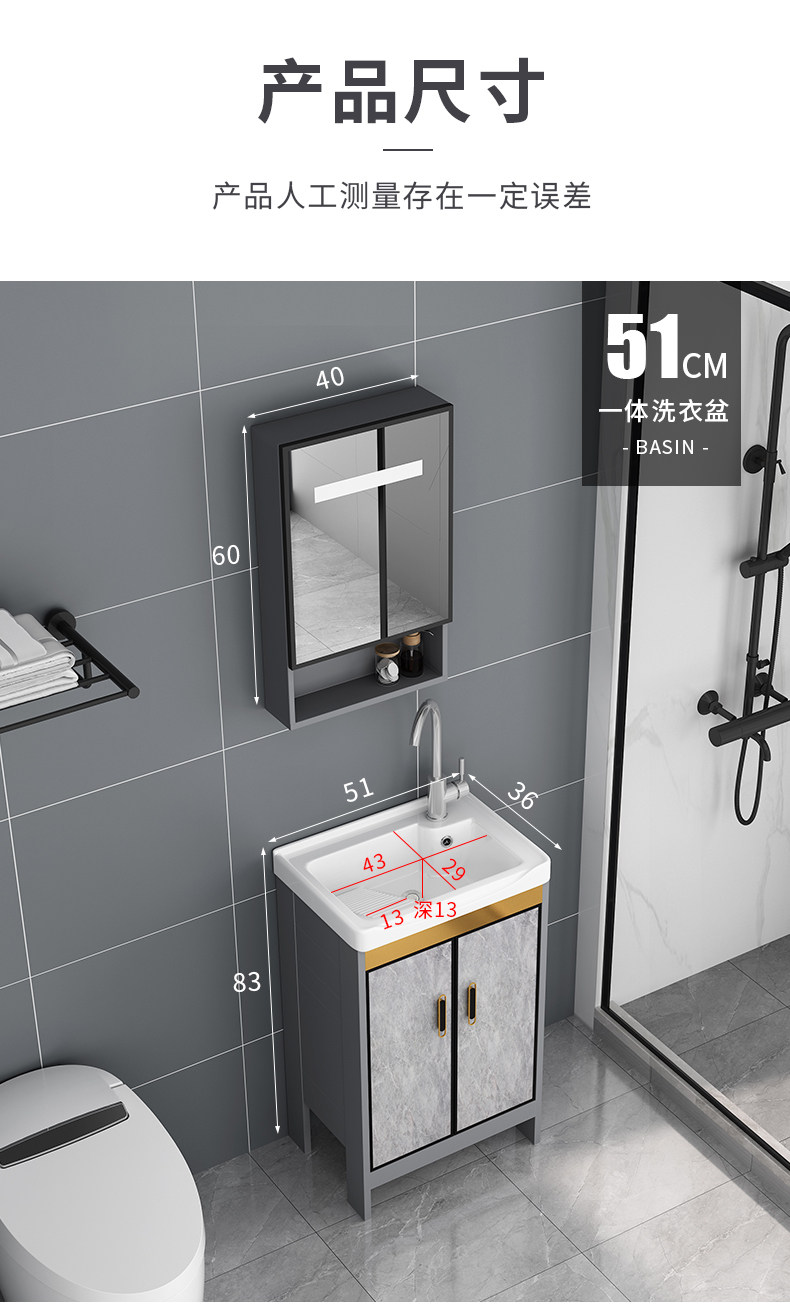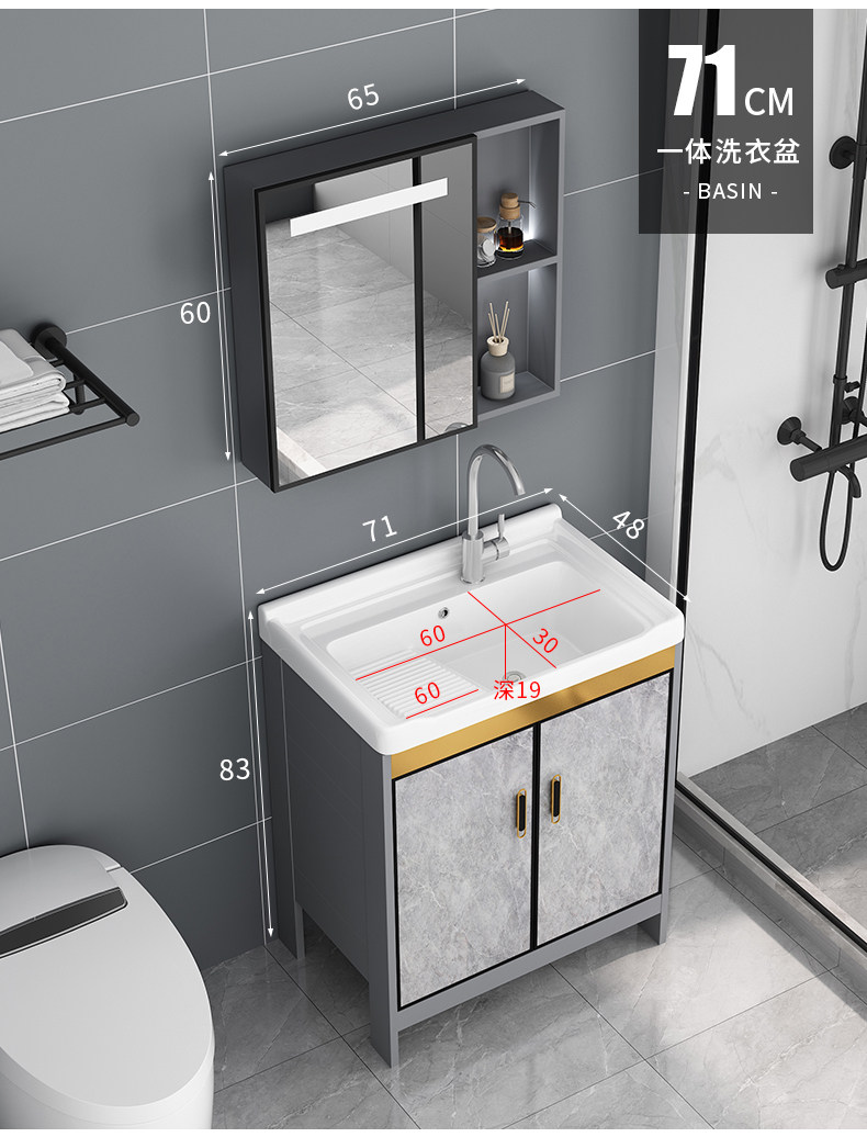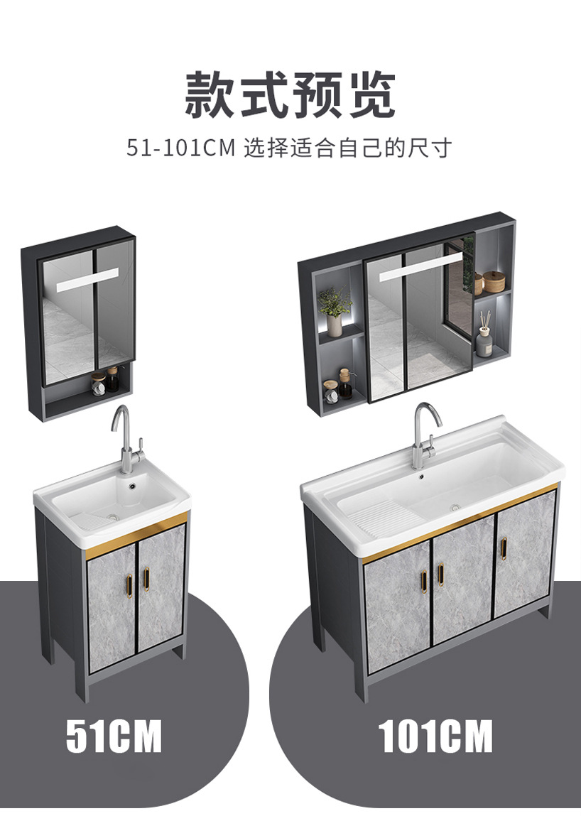 Armario de lavado de aluminio al aire libre armario de baño Lavado de Manos armario de baño balcón lavandería piscina con lavabo de cerámica lavabo