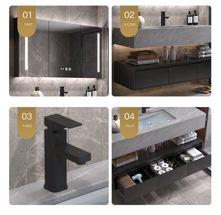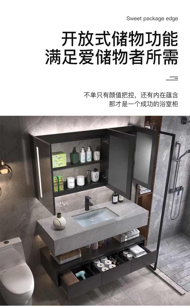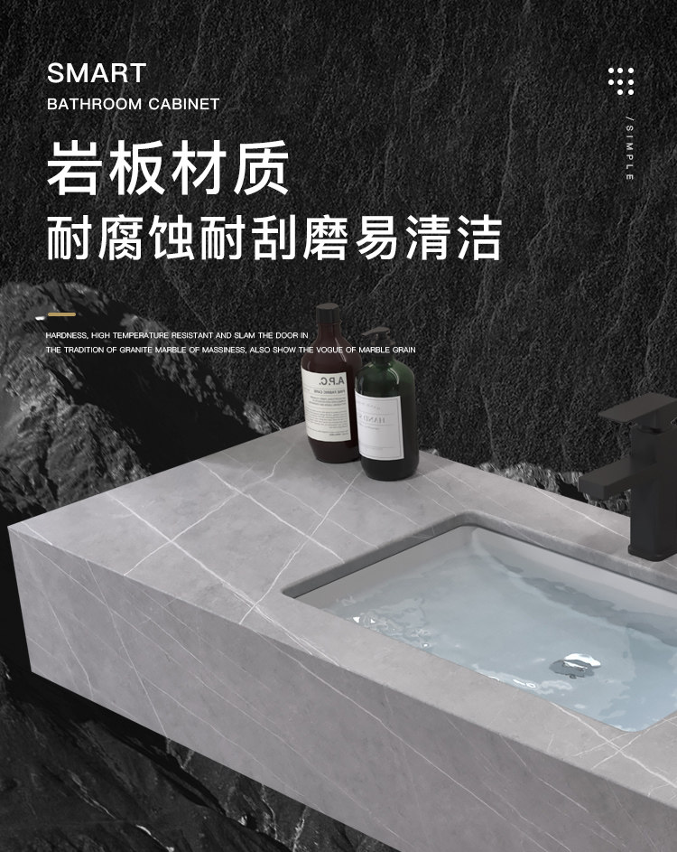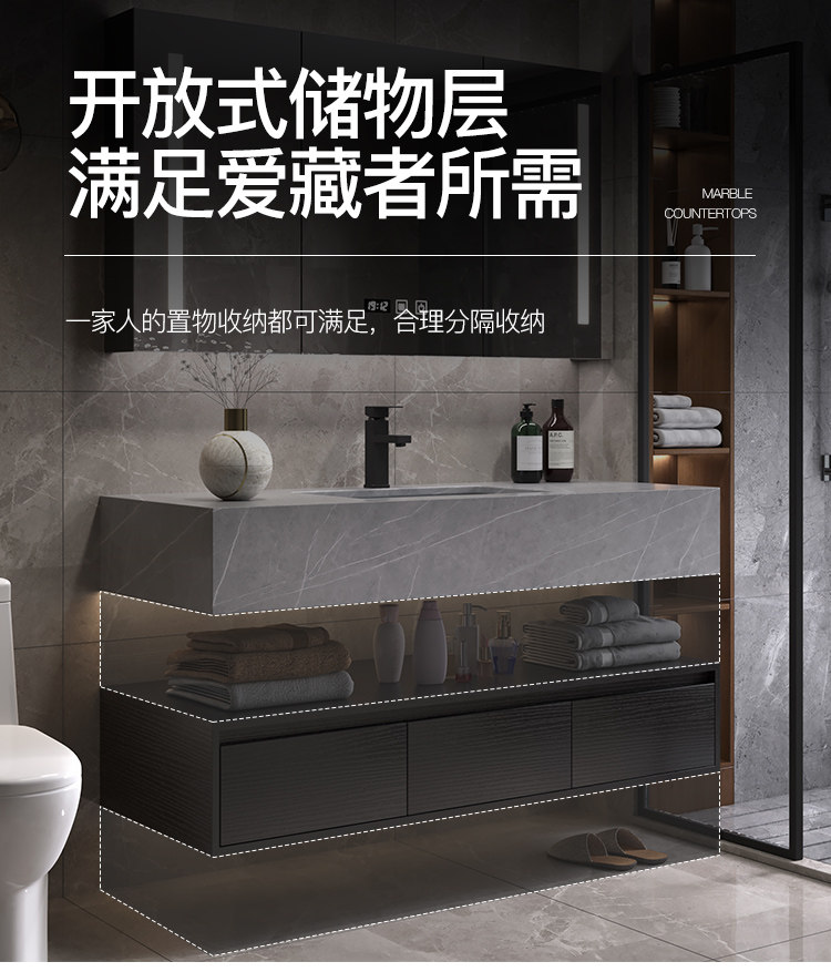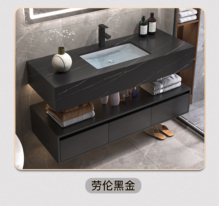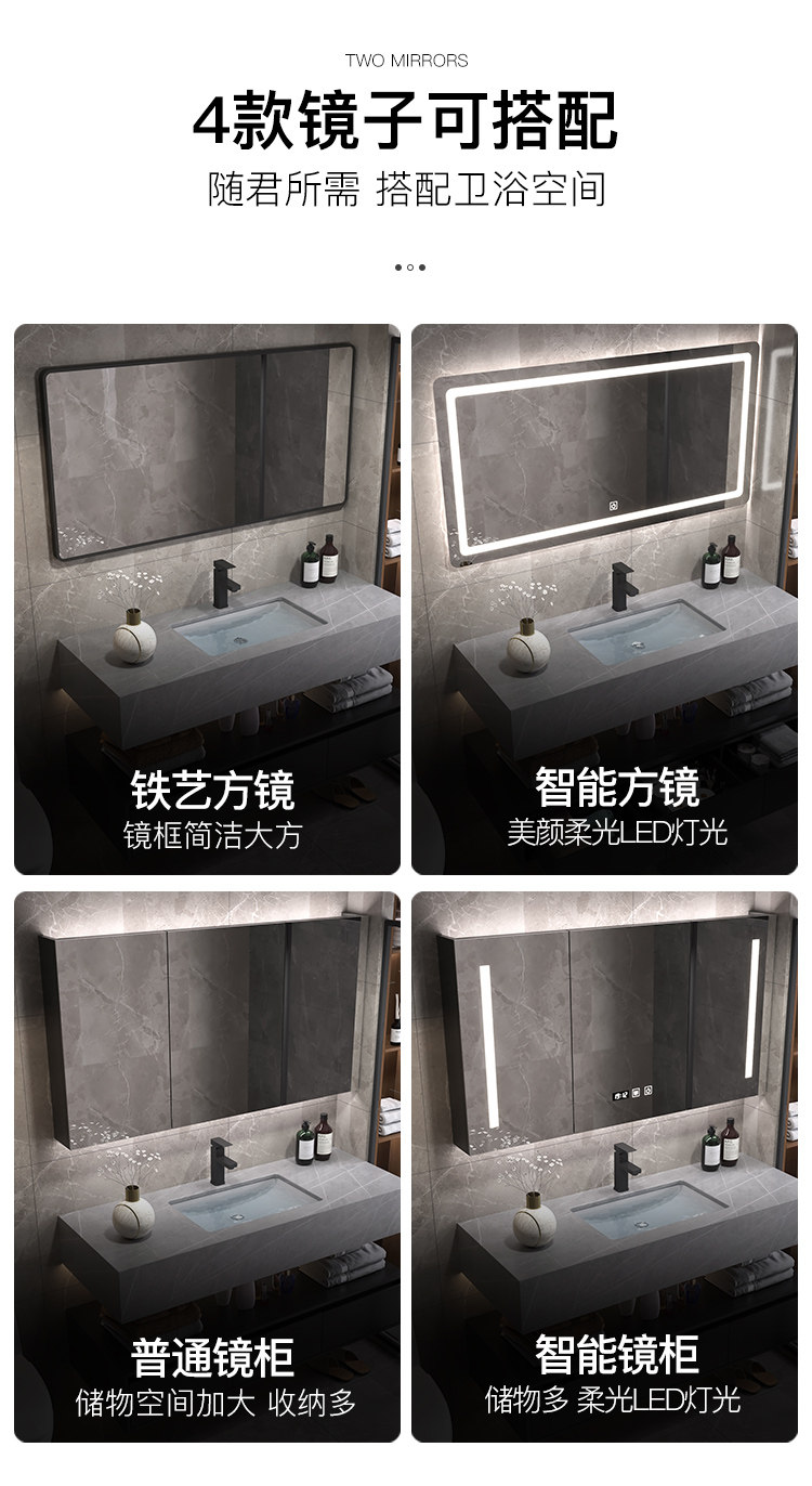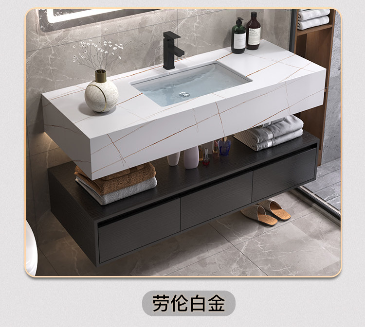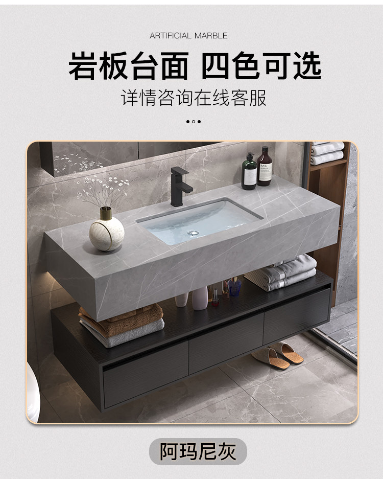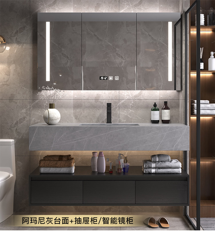 Luz de lujo placa Rock gabinete de baño combinación lavabo mesa de lavado inteligente espejo gabinete lavabo de baño lavabo gabinete