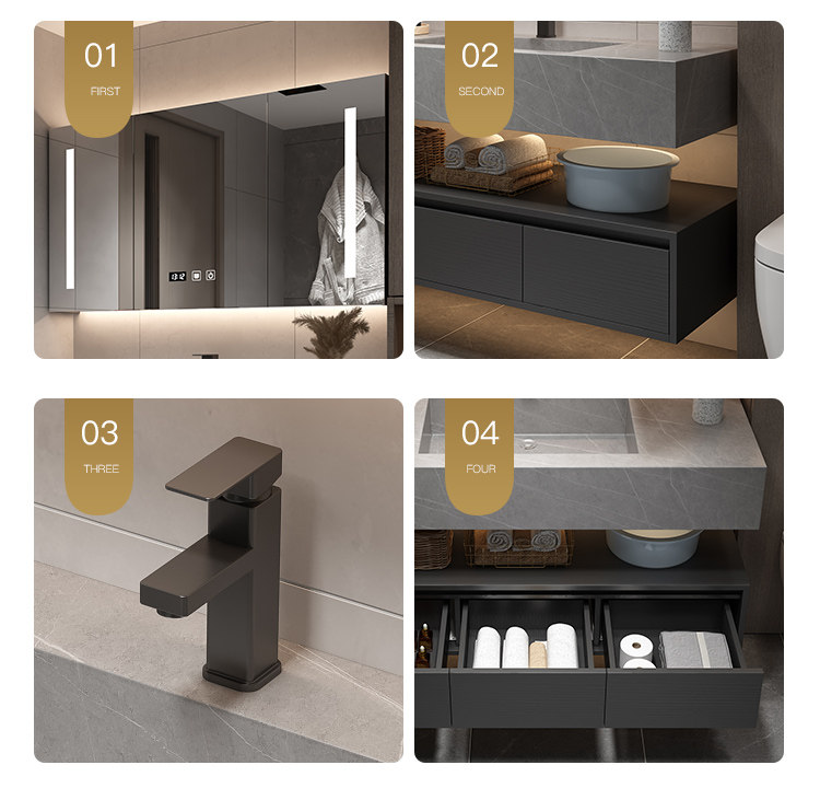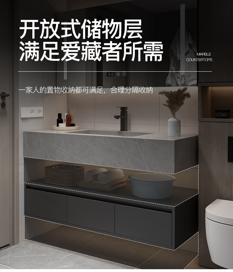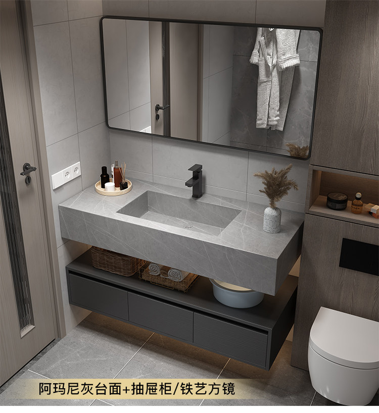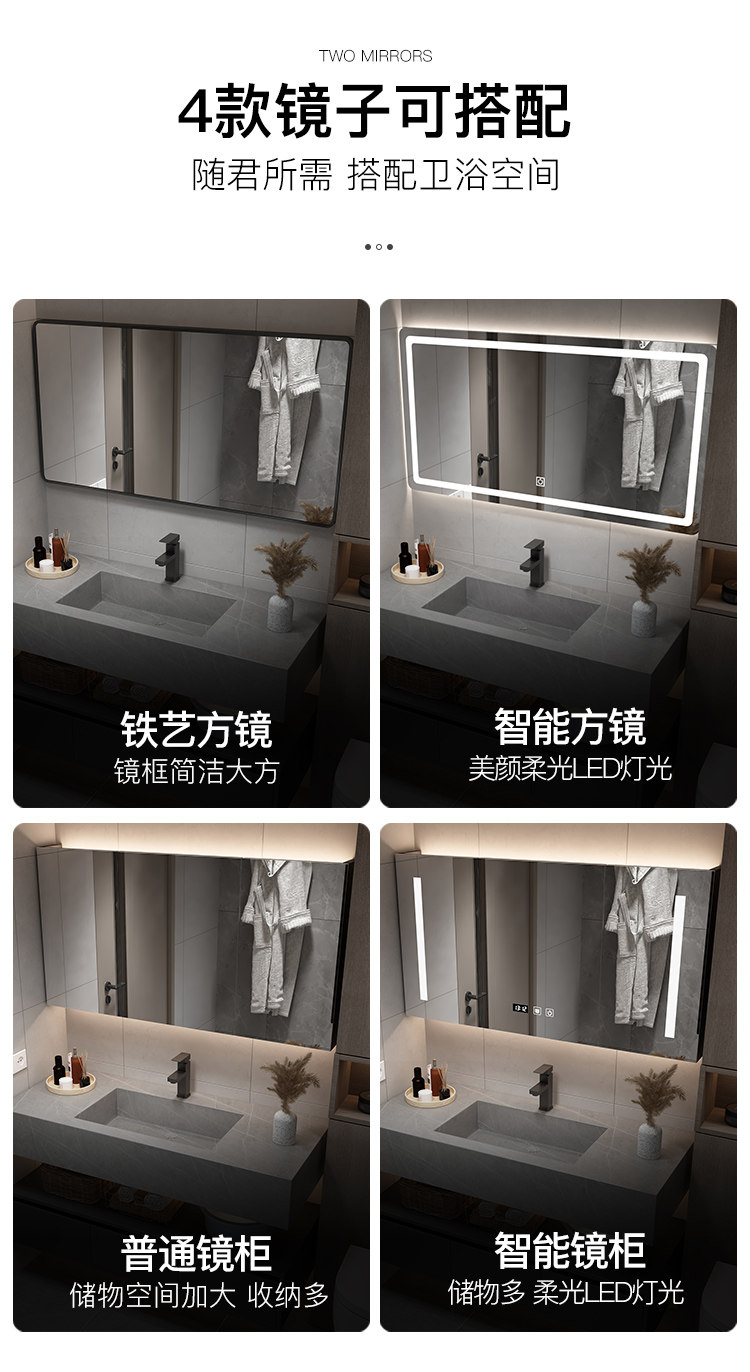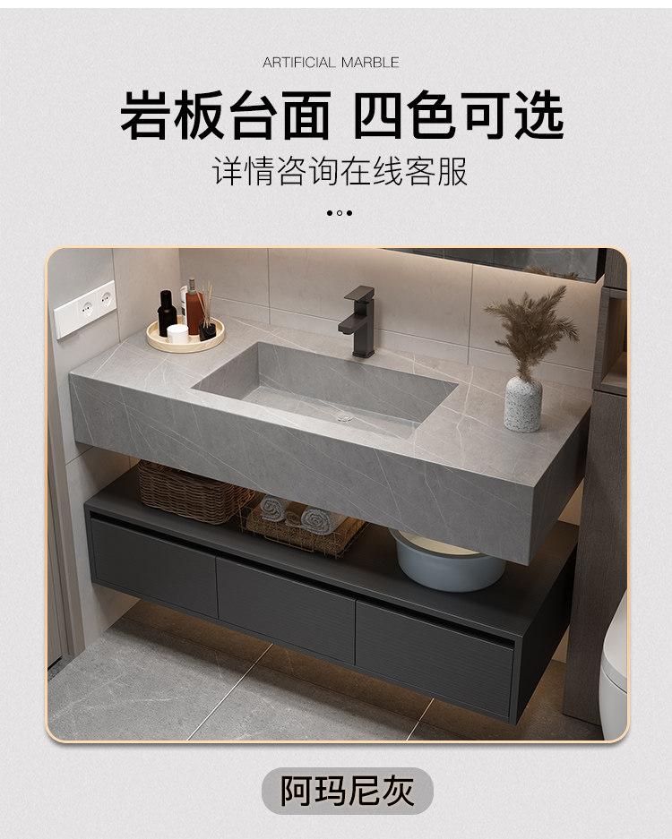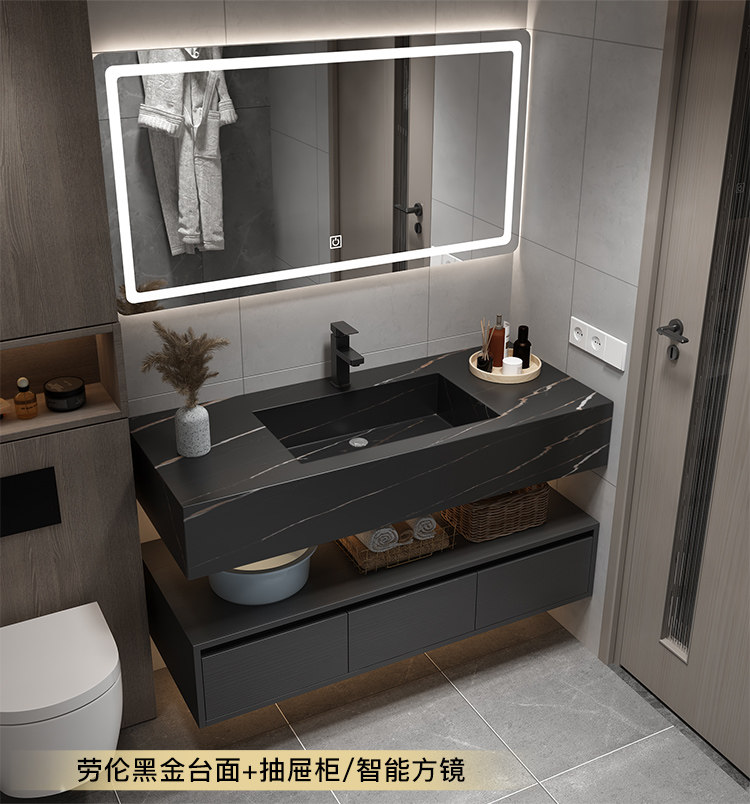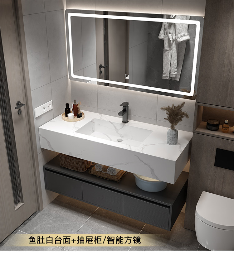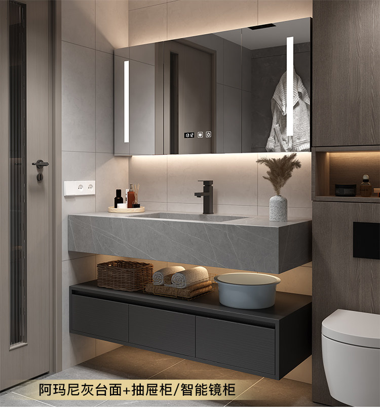 Rock placa integrada cuenca moderna minimalista baño gabinete combinación inteligente espejo gabinete lavabo baño lavabo combinación gabinete