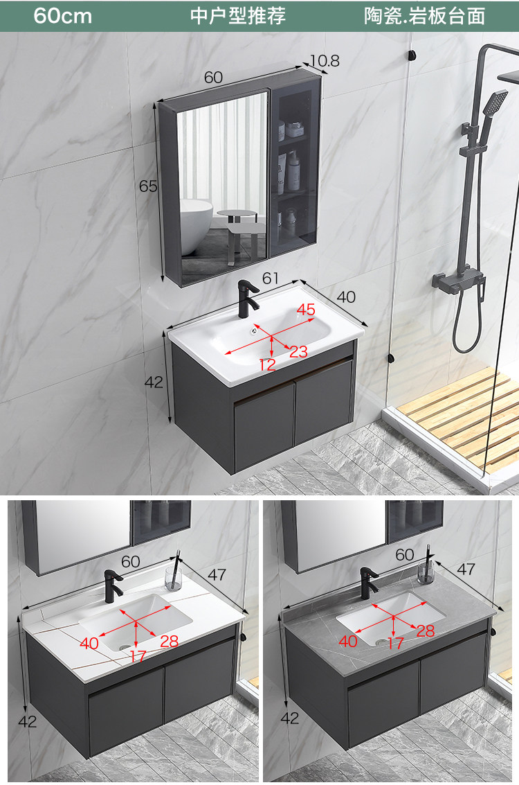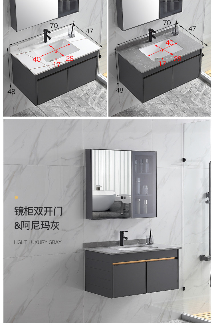 Engrosado espacio gabinete de baño de aluminio combinación de baño mesa de lavado integrado lavabo de cerámica Placa de roca lavabo espejo gabinete