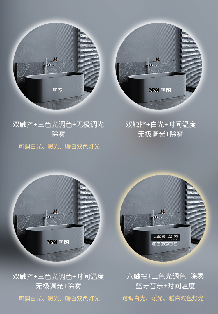 Shiyi inteligente espejo de baño montado en la pared espejo redondo LED espejo cosmético pantalla táctil anti-niebla a prueba de explosión espejo con luz espejo