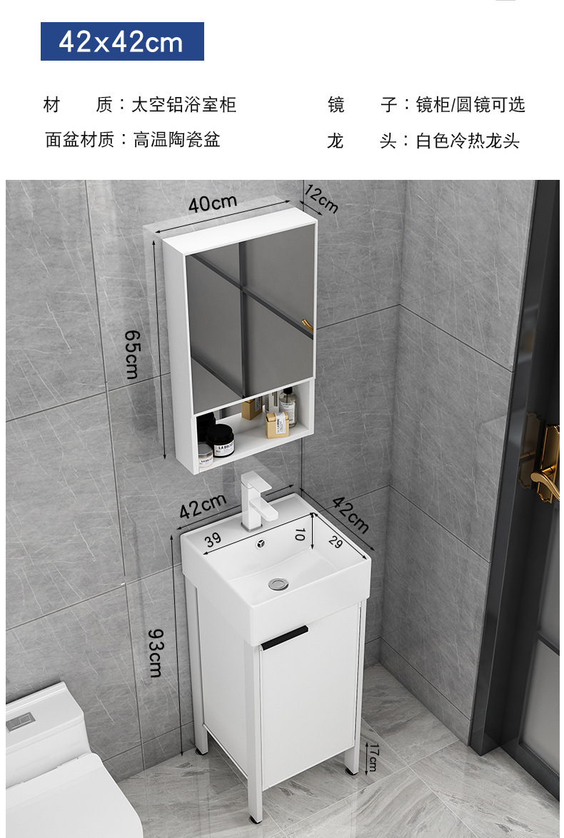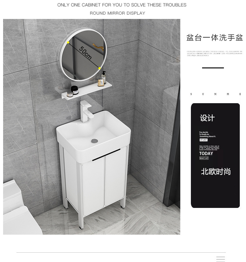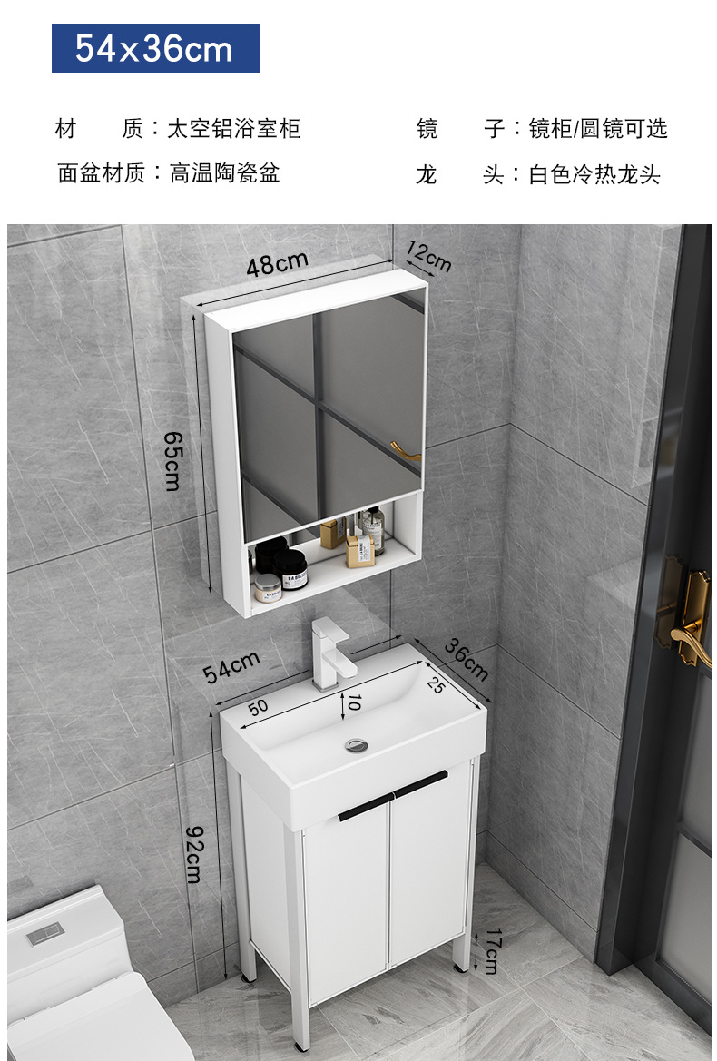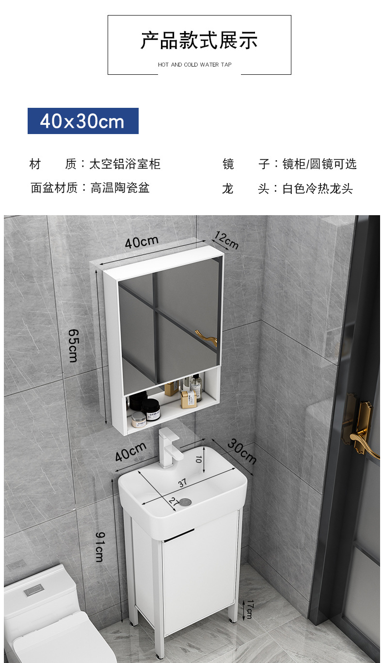 Aluminio espacio pequeño apartamento baño lavabo mueble de baño combinación suelo-pie baño lavabo mueble