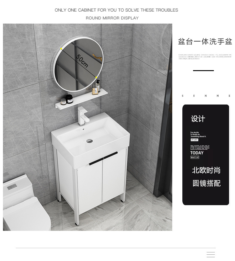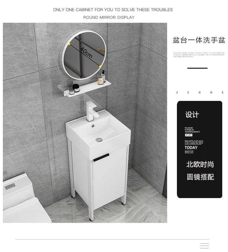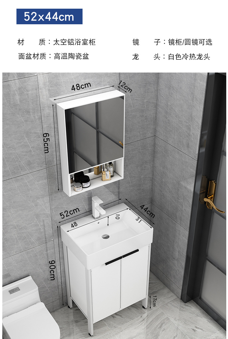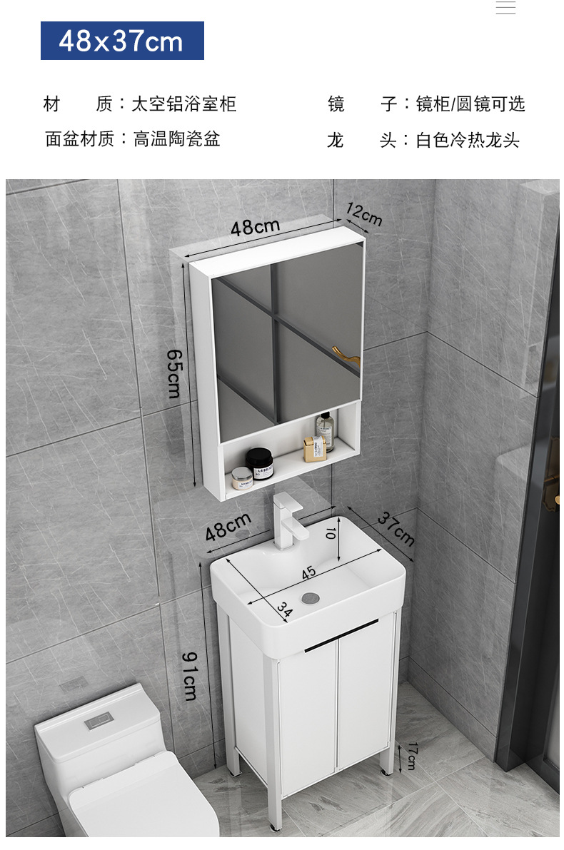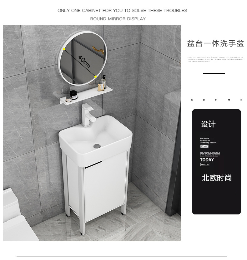 Aluminio espacio pequeño apartamento baño lavabo mueble de baño combinación suelo-pie baño lavabo mueble