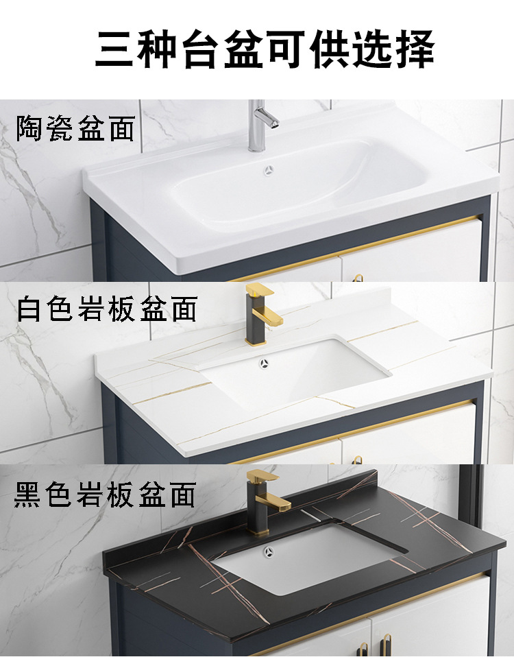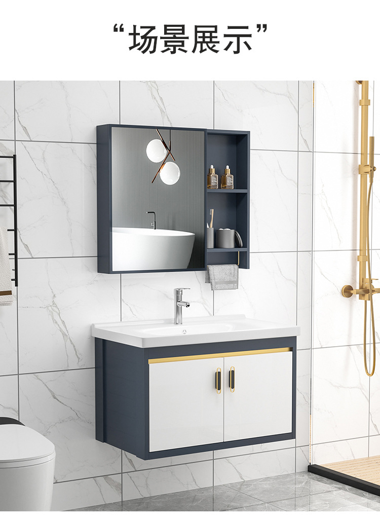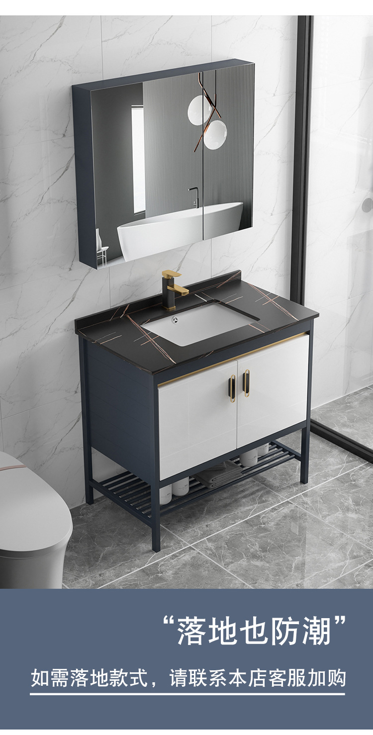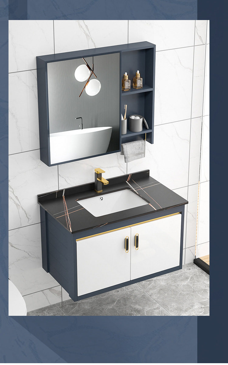 Placa de roca gabinete de baño combinación de lavabo integrado cuarto de baño apartamento pequeño lavabo gabinete mesa de lavado Luz de lujo espacio de aluminio gabinete colgante