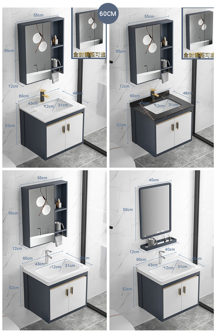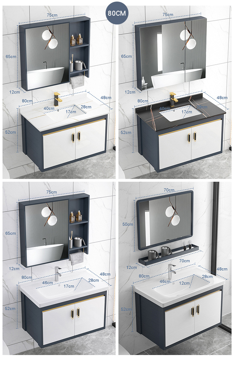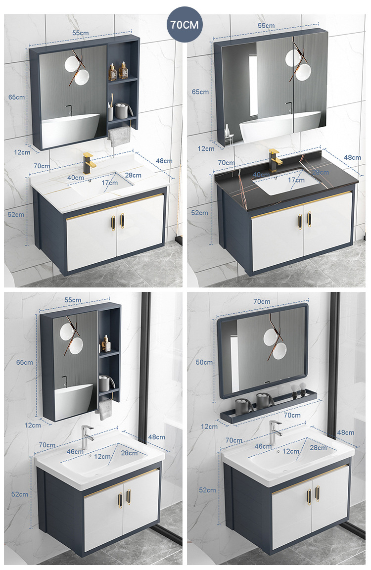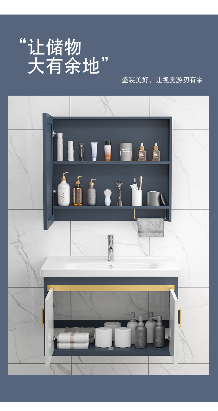 Placa de roca gabinete de baño combinación de lavabo integrado cuarto de baño apartamento pequeño lavabo gabinete mesa de lavado Luz de lujo espacio de aluminio gabinete colgante