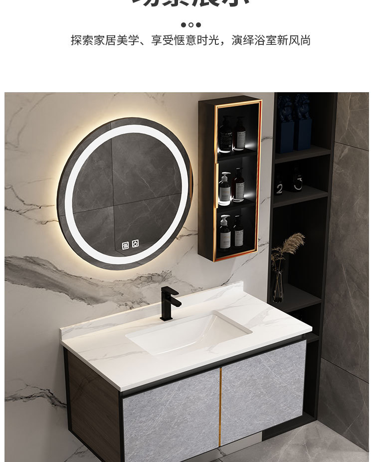 Engrosamiento de aluminio del espacio gabinete de baño fábrica al por mayor gabinete de baño espejo inteligente lavabo Placa de roca lavabo gabinete