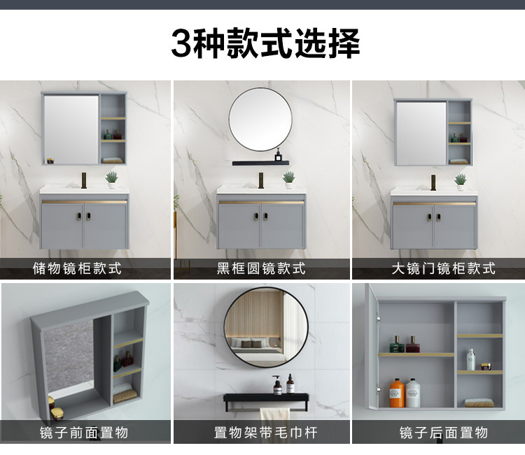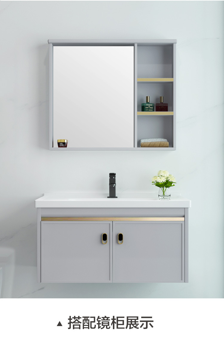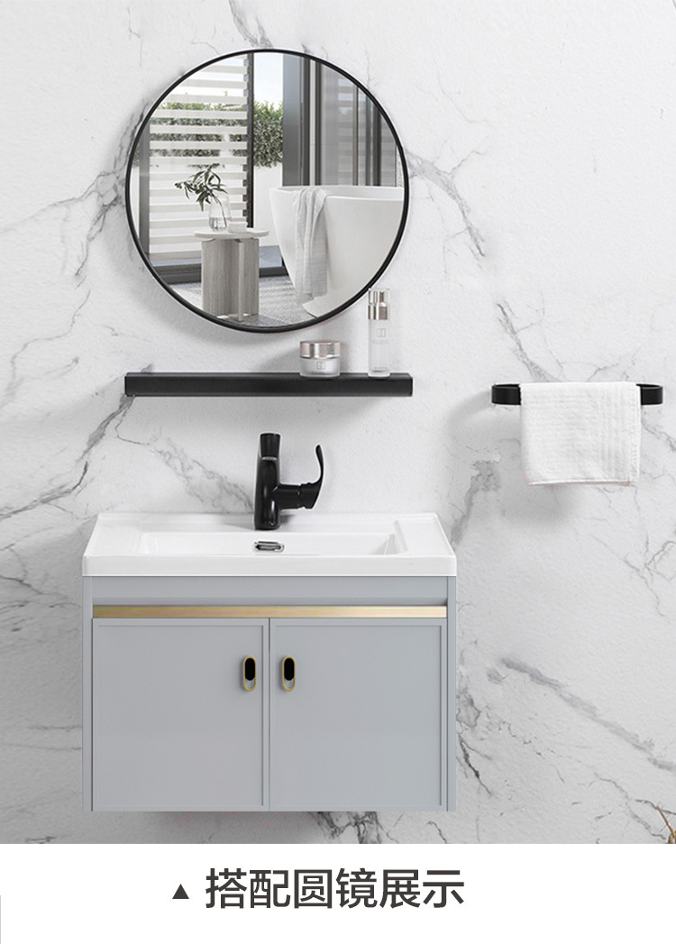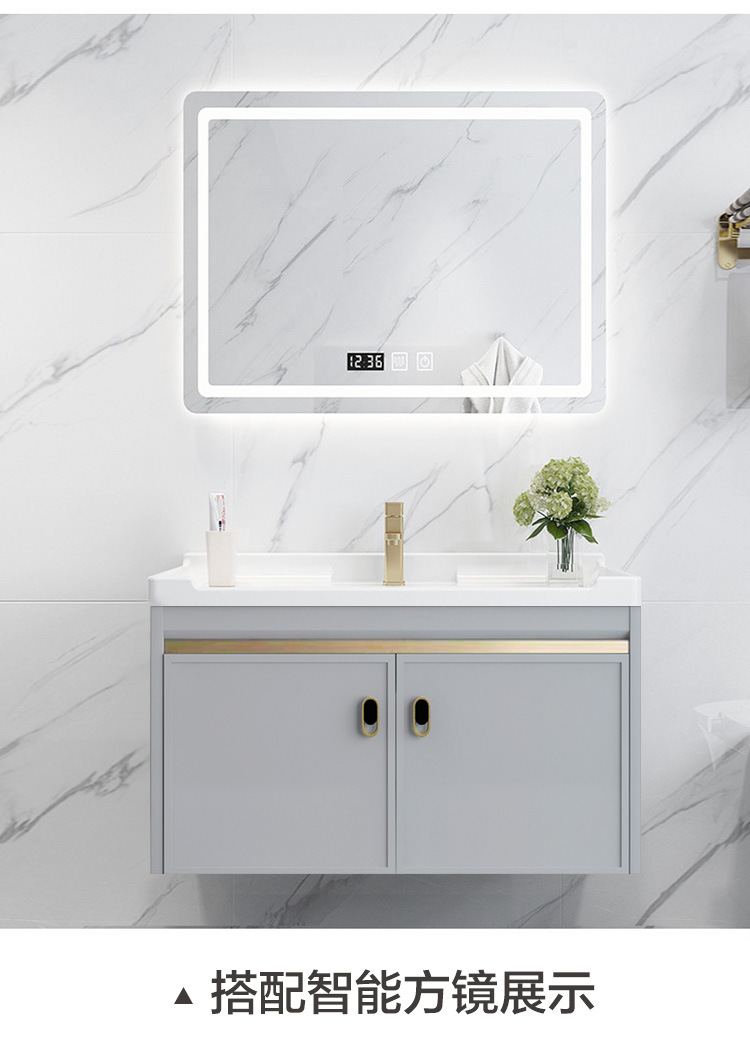Mueble de baño de aluminio espacial combinación Placa de roca lavabo completo gabinete de aluminio baño colgante gabinete espejo gabinete de aleación de aluminio