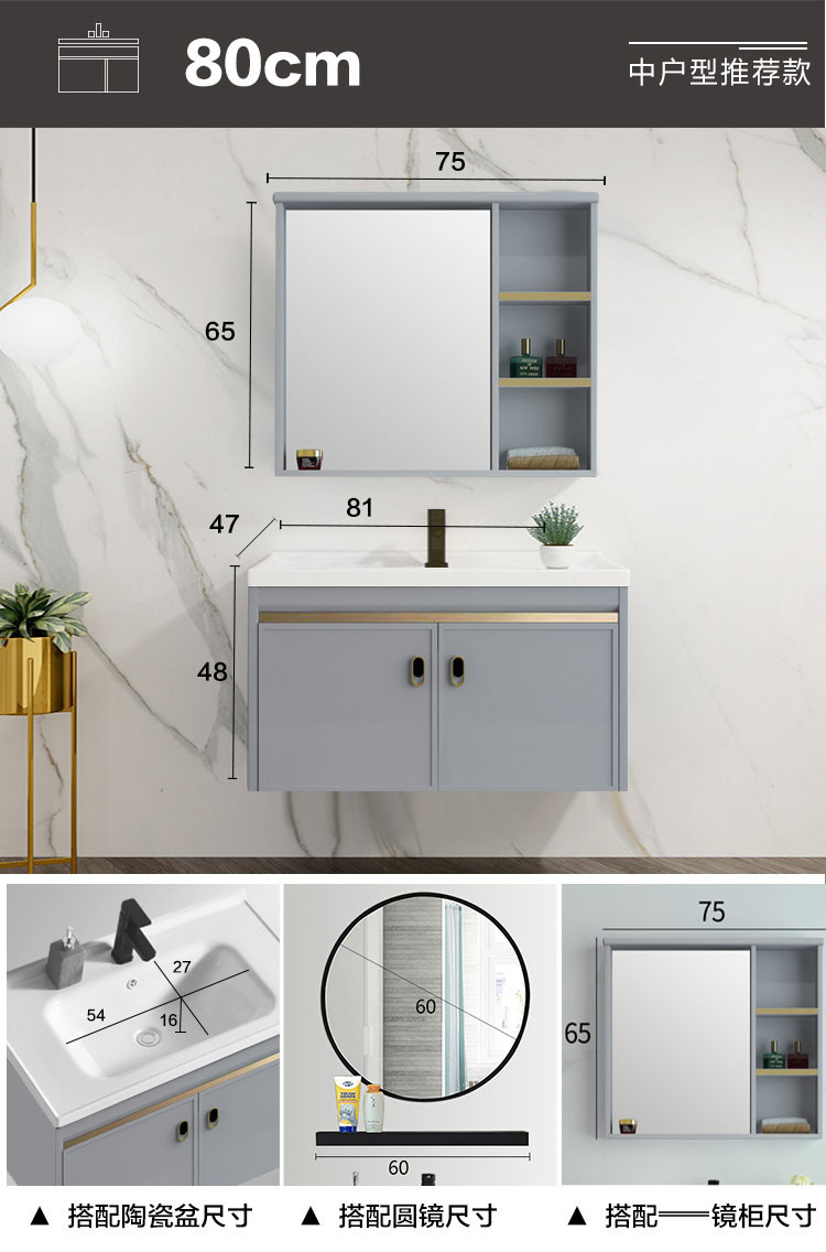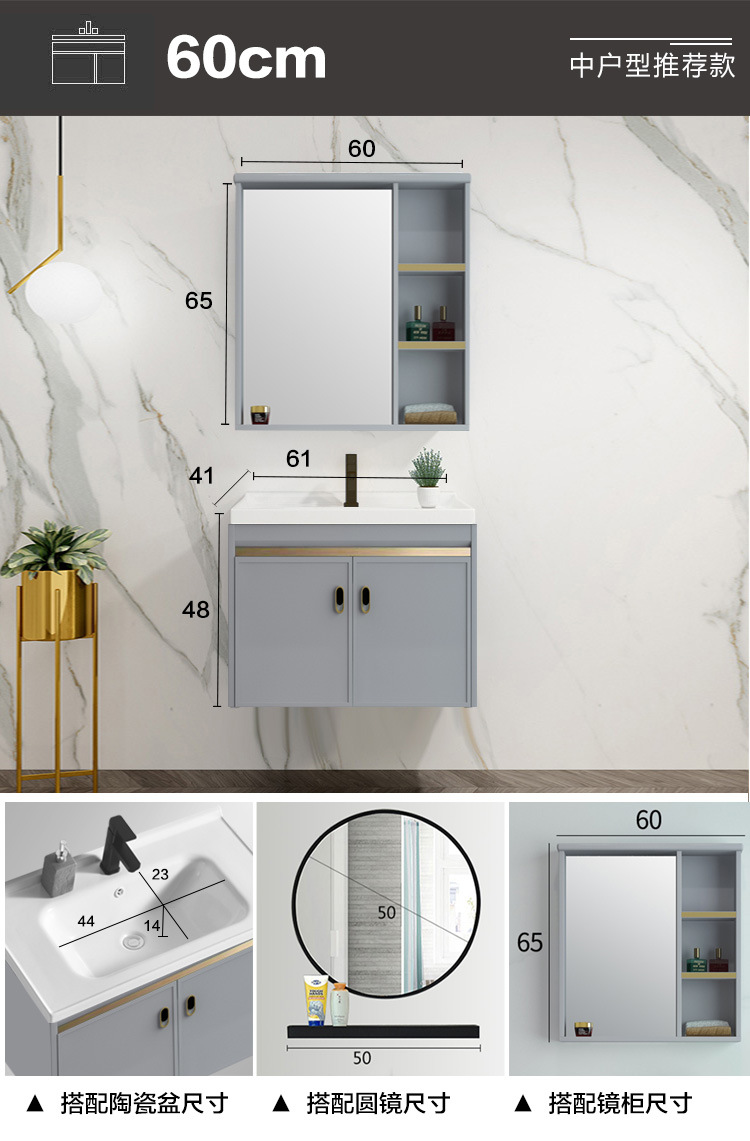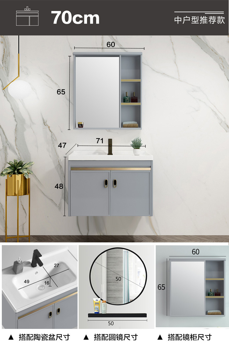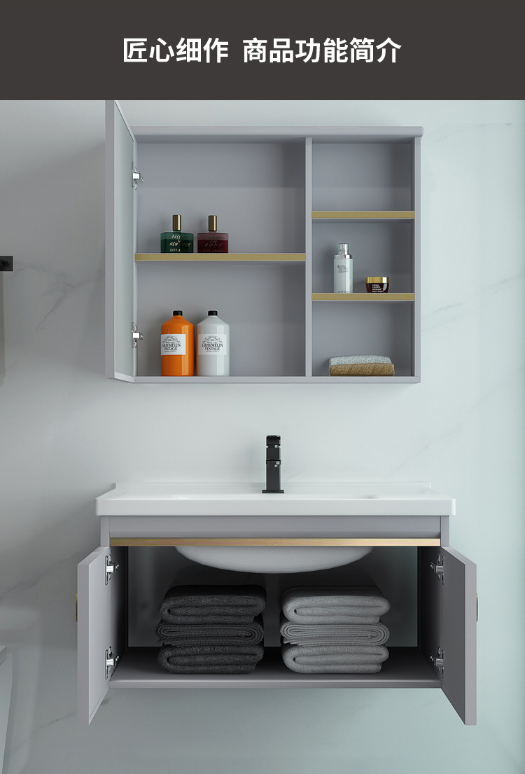 Mueble de baño de aluminio espacial combinación Placa de roca lavabo completo gabinete de aluminio baño colgante gabinete espejo gabinete de aleación de aluminio
