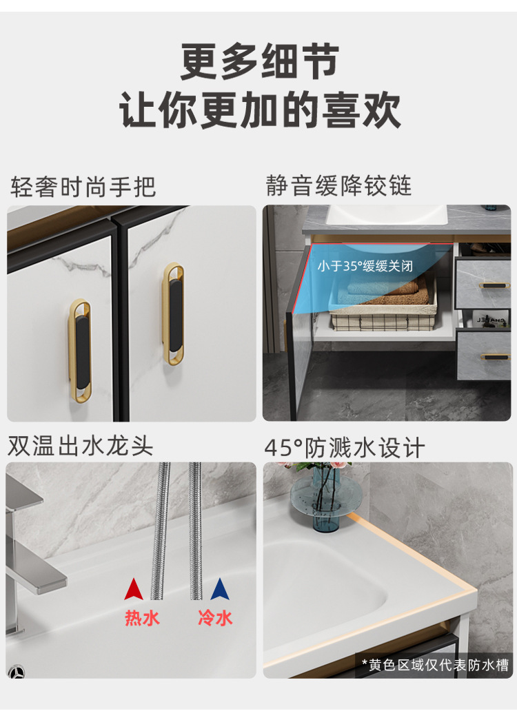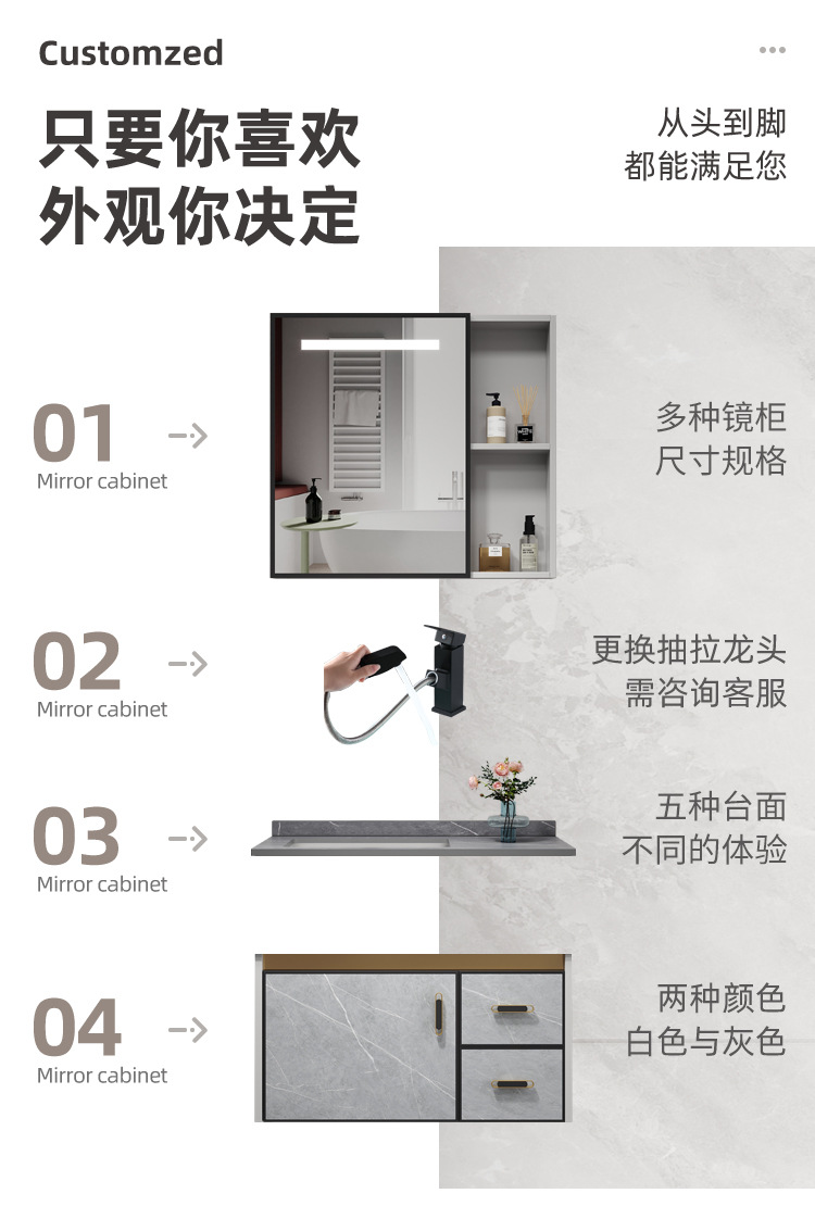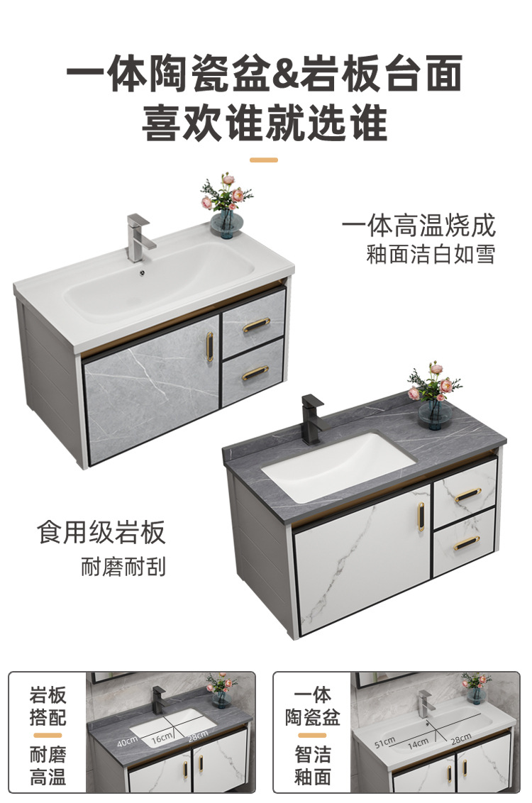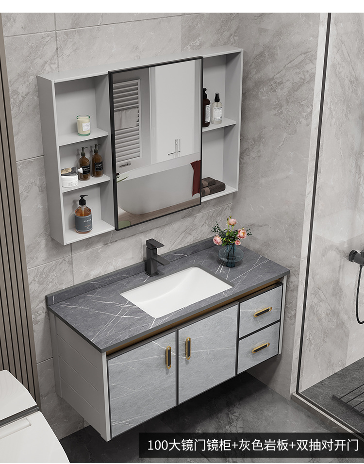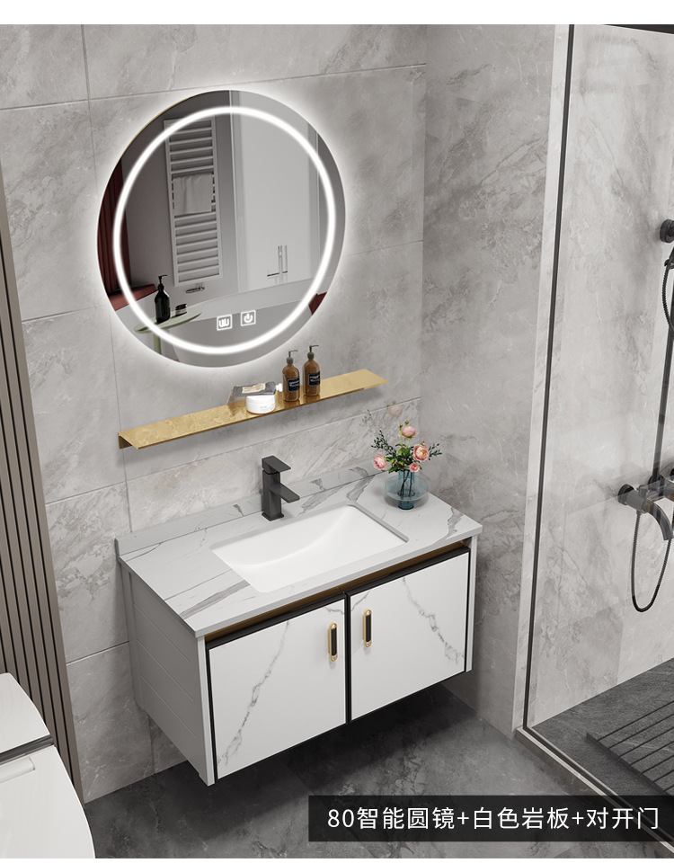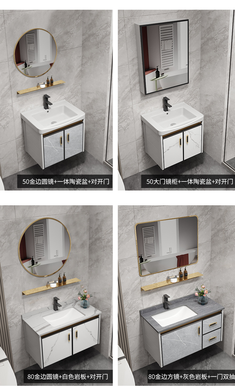 Mueble de baño de aluminio espacio moderno baño minimalista lavabo integrado lavabo de cerámica combinación de gabinete