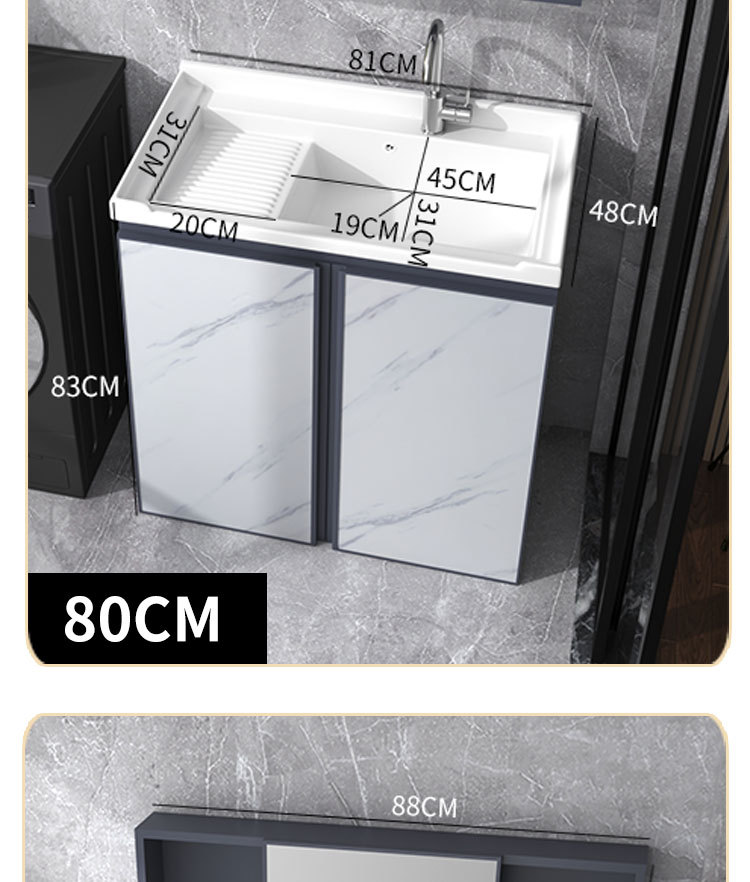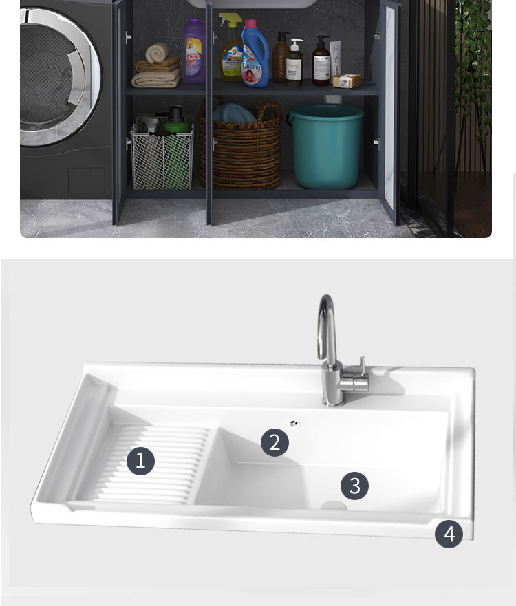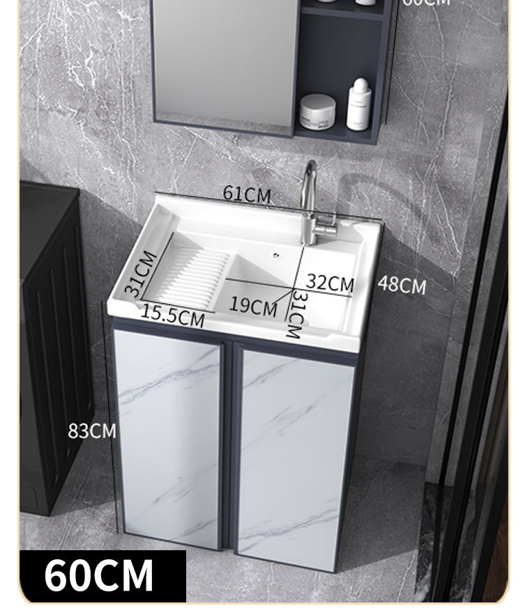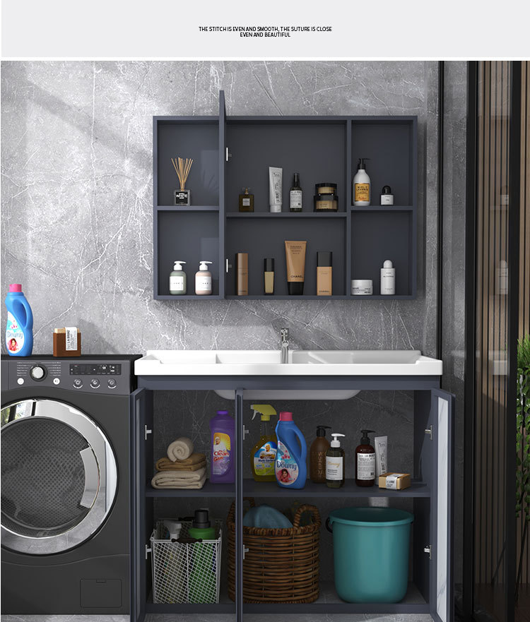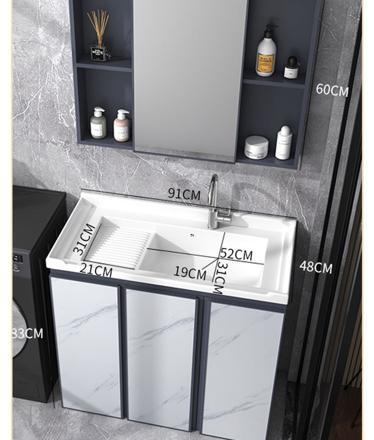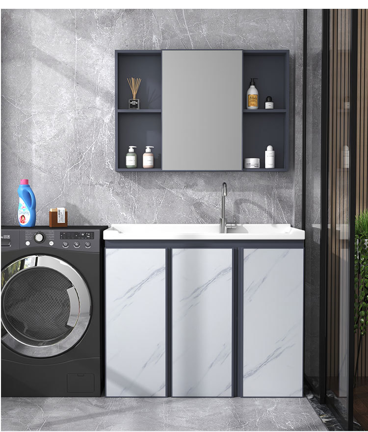 Armario de lavado de aluminio espacio gabinete de piso al aire libre Lavado de Manos cuenca integrada balcón piscina de lavado con lavabo de cerámica lavabo