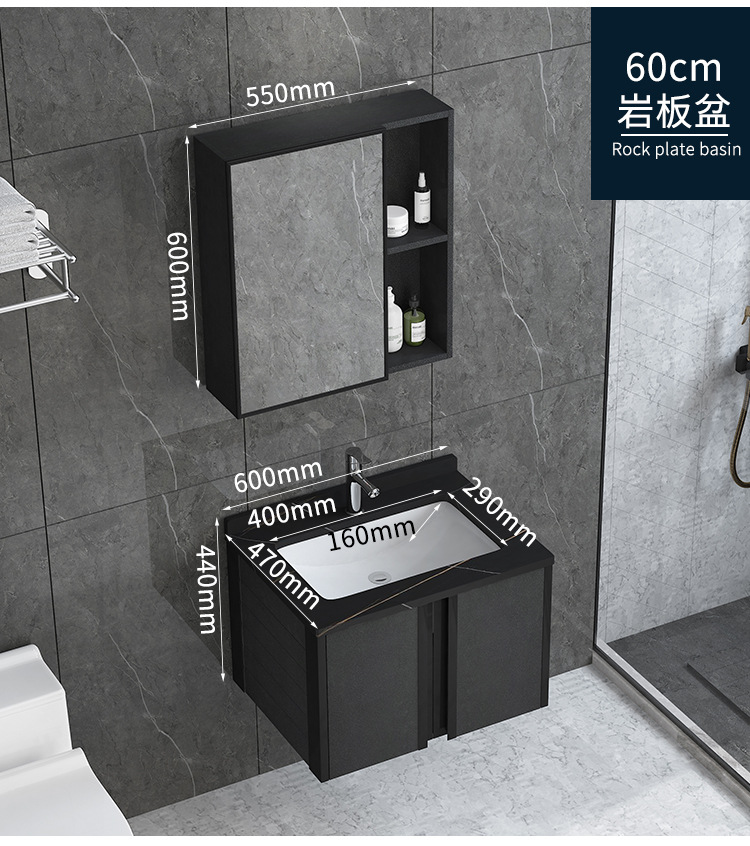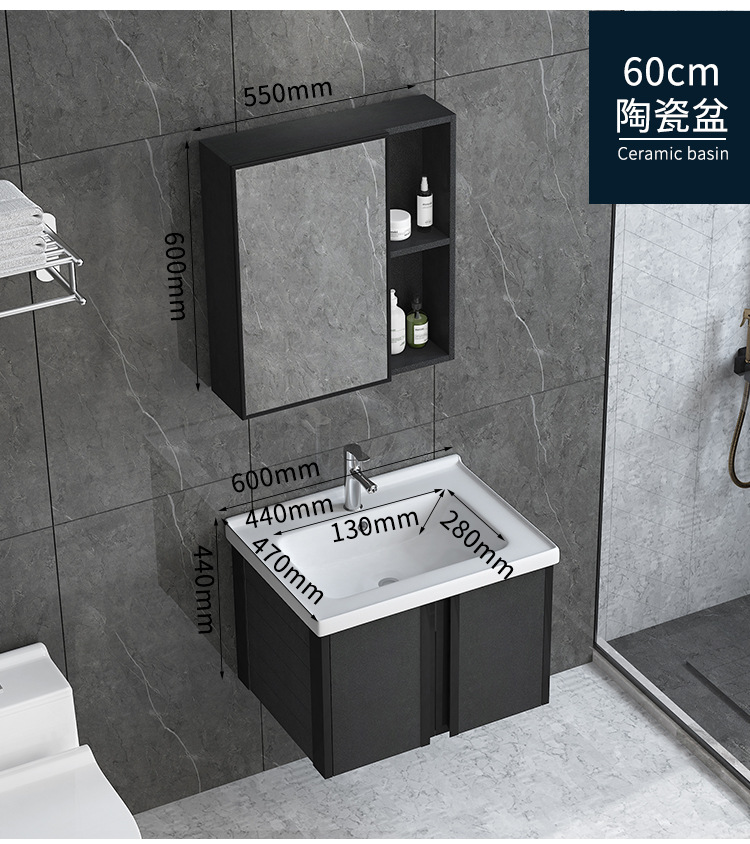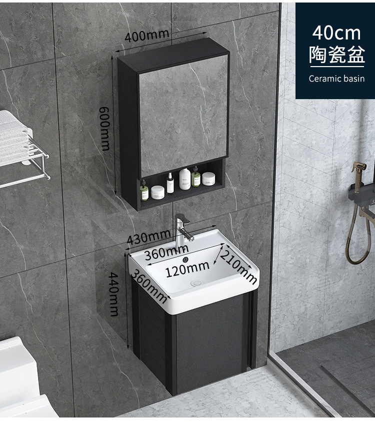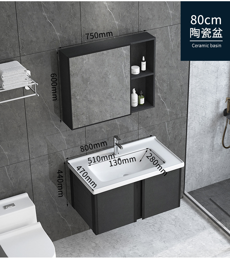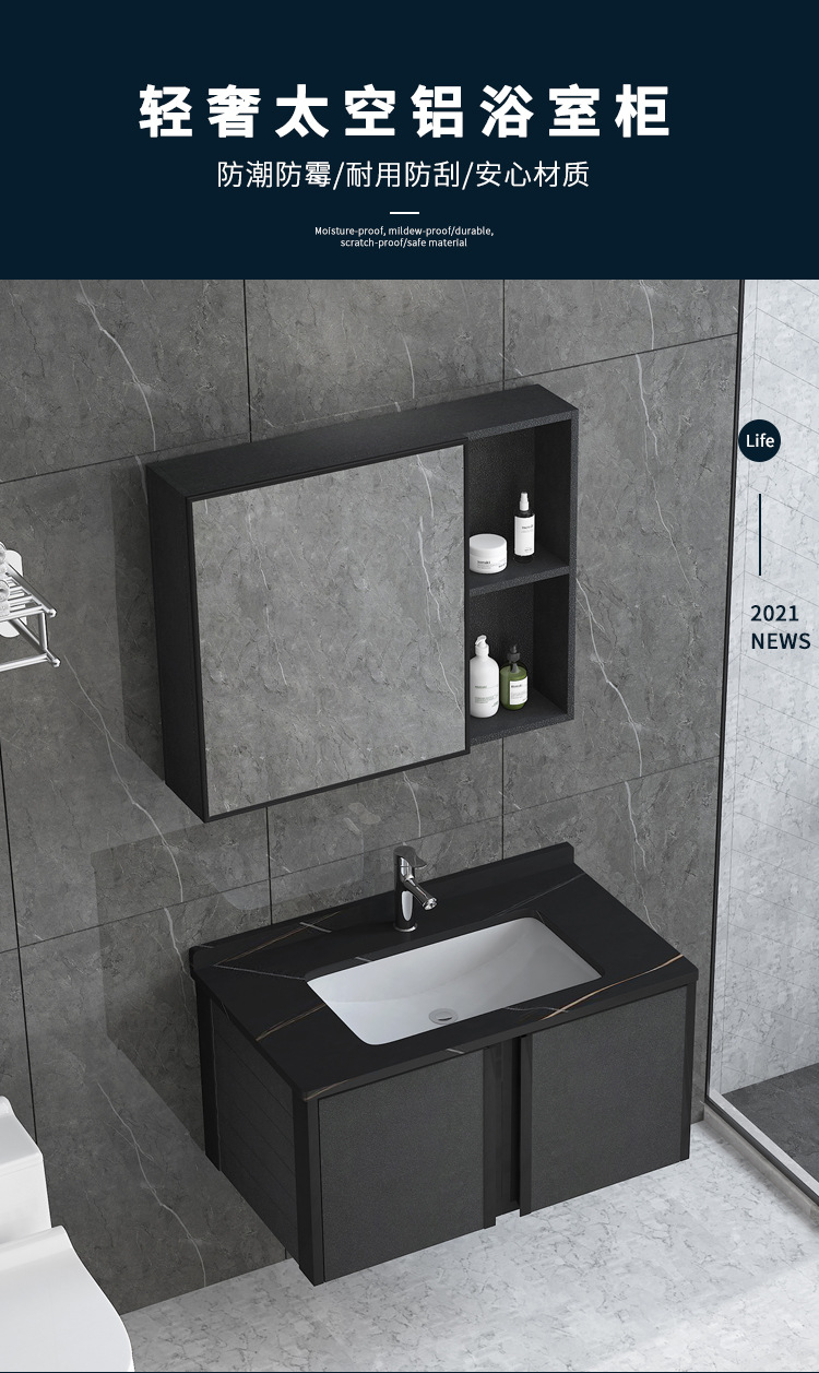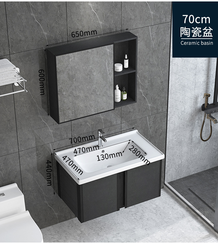 Gabinete de baño de aluminio espacio combinación moderno simple pequeño apartamento cuarto de baño lavabo espejo gabinete