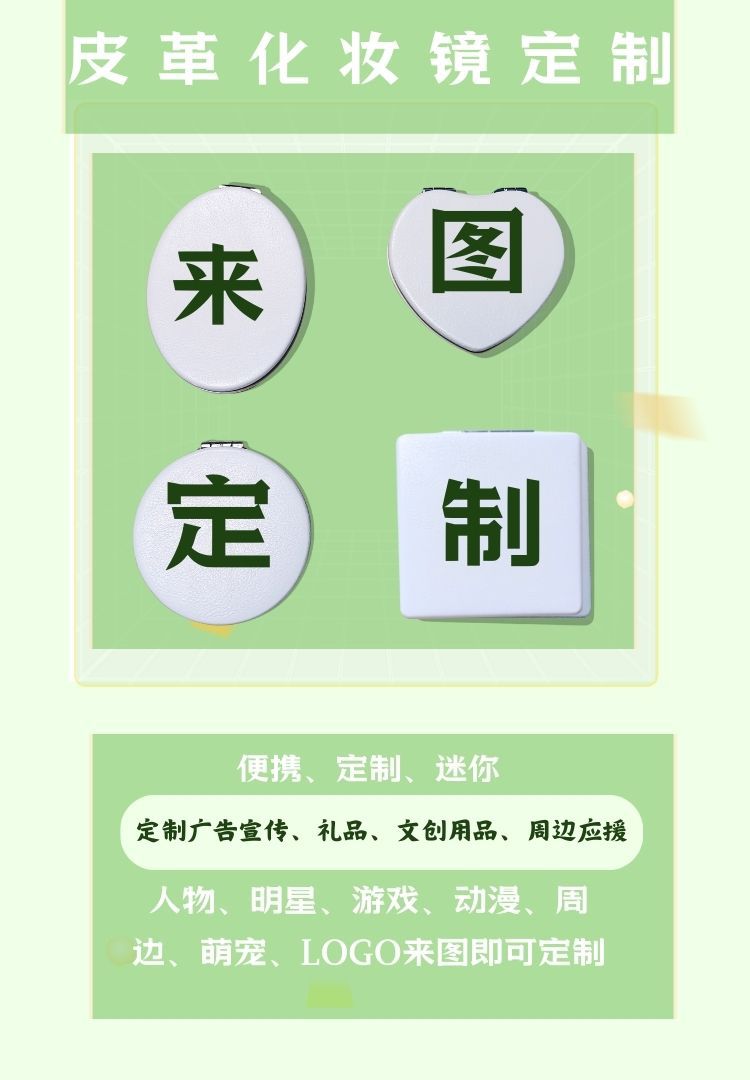 Espejo de maquillaje de cuero personalizado plegable portátil de doble cara mini pequeño espejo personalizado logotipo de dibujos animados alrededor del regalo
