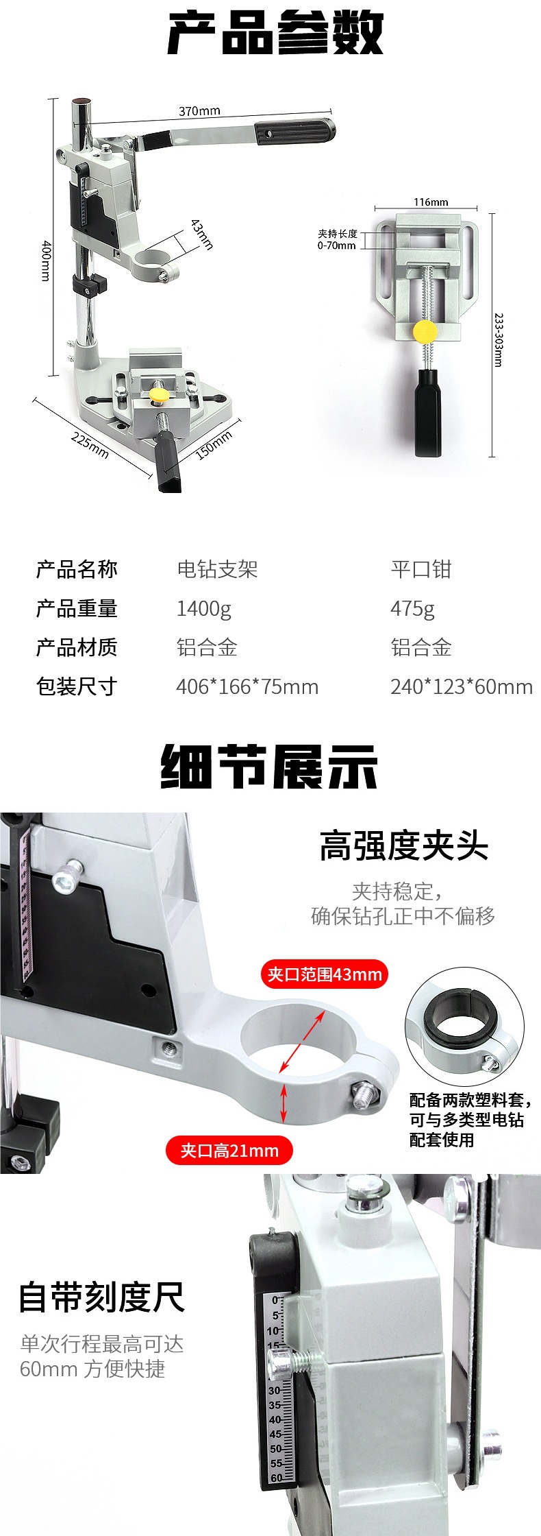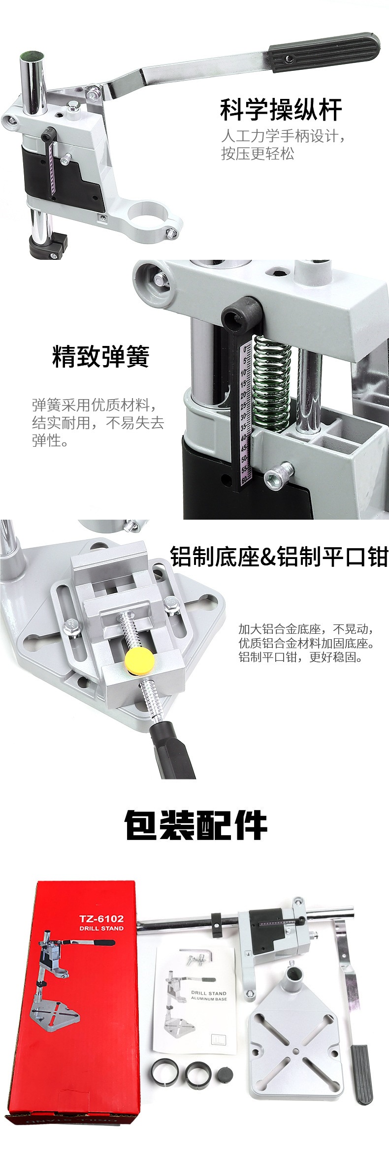 | Modelo | 1105 (suporte de taladro eléctrico), 1033 (alicates de boca plana), 88638 (tamaño de soporte), 88647 (base de hierro fundido), 88709 (aleación de aluminio de 50 cm de doble agujero) |