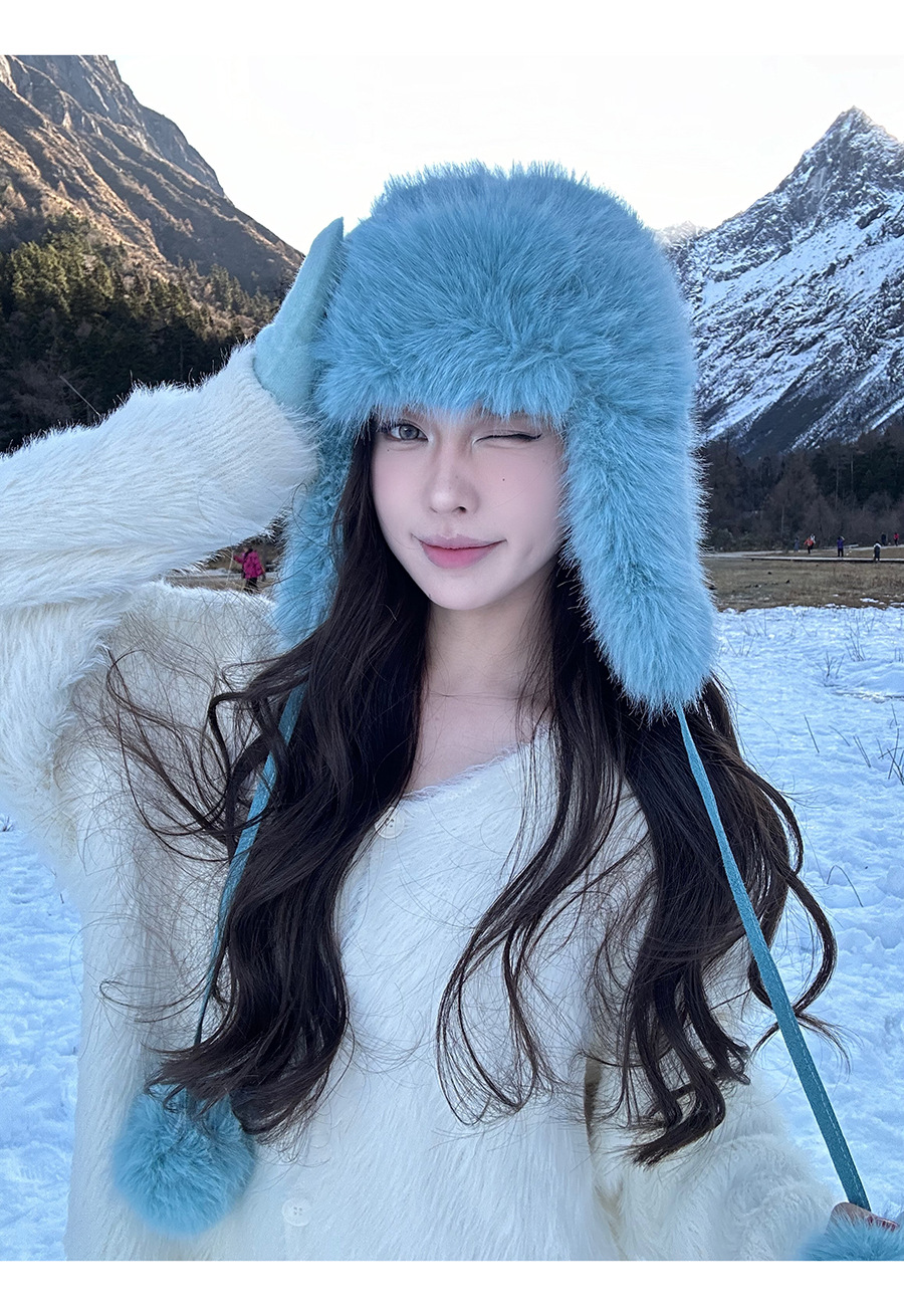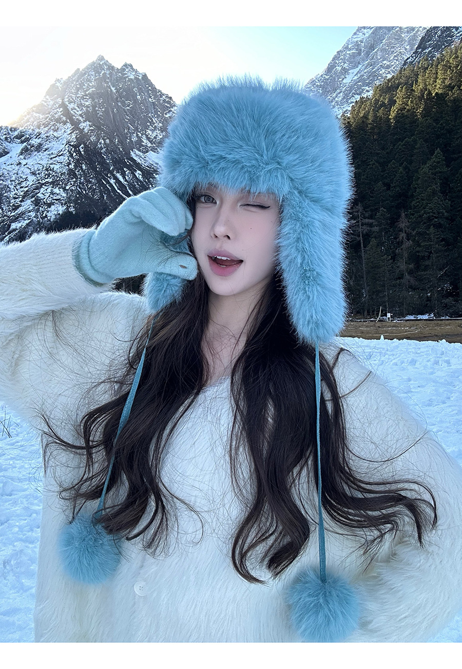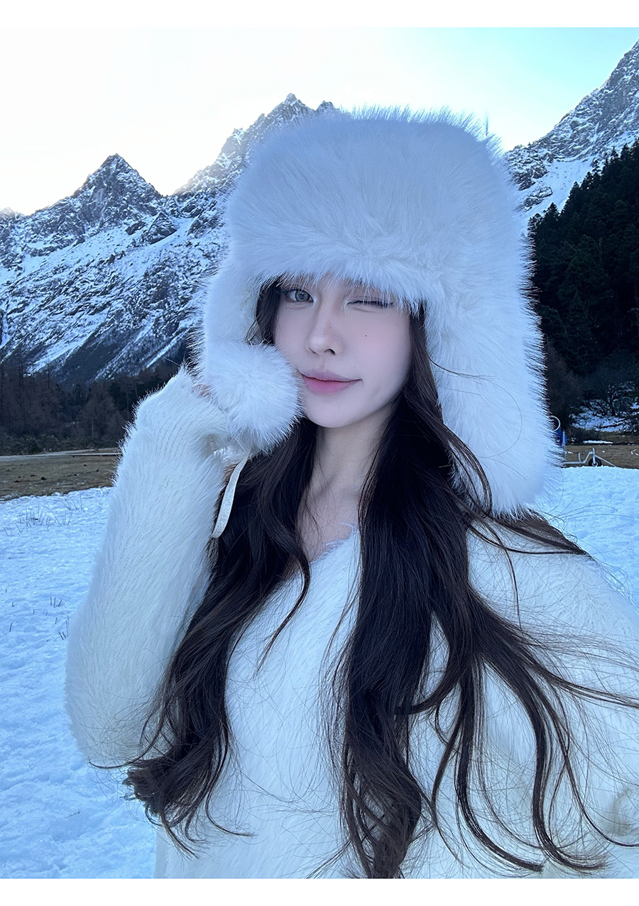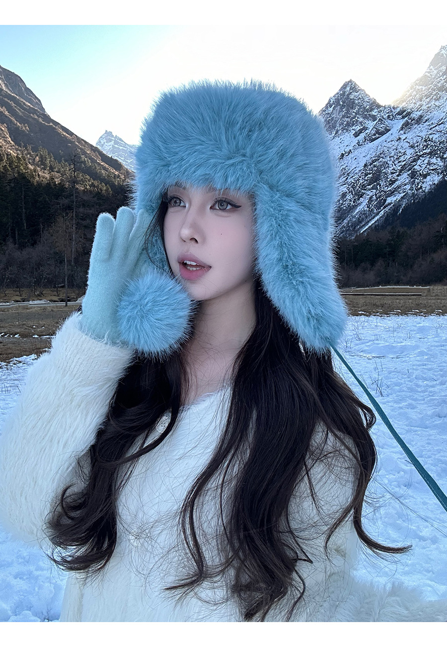 La sensación de la atmósfera es más gruesa, sombrero de pelusa de visón, sombrero de invierno caliente para mujeres, sombrero de esquí de bicicleta del noreste.