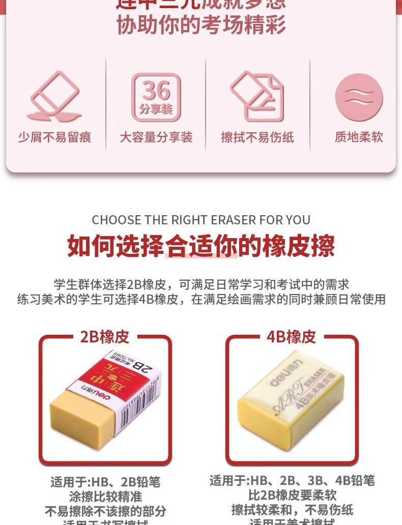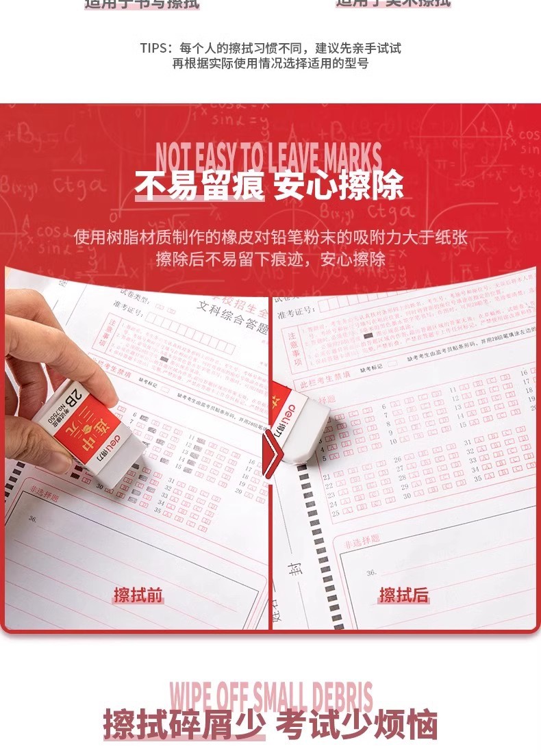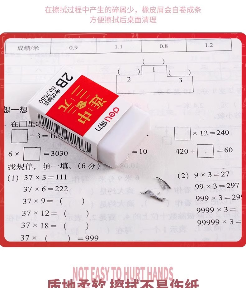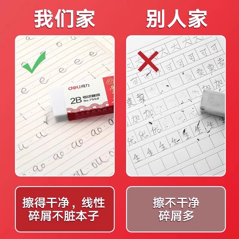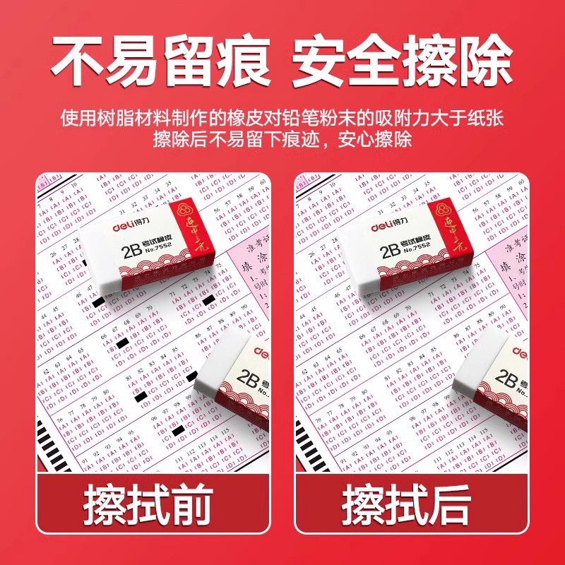 Dely Eraser 2B caucho especial para estudiantes de escuela primaria sin marcas limpio sin escombros exámenes de goma de tarjeta de pintura