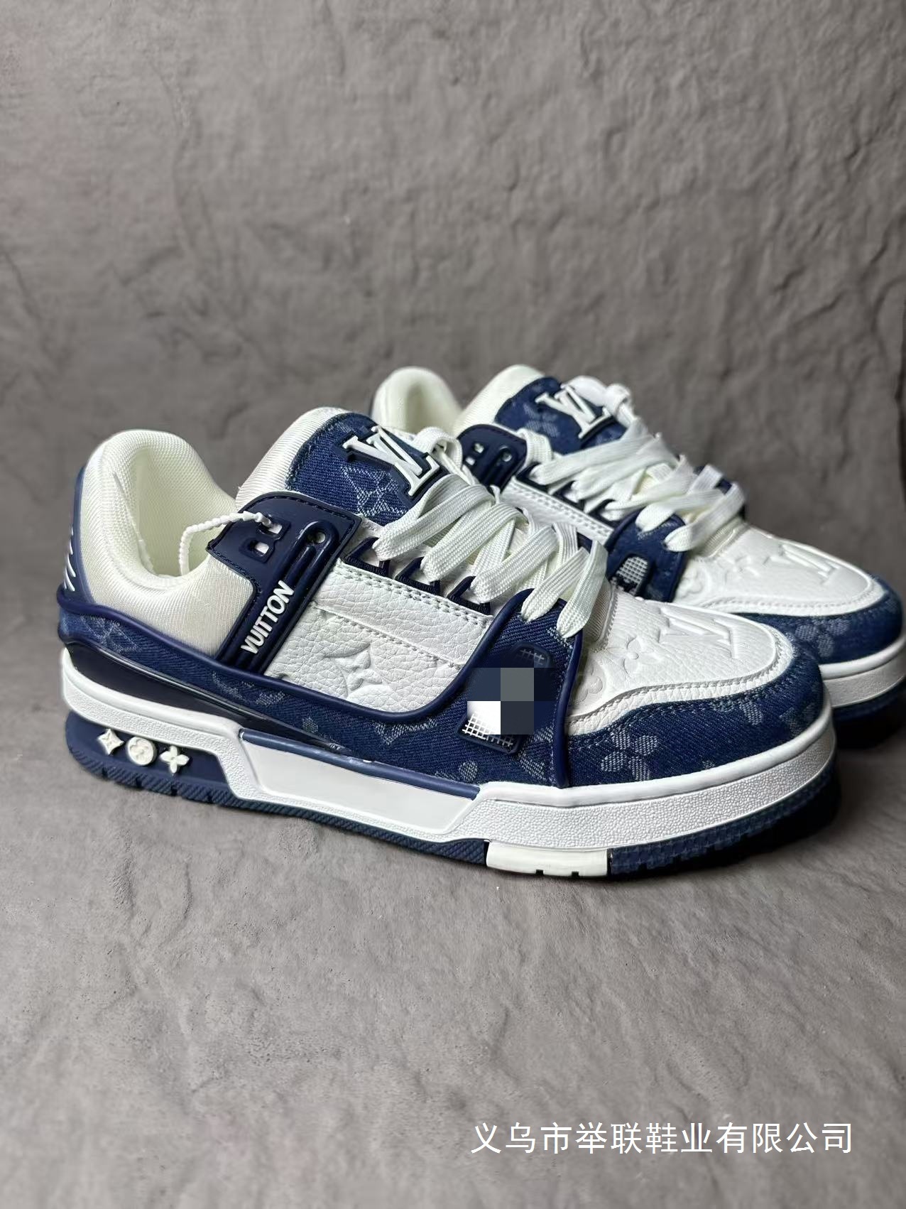 Spot comercio exterior transfronterizo burro entrenador blanco cemento vaqueros azul moda deportiva casual pareja hombre y mujer skate