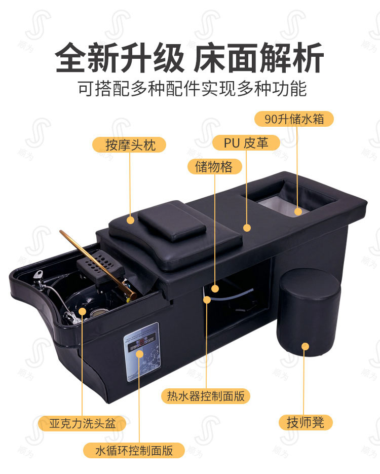 Circulación de agua tailandesa cama de lavado de cabello barbería salón de cabello reclinado especial fumigación temperatura constante fábrica de cama de tratamiento de cabello al por mayor transfronterizo