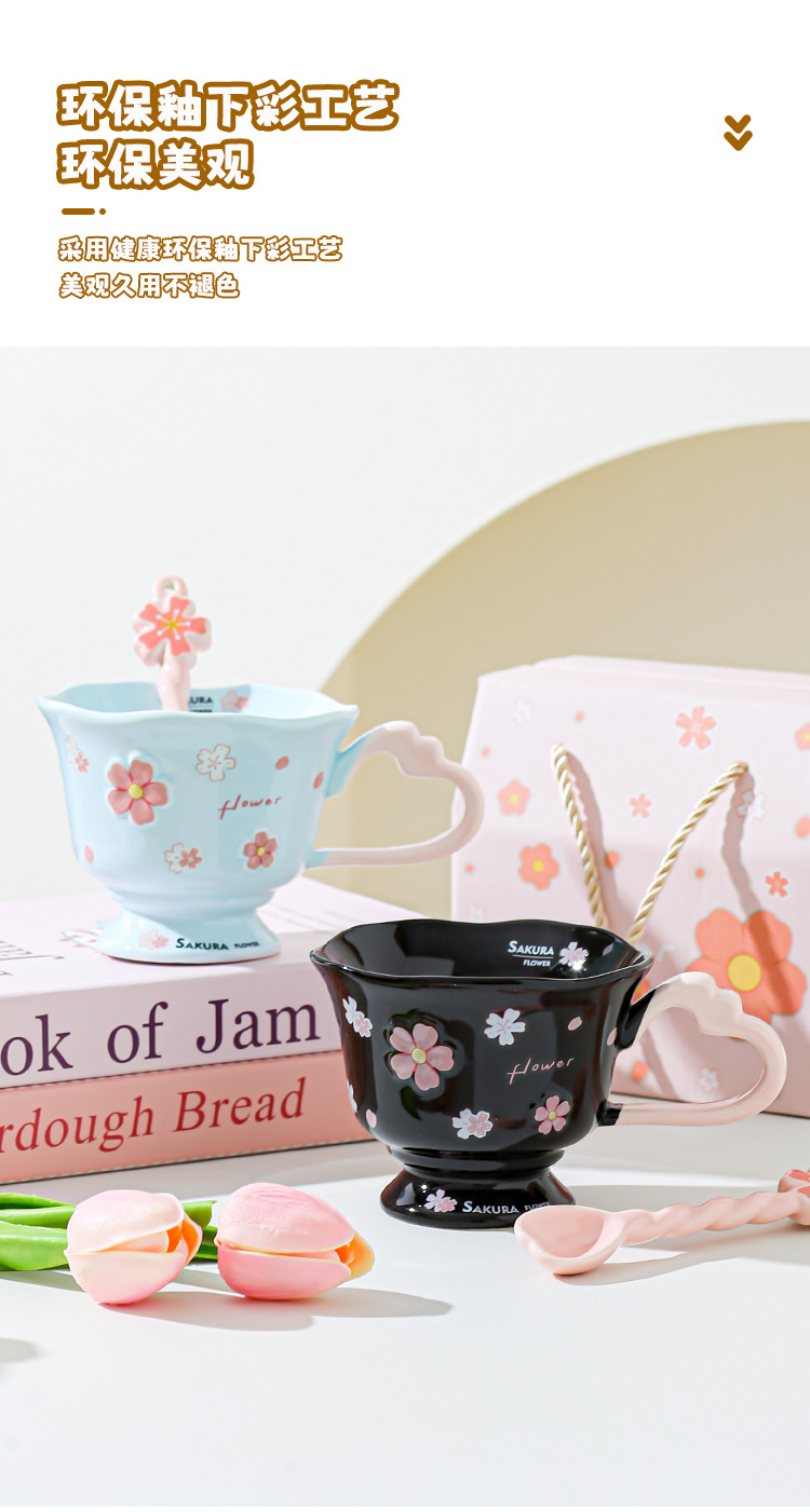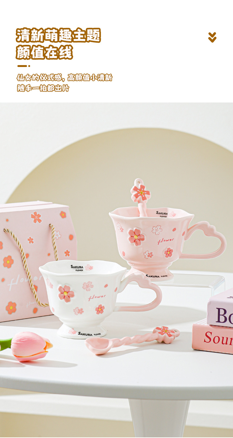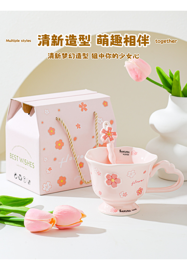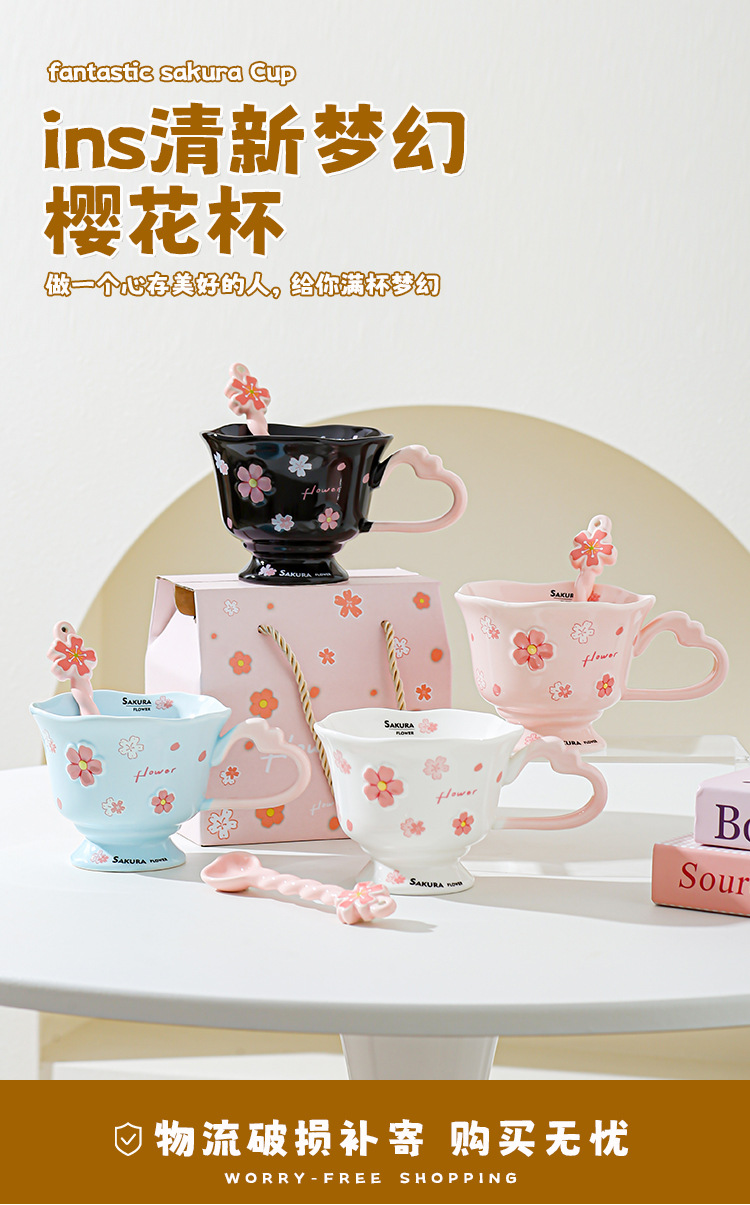 Tazas de cerezo de alto valor de cara, tazas de cerámica de oficina, tazas de agua, tazas de desayuno, tazas elegantes en línea