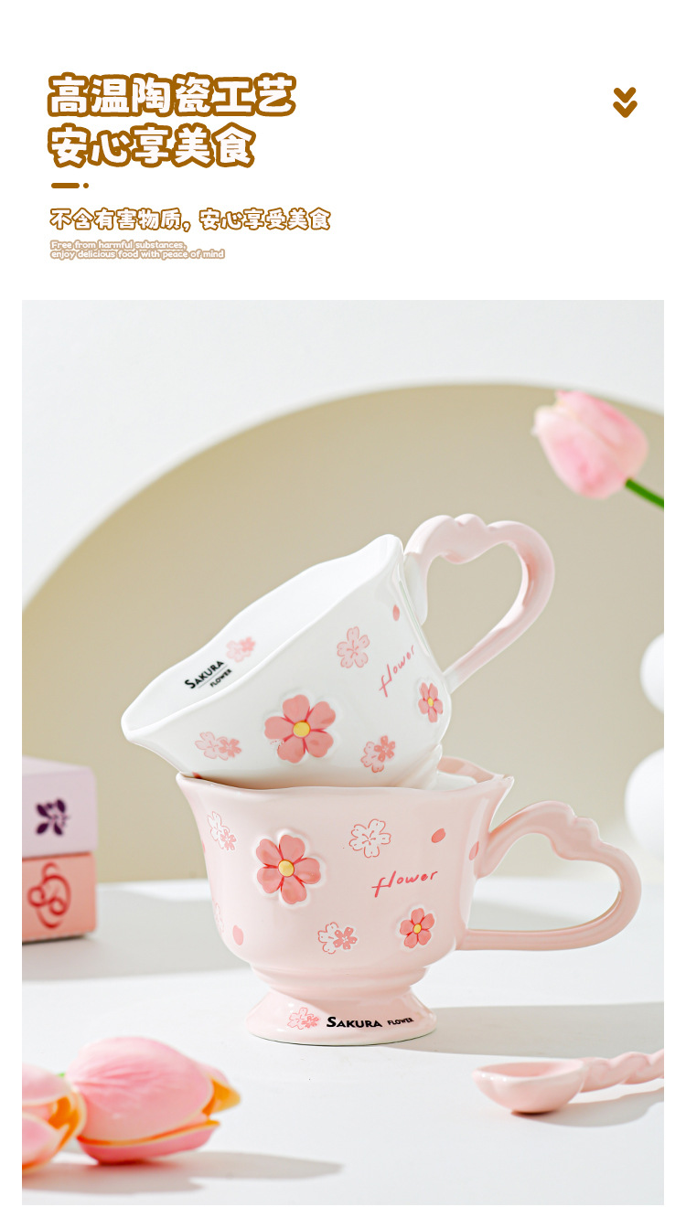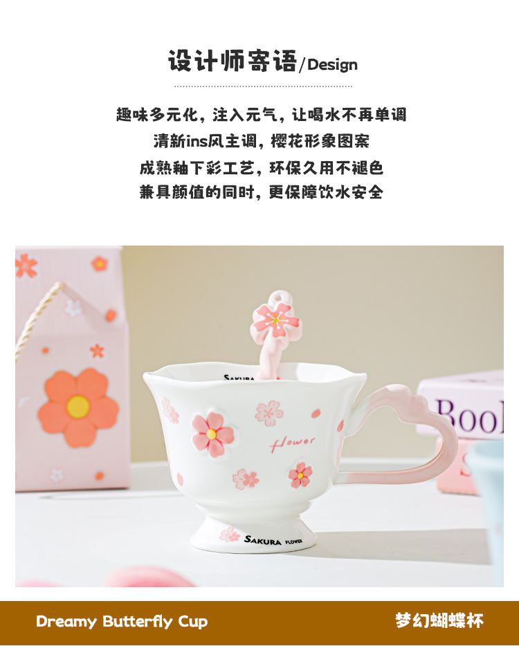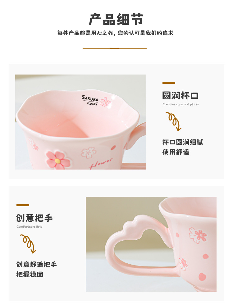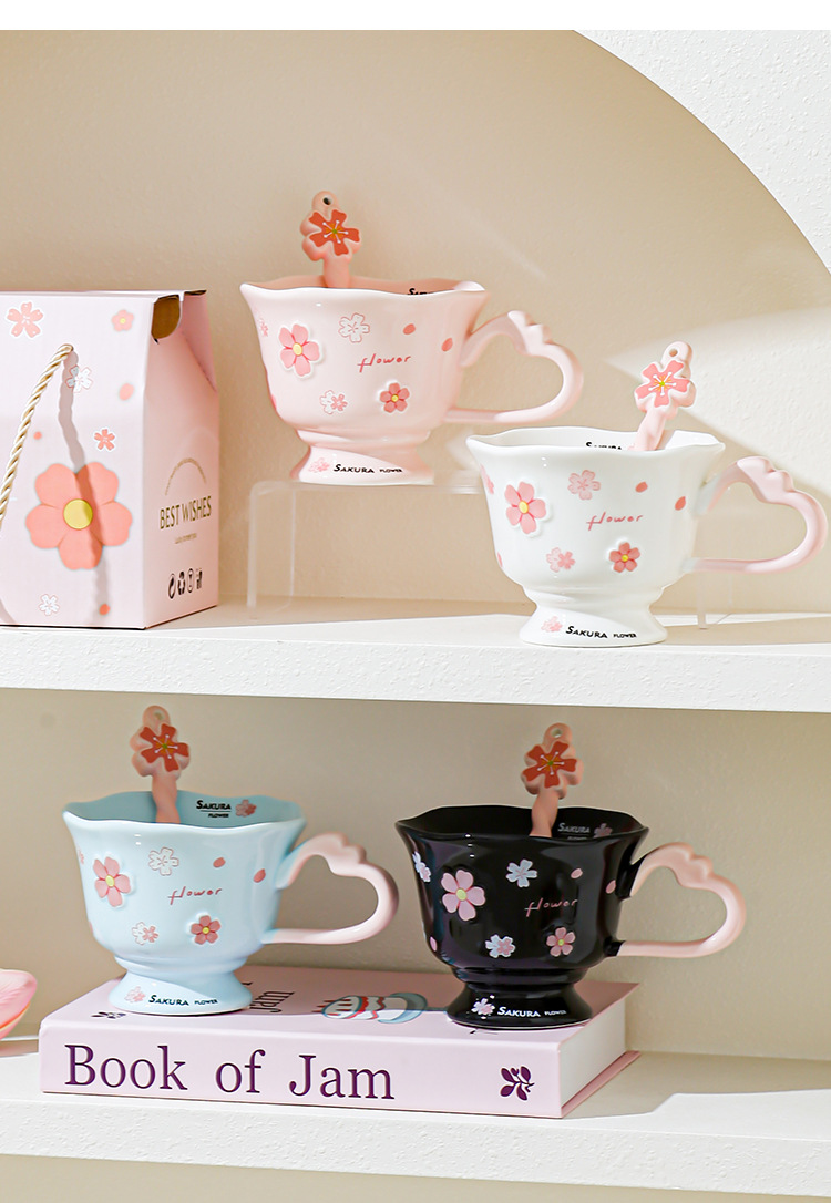 Tazas de cerezo de alto valor de cara, tazas de cerámica de oficina, tazas de agua, tazas de desayuno, tazas elegantes en línea