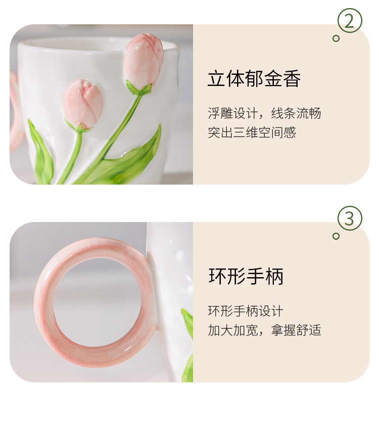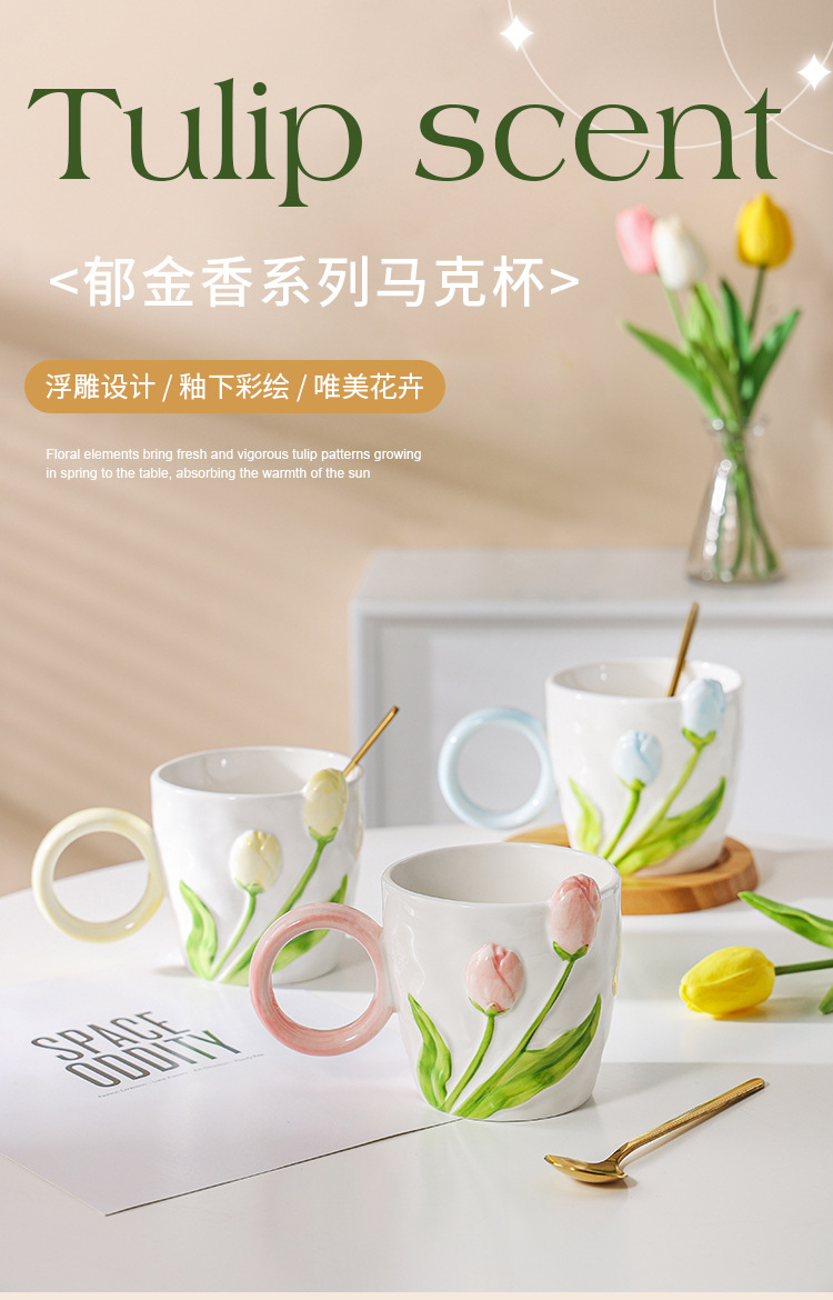 Tulipán Taza de cerámica Nordic regalo Taza chica Oficina taza de agua taza de té taza de café con cuchara taza de desayuno