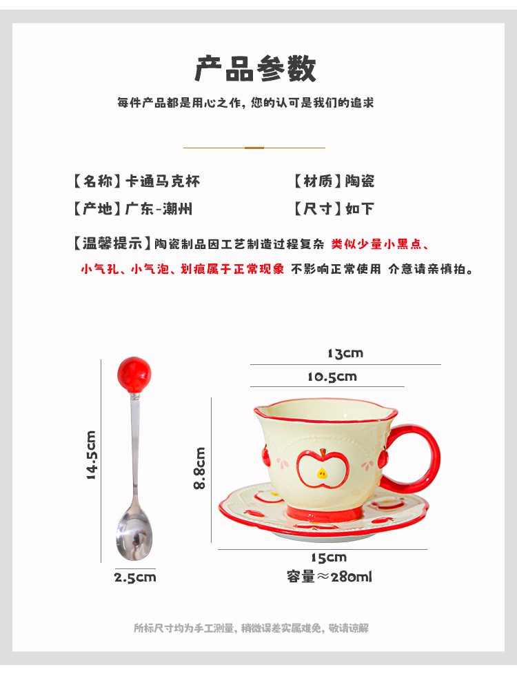 | Color | Taza de manzana roja y plato sin cucharada (caja de color), taza de manzana verde y plato sin cucharada (caja de color), taza de manzana roja y plato sin cucharada (caja de color) + bolso de mano, taza de manzana verde y plato sin cucharada (caja de color) + bolso de mano, taza de manzana verde y plato sin cucharada (caja de color) + bolso de mano, taza de manzana roja y plato con cucharada (caja de color), taza de manzana verde y plato con cucharada (caja de color), taza de manzana roja y plato con cucharada (caja de color) + bolso de mano, taza de manzana verde y plato con cucharada (caja de color) + bolso, Taza de manzana verde con un par de cucharas (caja de colores) + bolso de mano |