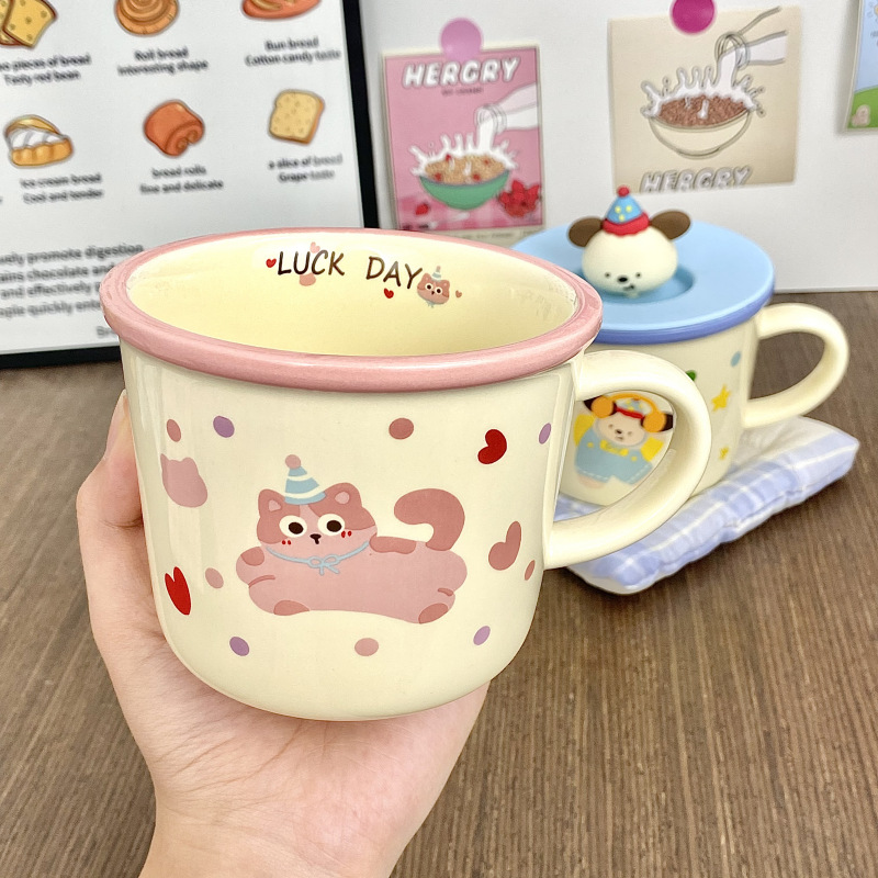 Ins adorable perro taza de cerámica de alto valor de visualización copas de agua regalo de cumpleaños copas de regalo de oficina