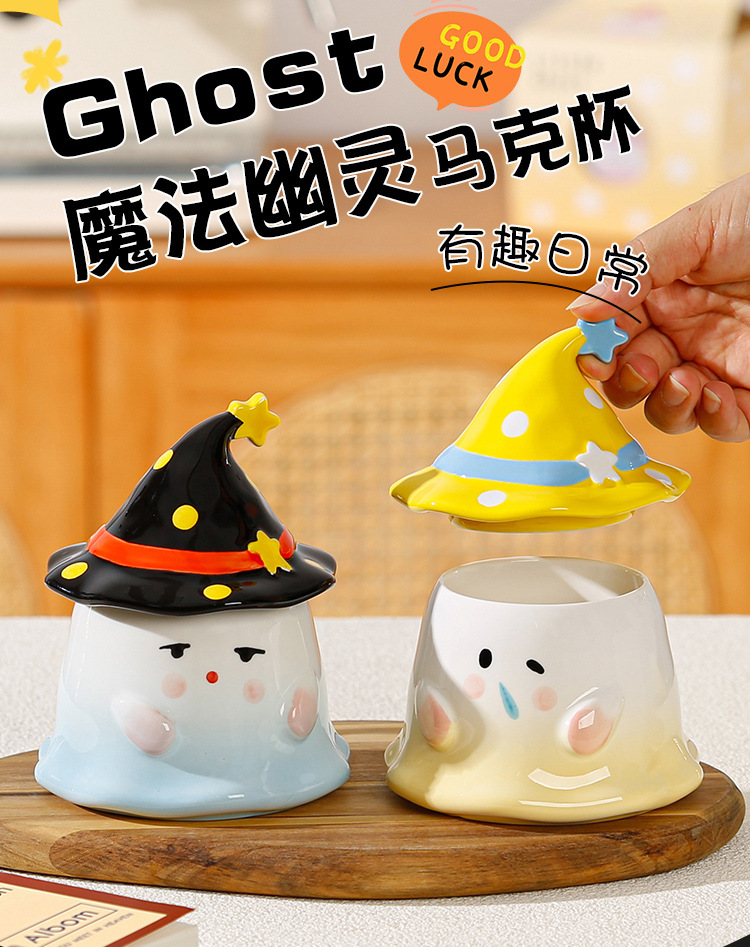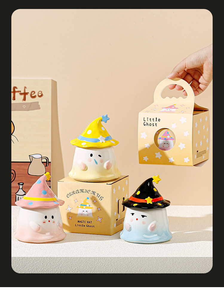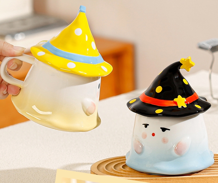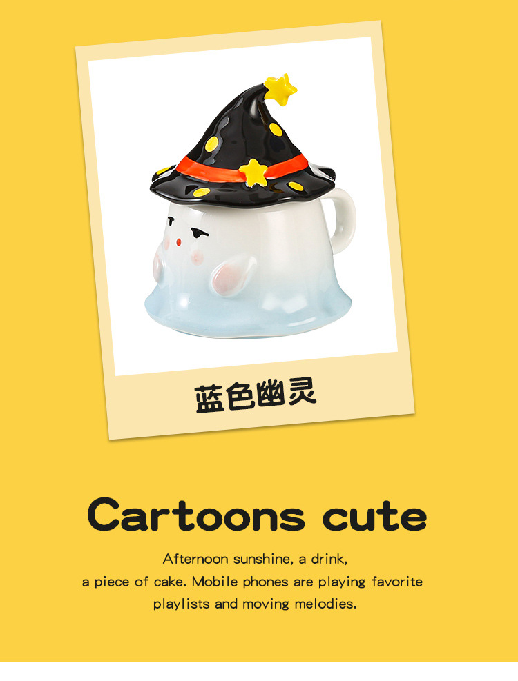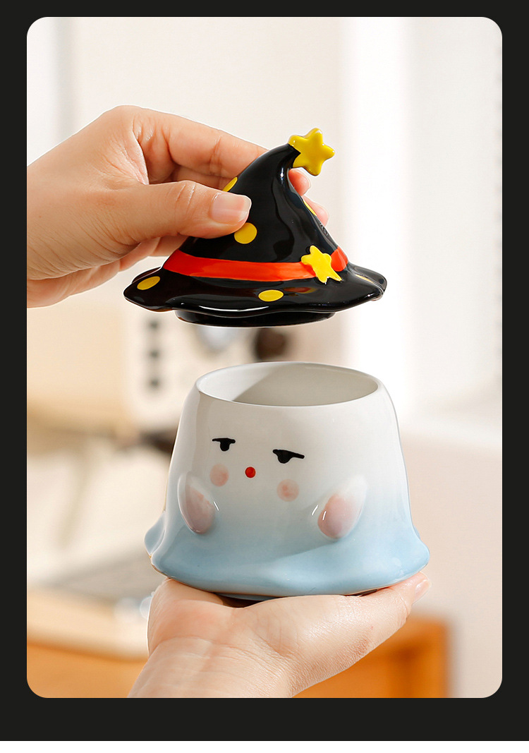 Copas lindas de alto valor de la cara taza de agua con tapa de regalo de cumpleaños para chicas taza de cerámica fantasma para hombres Halloween