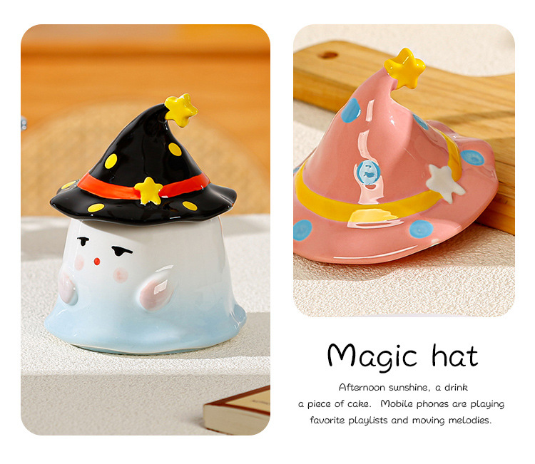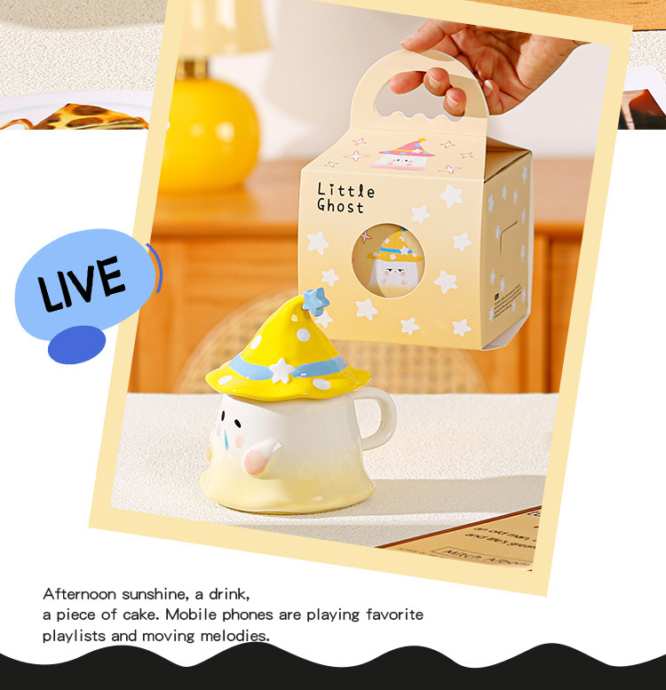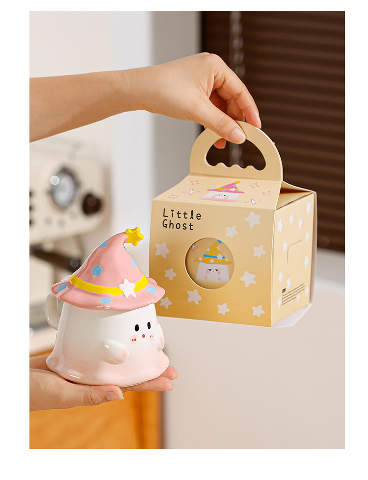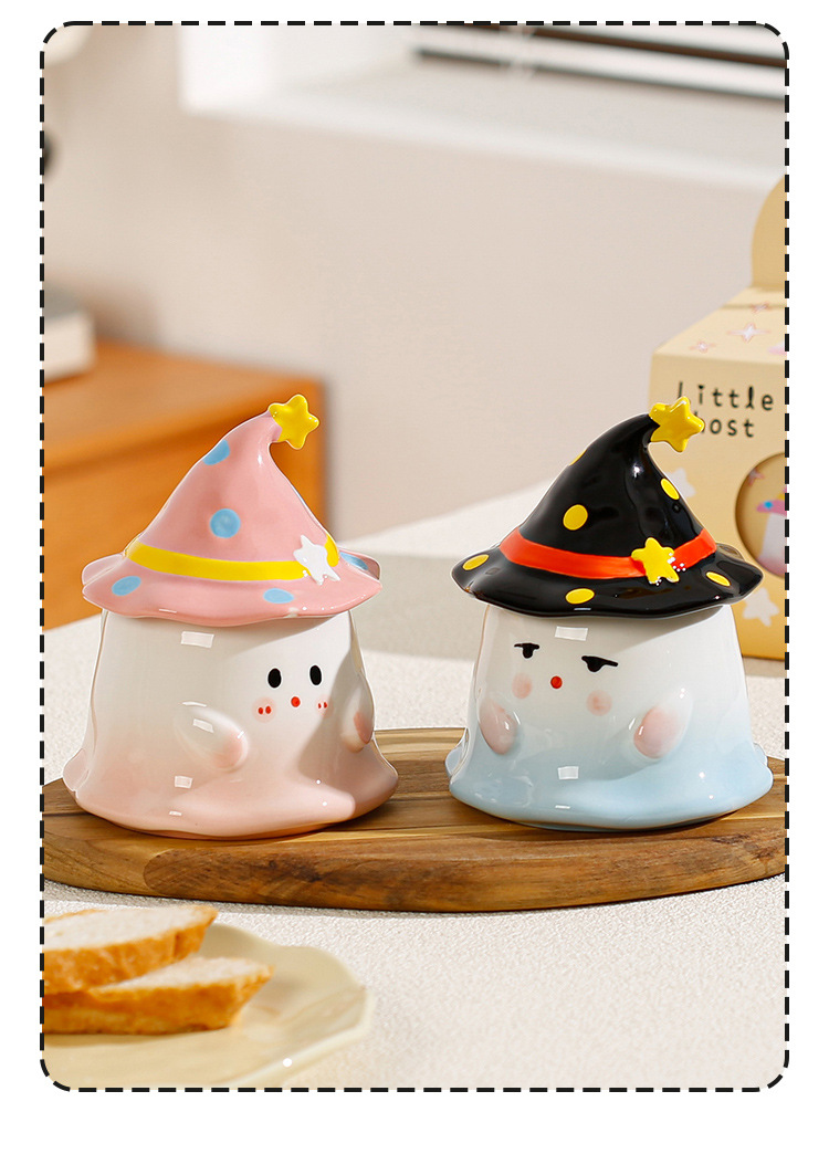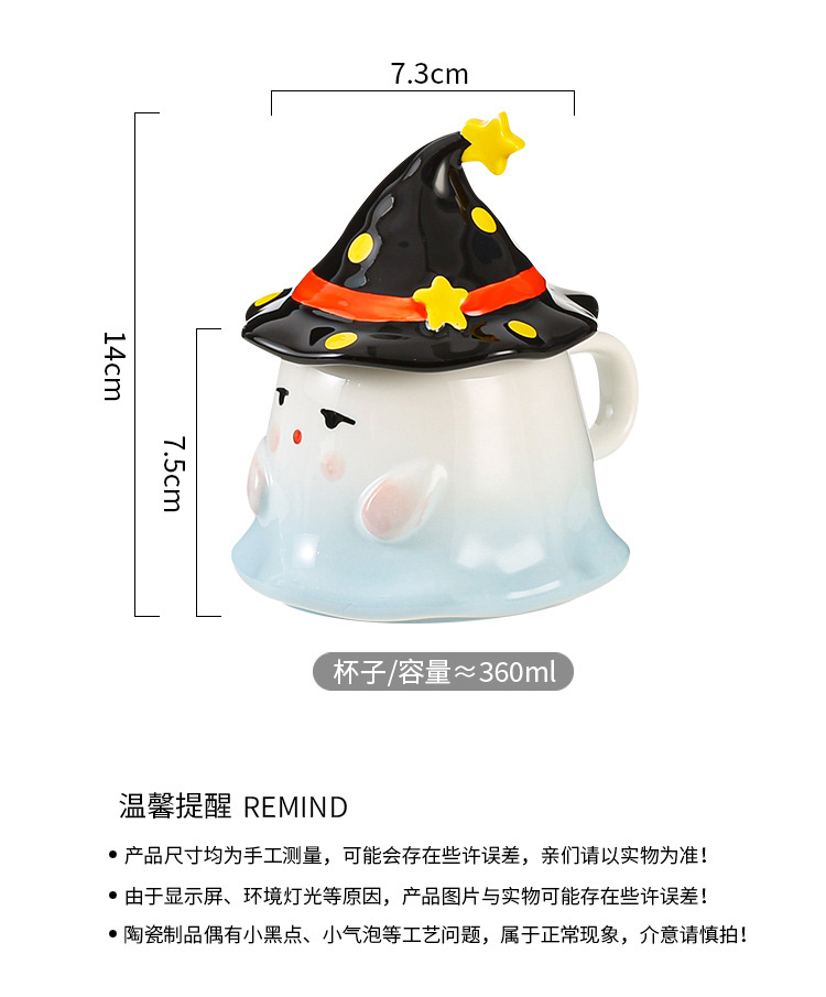 Copas lindas de alto valor de la cara taza de agua con tapa de regalo de cumpleaños para chicas taza de cerámica fantasma para hombres Halloween