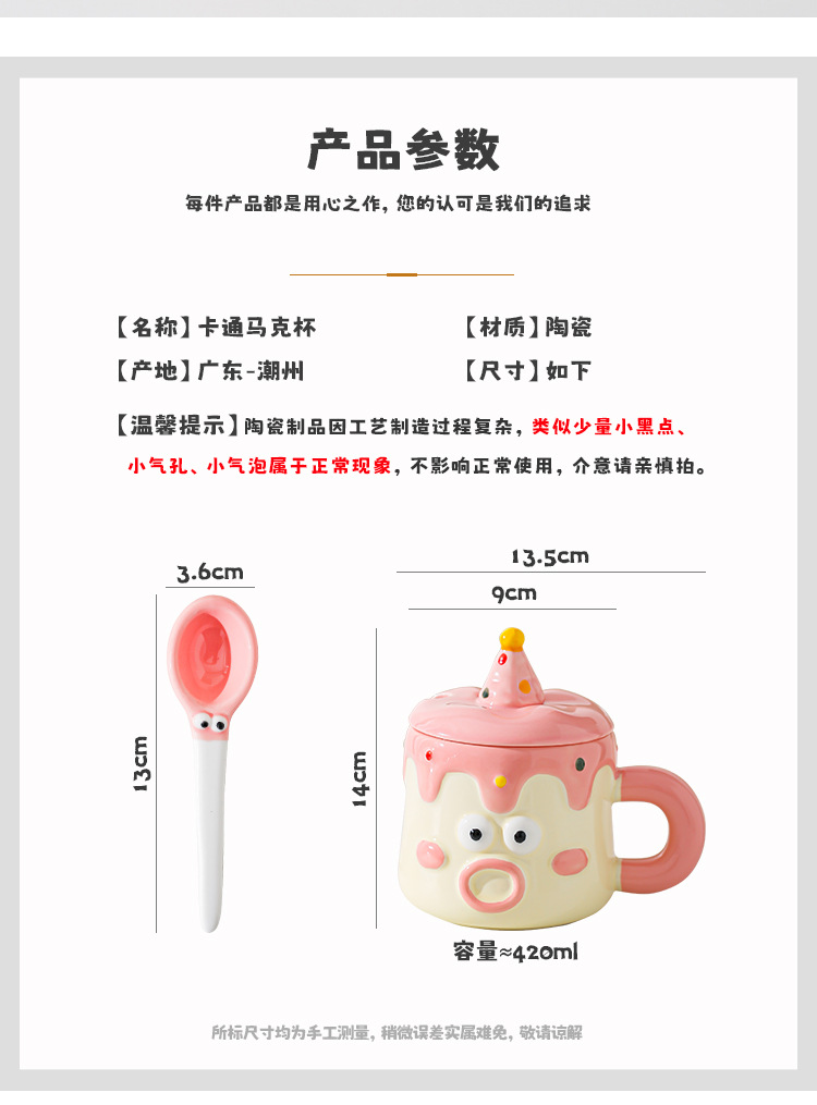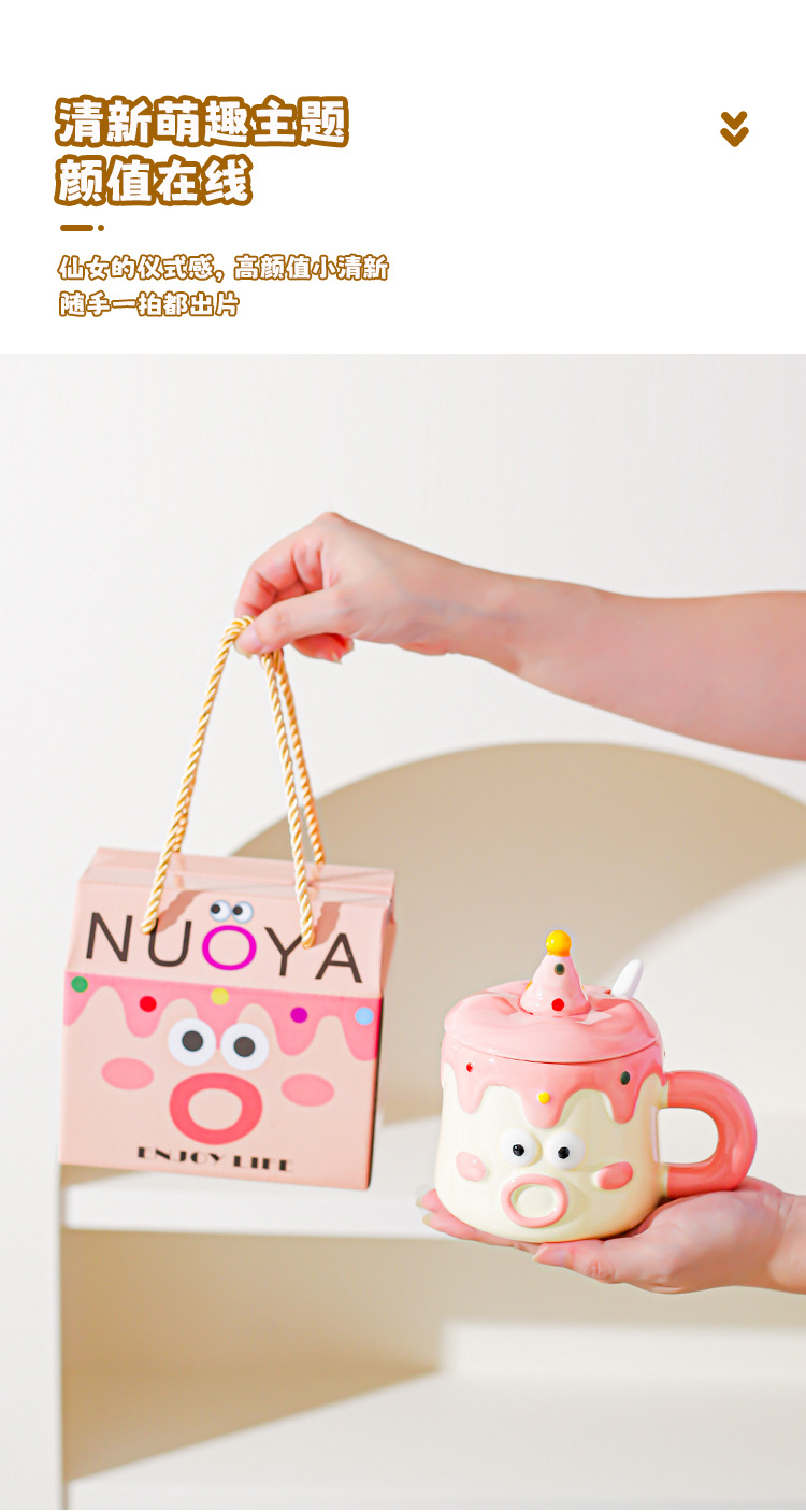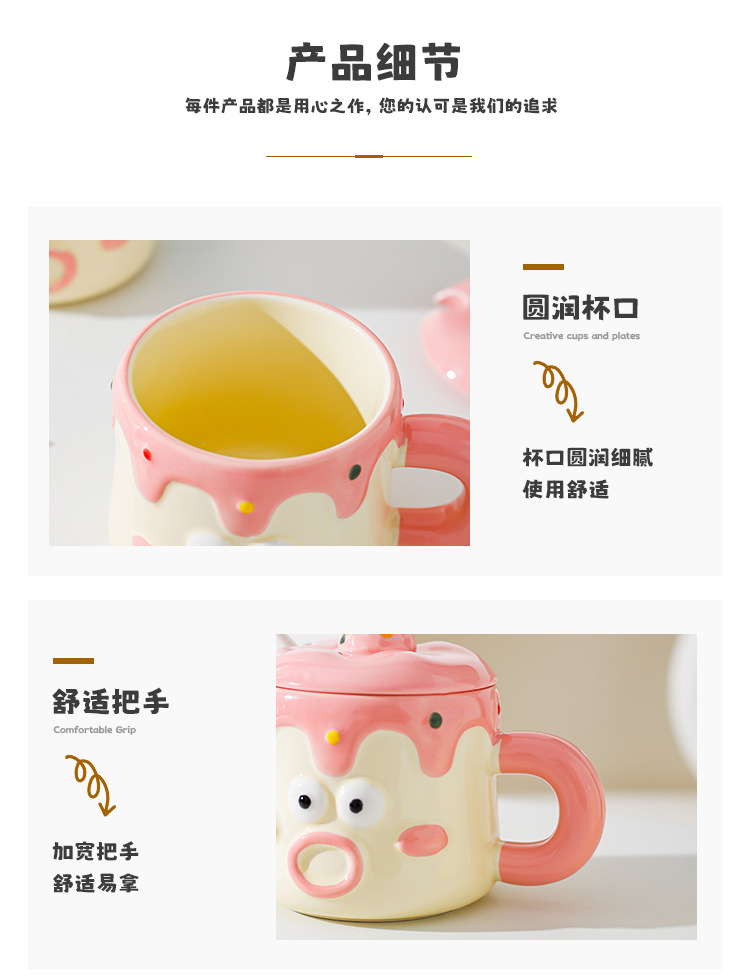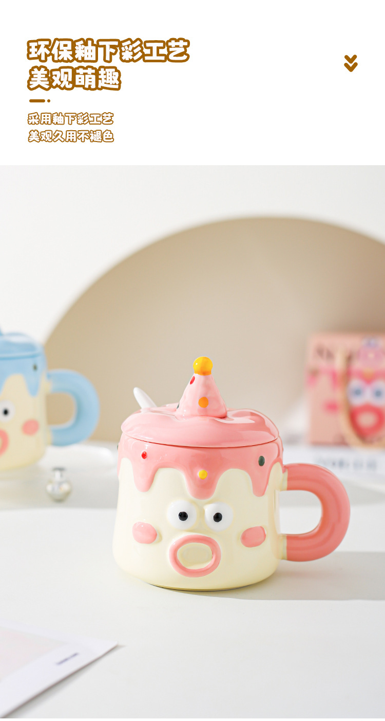 Tazas de dibujos animados pintadas a mano con cubierta de cuchara pareja taza de agua extraña taza de regalo de emoticon casera taza de desayuno de leche