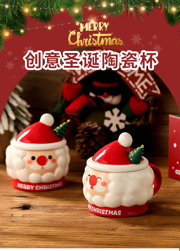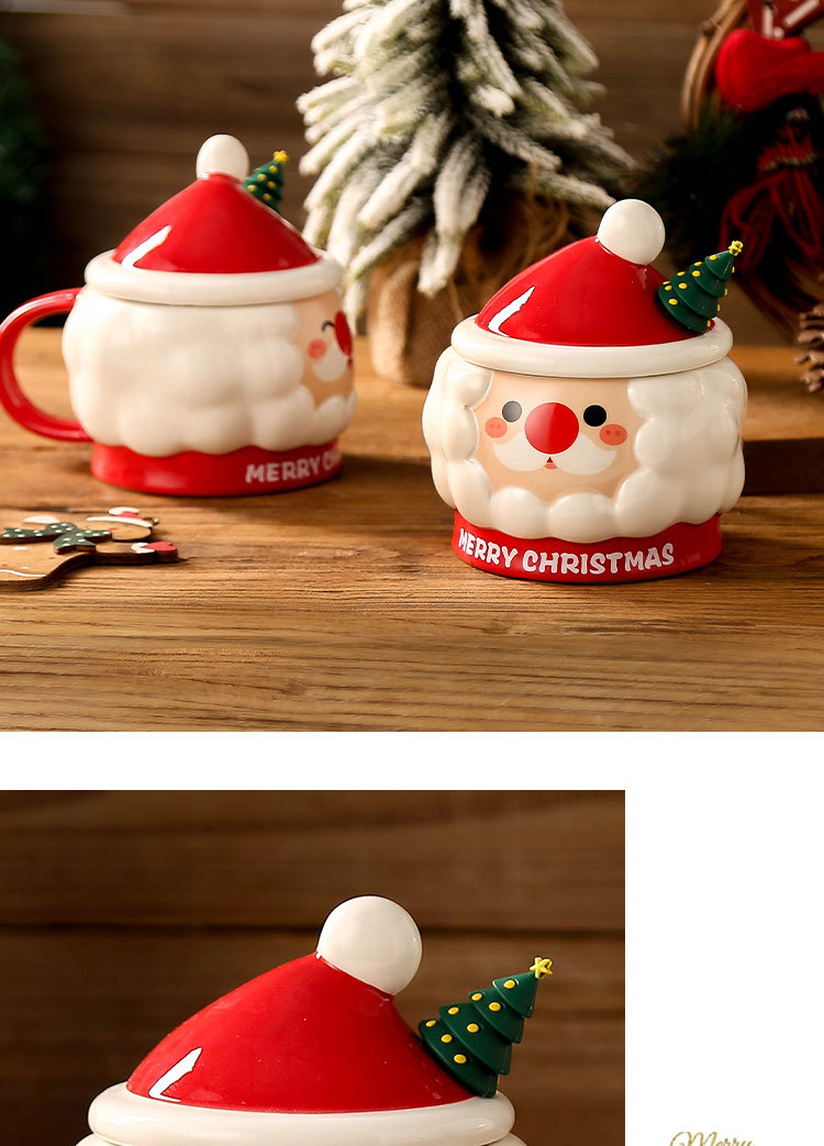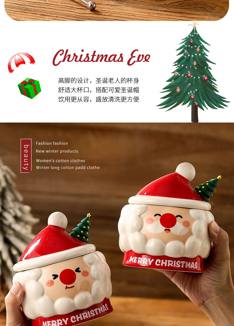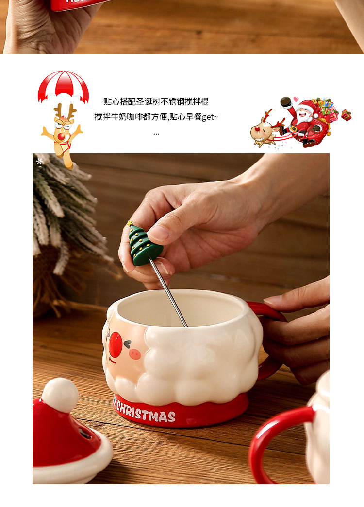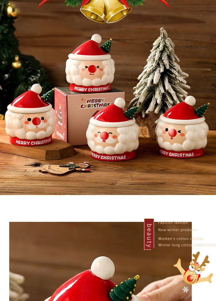 Taza de Navidad creativa taza de Navidad Santa Claus con tapa cuchara taza de regalo taza de regalo pintada a mano