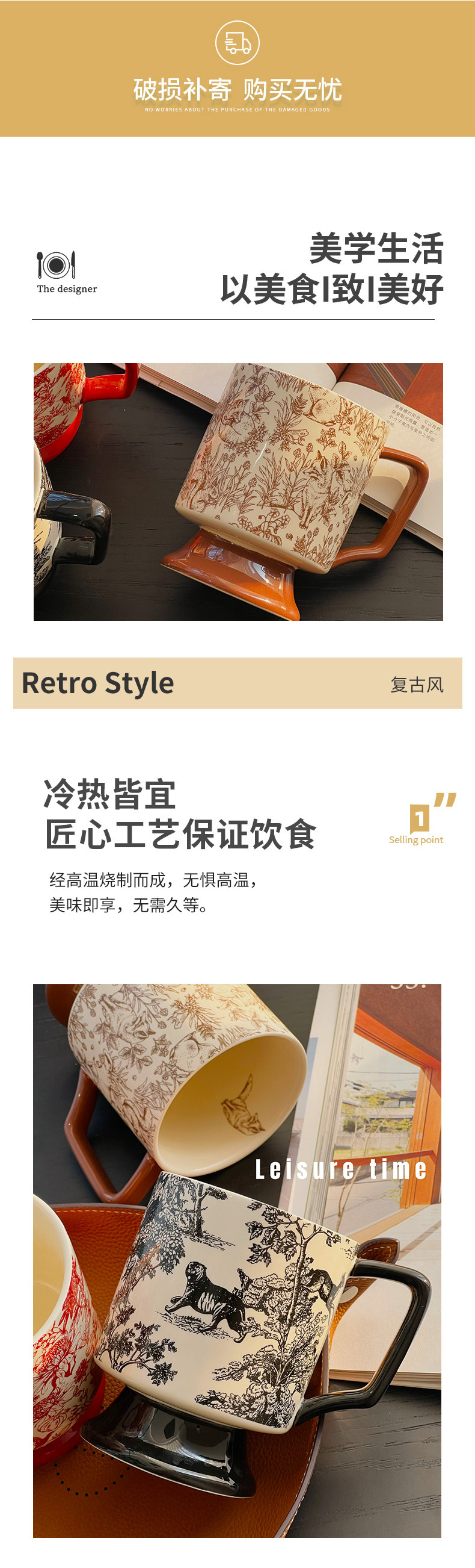 SUREON Taza de té de la tarde Taza de agua Taza de latte Regalo de nicho de estilo medieval