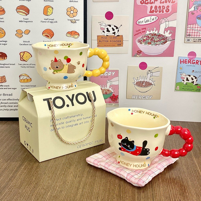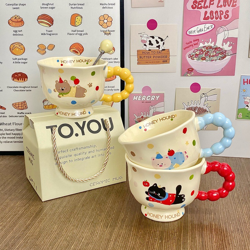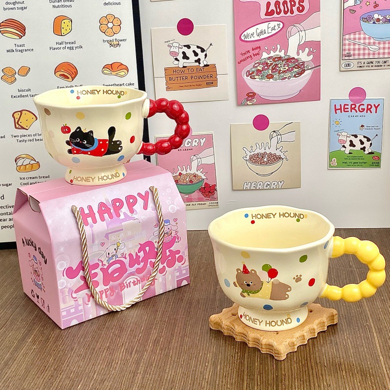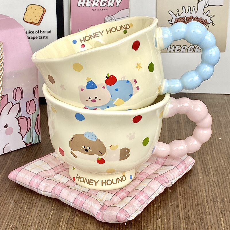 Cute perro de cerámica taza de agua de pareja de chicas taza de oficina taza de café regalo de cumpleaños taza de cerámica